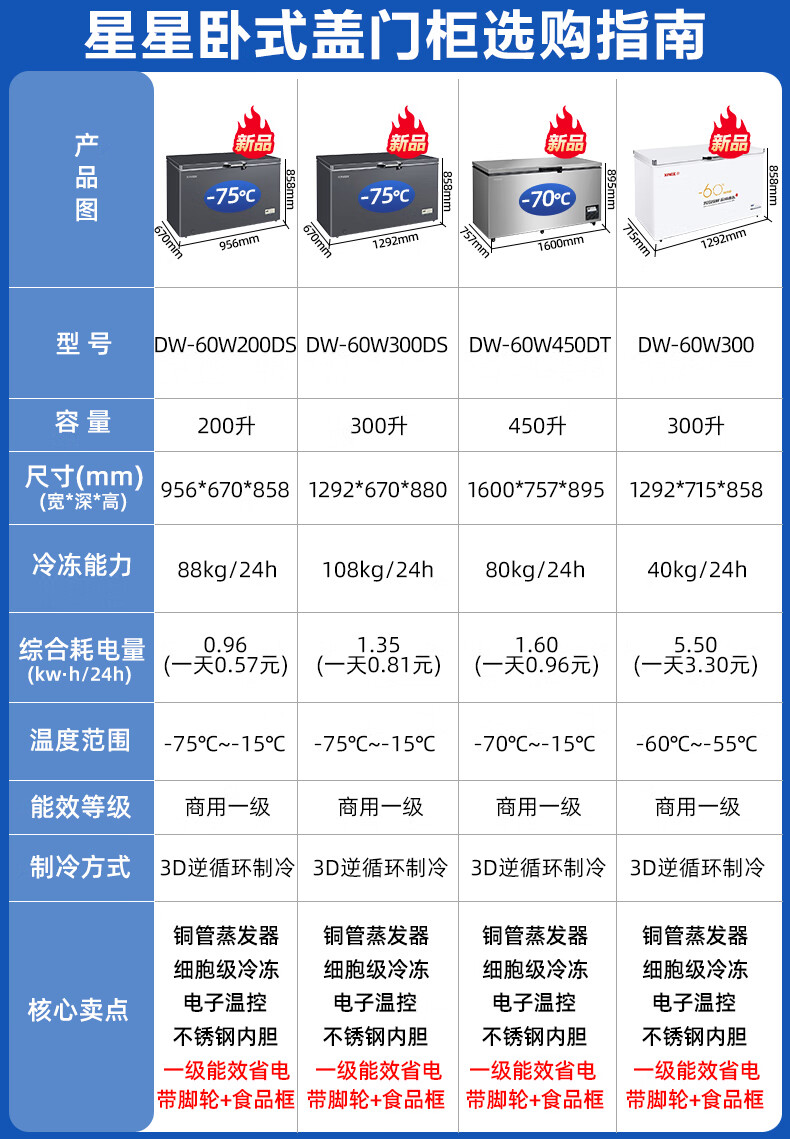 Star (XINGX) brand freezer commercial large-capacity freezer fully frozen ultra-low temperature 40 degrees 60 degrees deep-freezing quick-frozen seafood cabinet double-door refrigeration and freezing conversion cabinet tea cabinet ultra-low temperature-60 200 liters DW-60W200DS