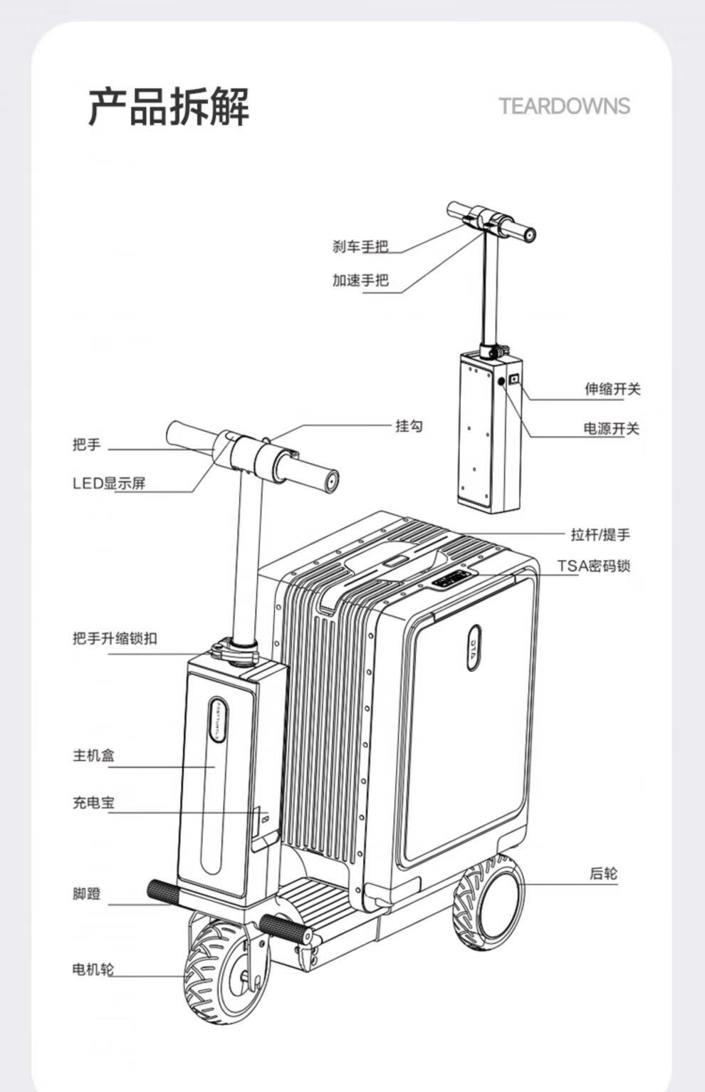 DTA electric cycling suitcase can be boarded on board smart suitcase white 20 inches (can be boarded on board)