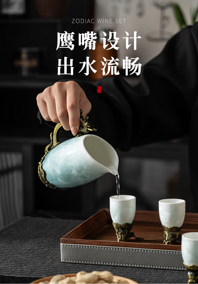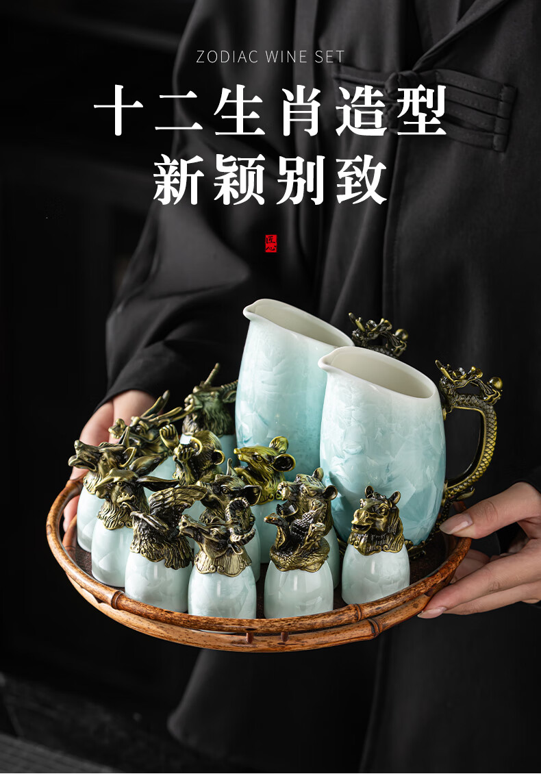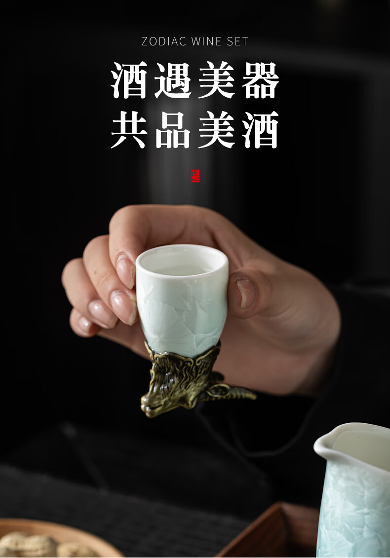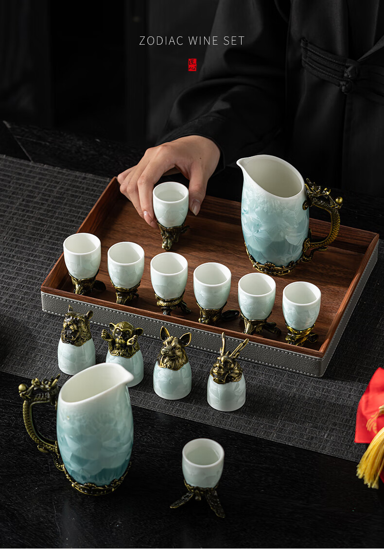 Fat Donglai's same style wine set, high-end ceramic white wine cup, wine divider, gift box, twelve zodiac wine glasses, light luxury, crystal base, double wine divider, twelve zodiac wine set (