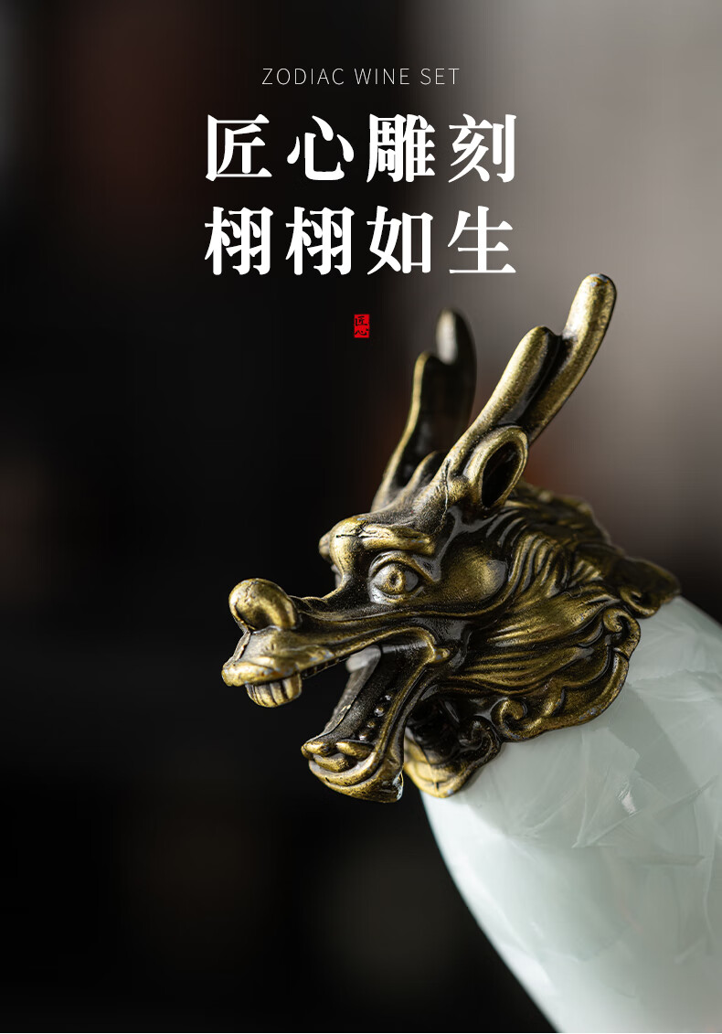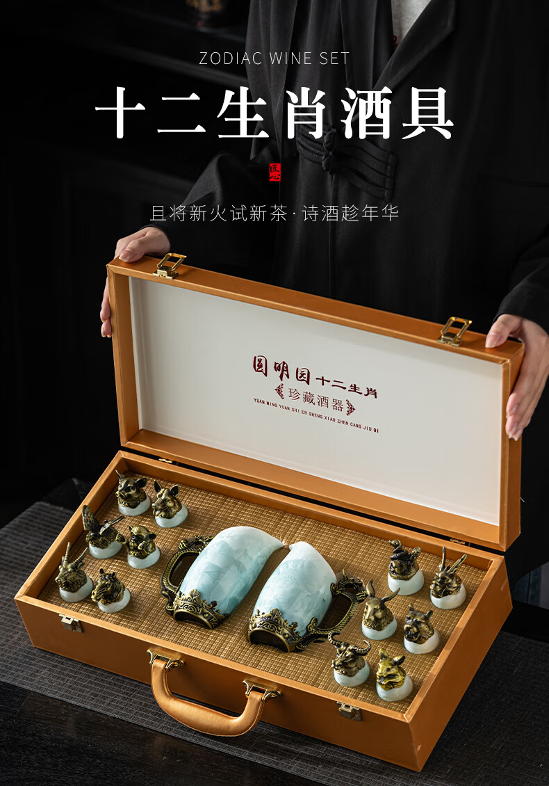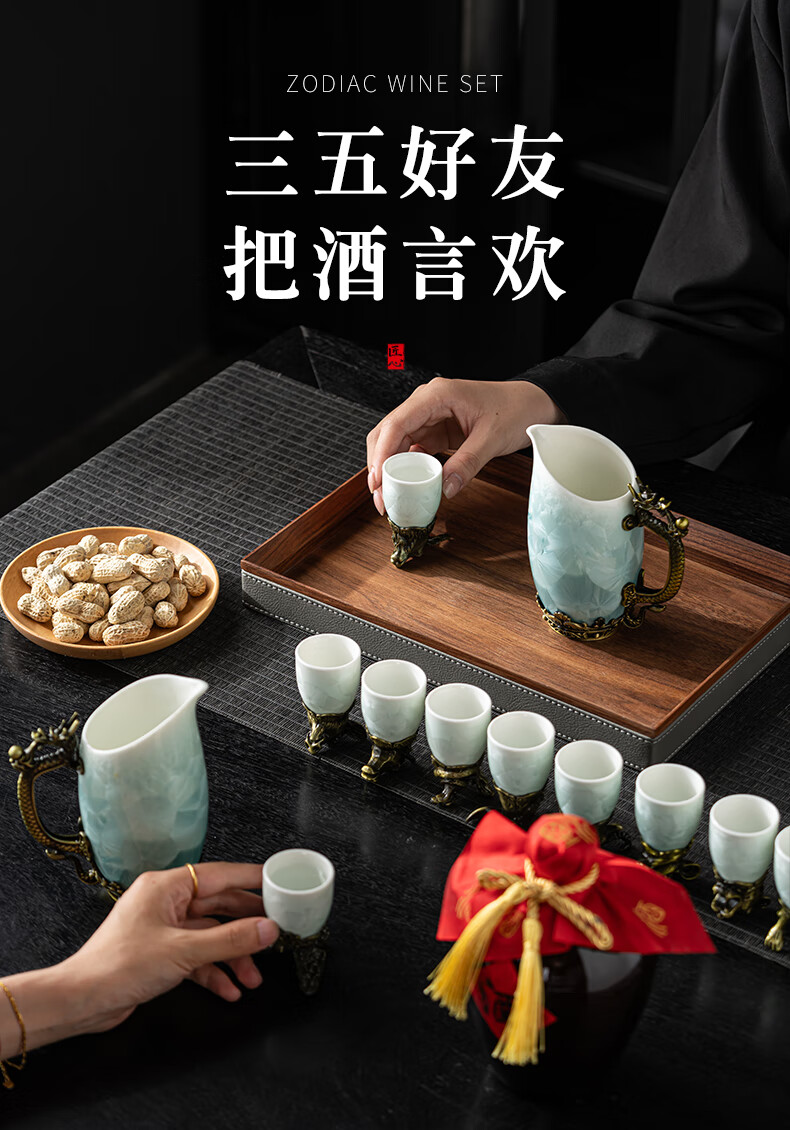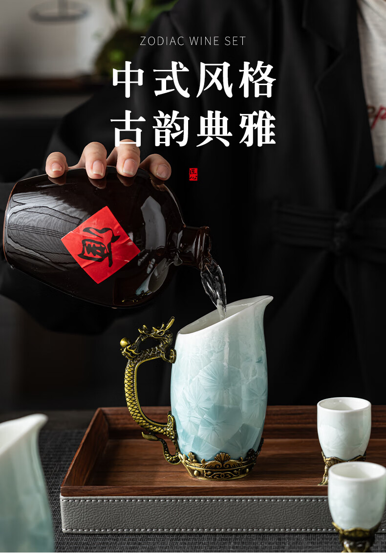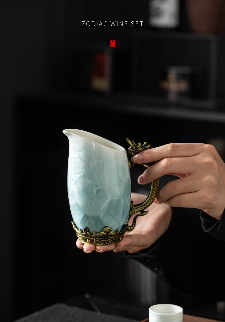 Fat Donglai's same style wine set, high-end ceramic white wine cup, wine divider, gift box, twelve zodiac wine glasses, light luxury, crystal base, double wine divider, twelve zodiac wine set (