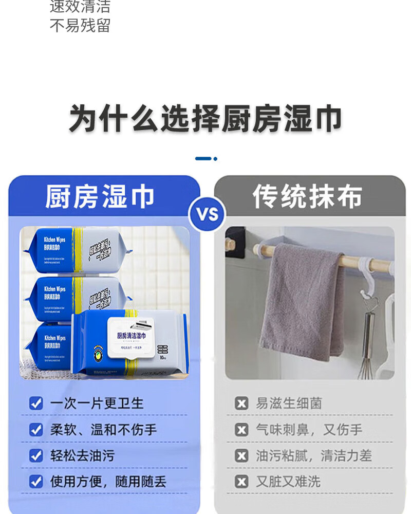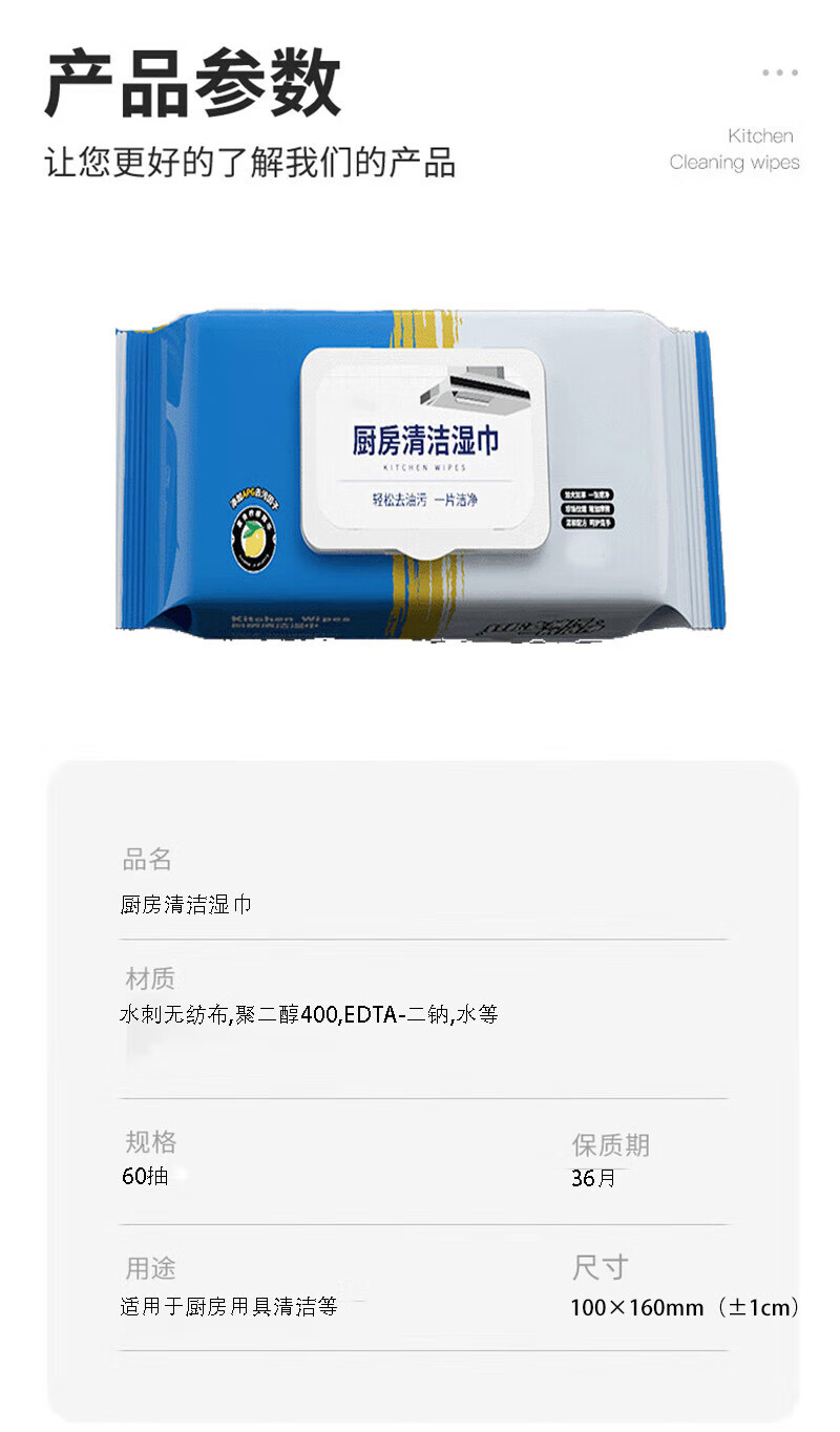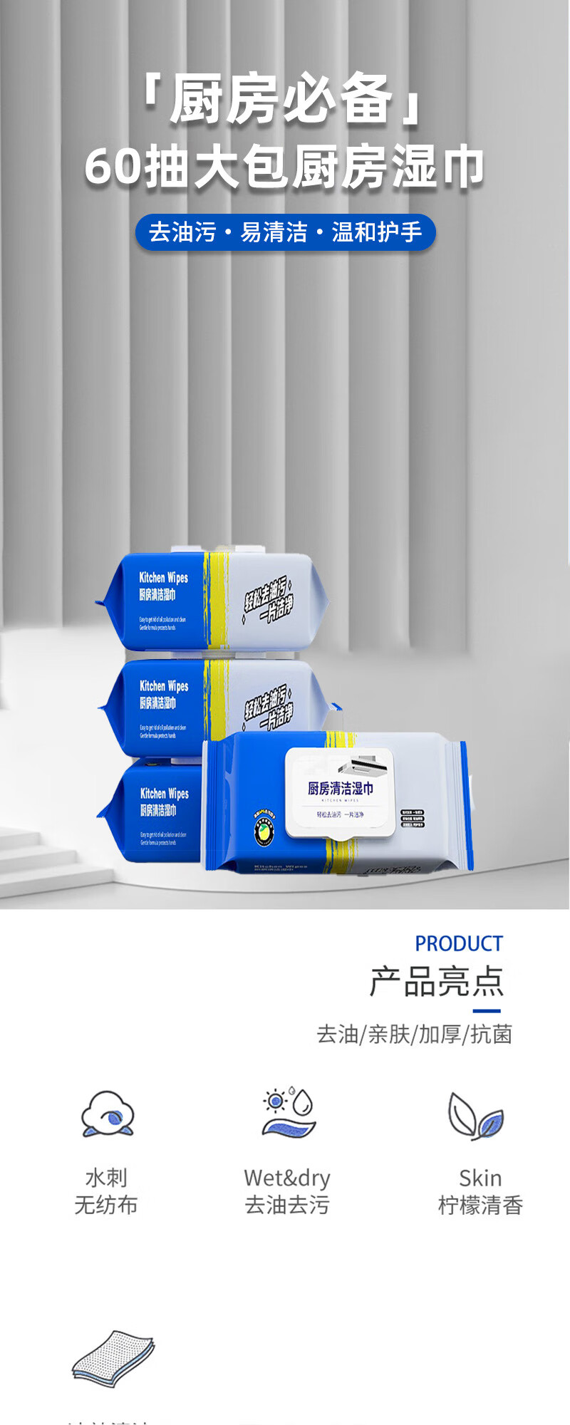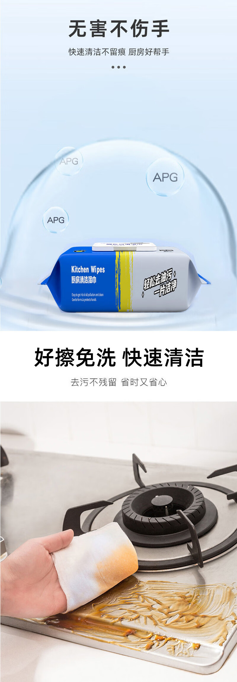 Oil removal artifact, thickened wet wipes, powerful degreasing stove, range hood cleaning disposable rag, 60 cigarettes/1 pack