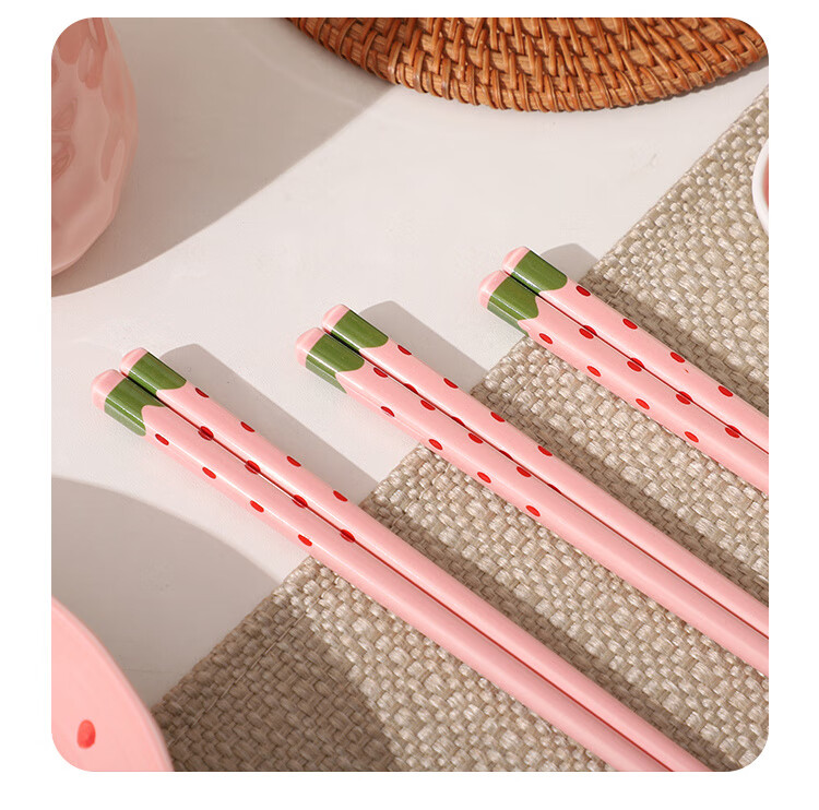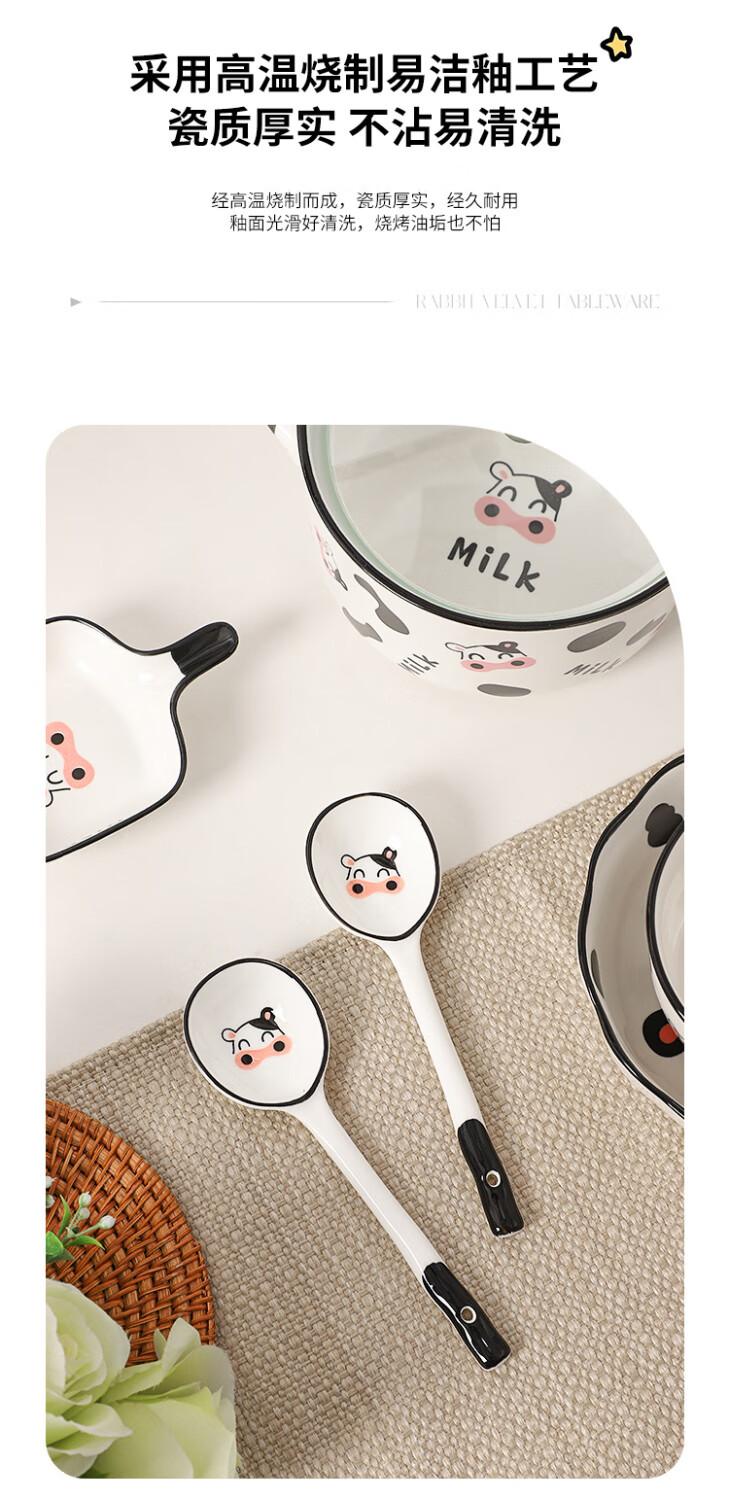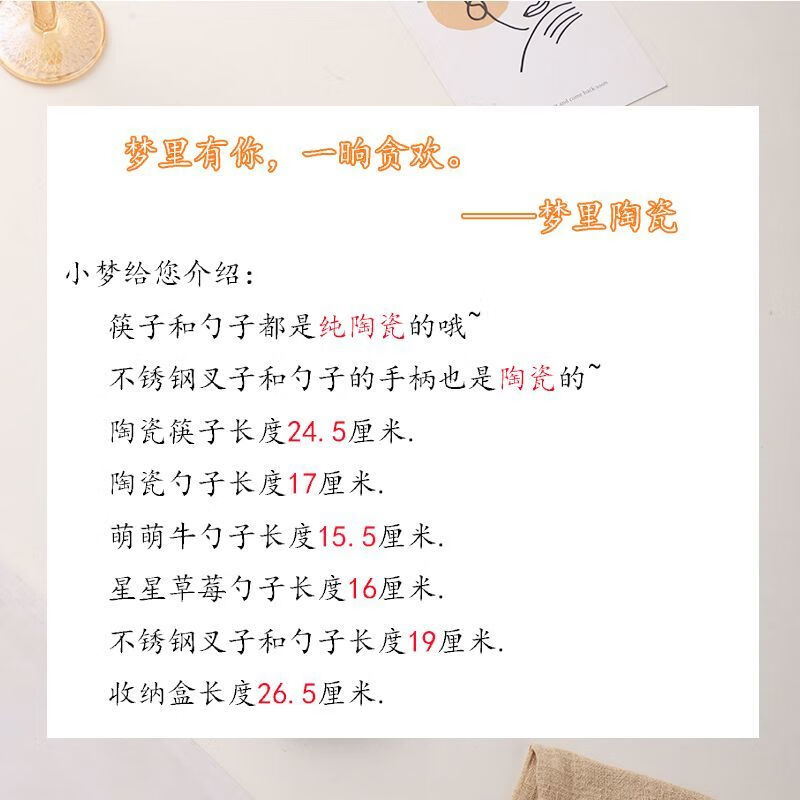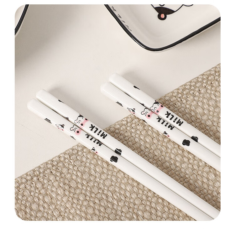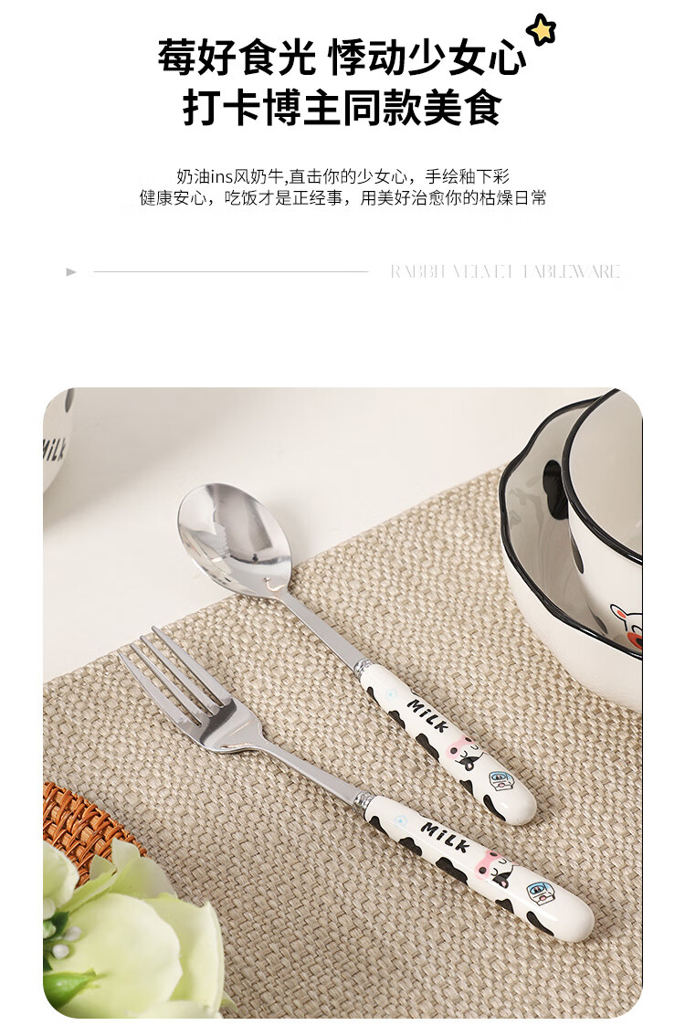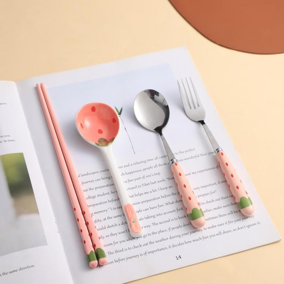 Qinkai girly heart, good-looking chopsticks, spoon and fork set, cute tableware, strawberry ceramic spoon, chopsticks, portable tableware, cow four-piece set, high-quality pottery, portable storage box