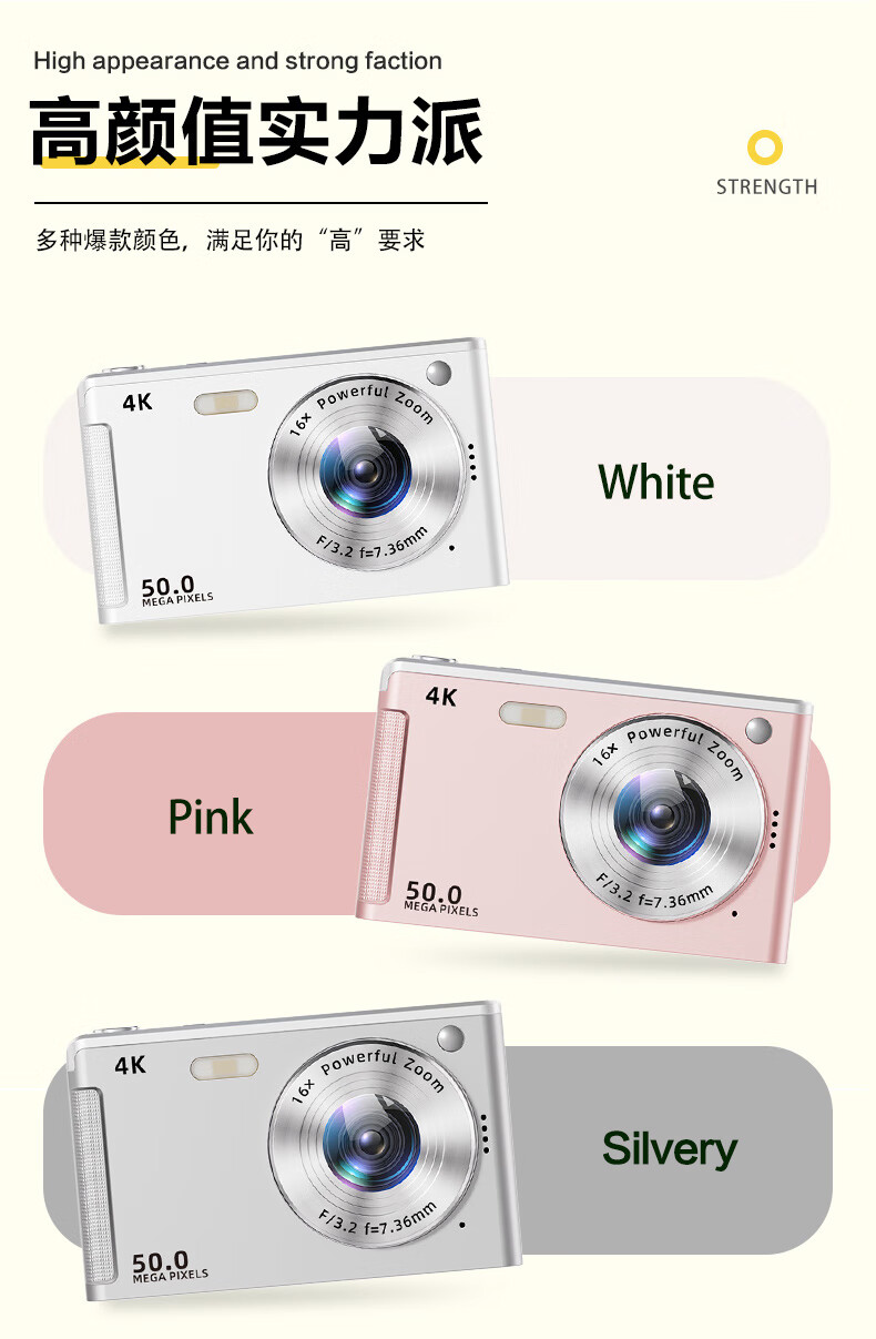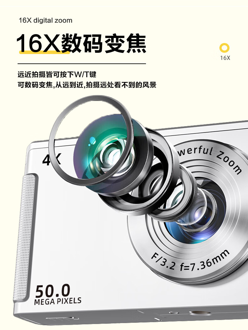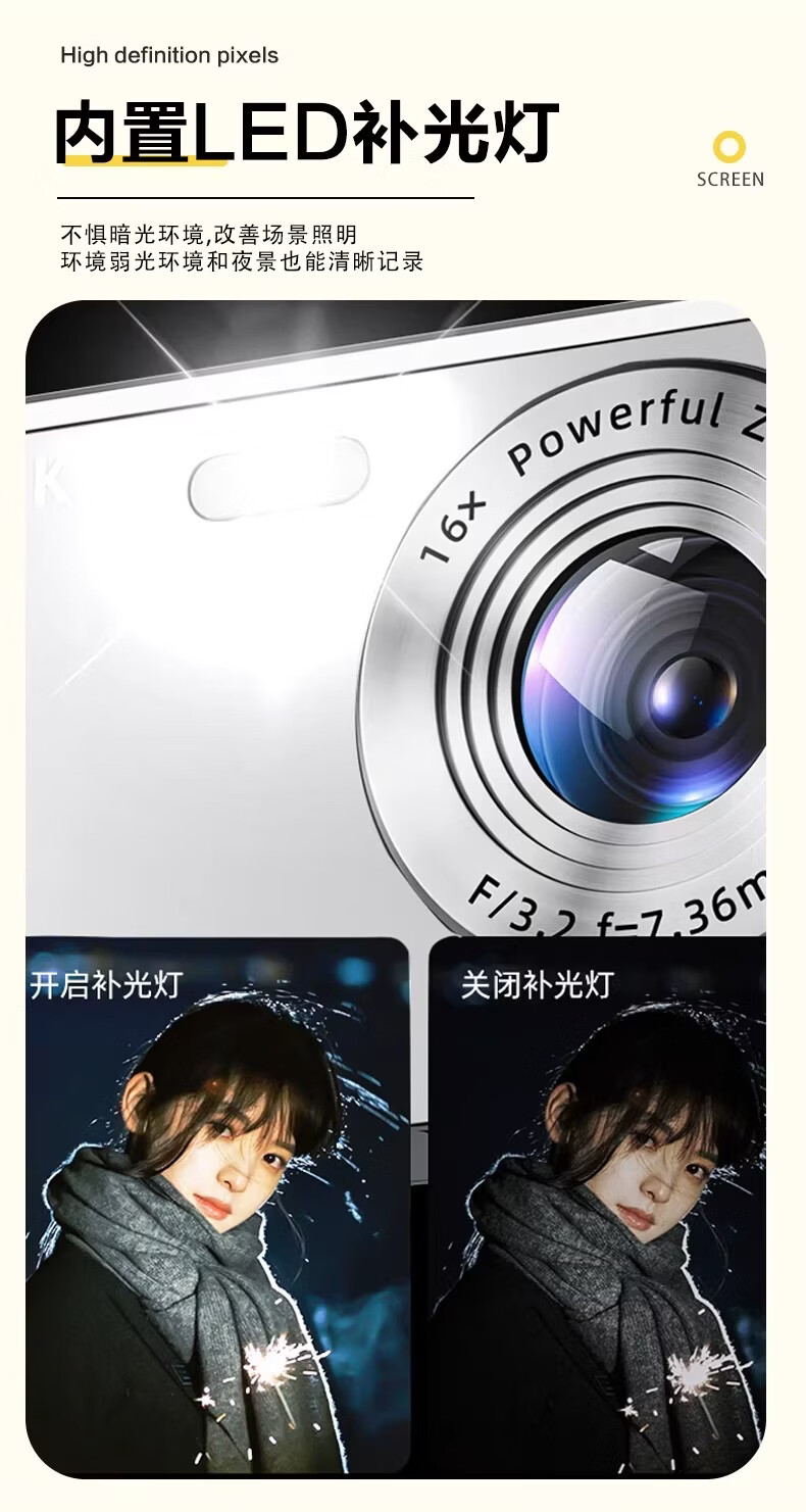 ZFZSccd digital camera high-definition shooting micro camera student party entry-level portable camera for travel, upgraded model, 16x zoom, black - CCD digital camera, free 32G memory card