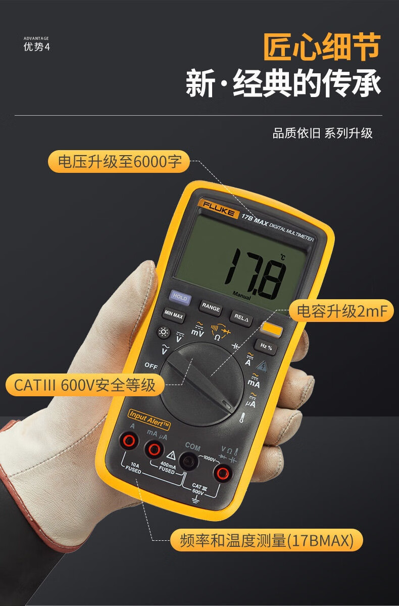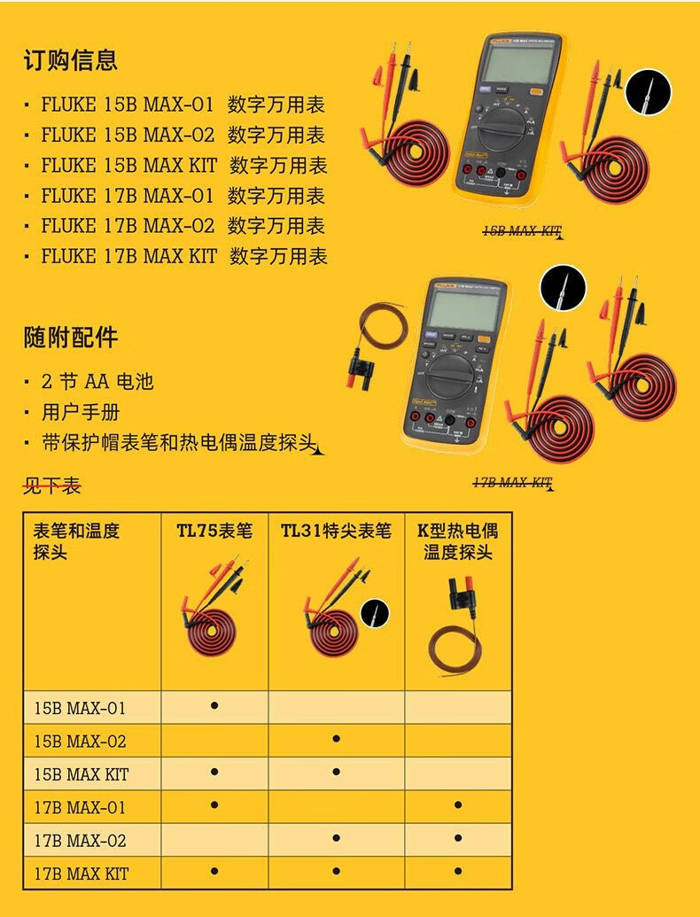Fluke FLUKE digital multimeter 15B MAX/17B MAX/18B+12E mobile phone and home appliance repair F101 17BMAX-KIT (with TL75+TL31 test leads)