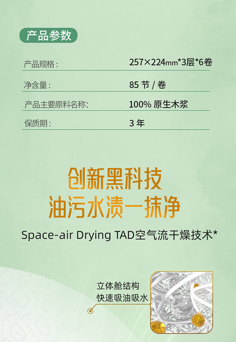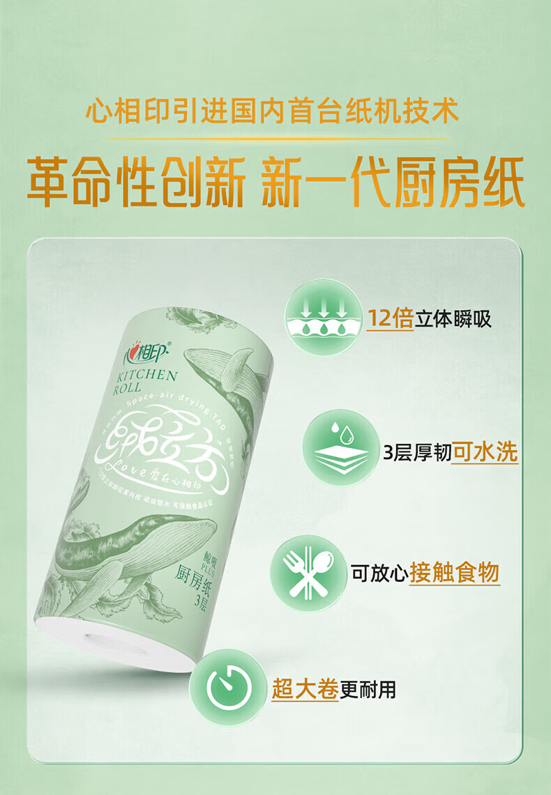 Xinxiangyin kitchen paper roll velvet cube 12 times oil-absorbing and water-locking household disposable lazy rag kitchen paper towel 3 layers 85 sections * 3 rolls