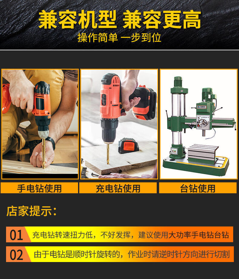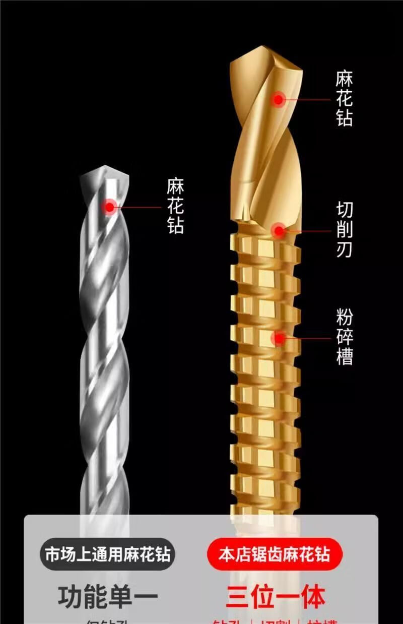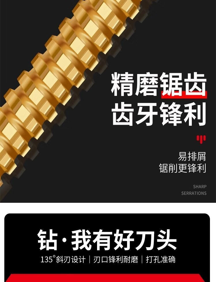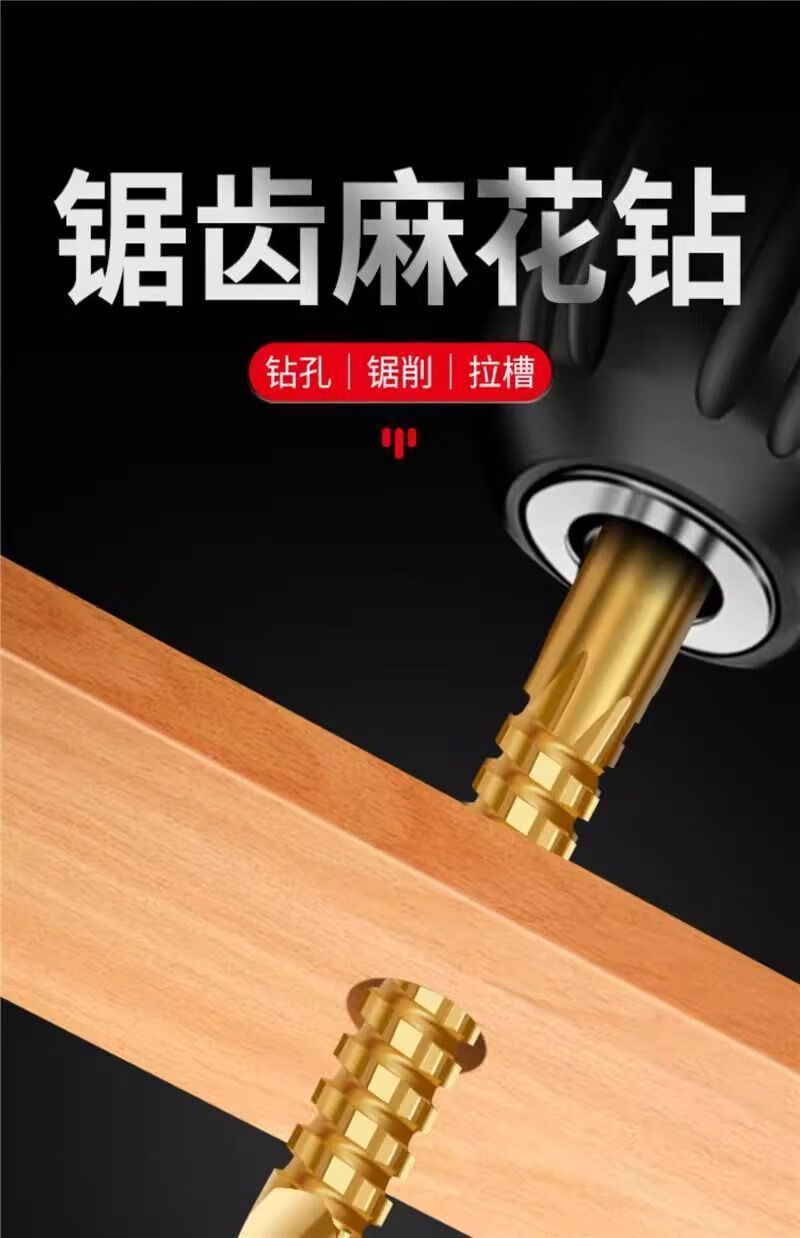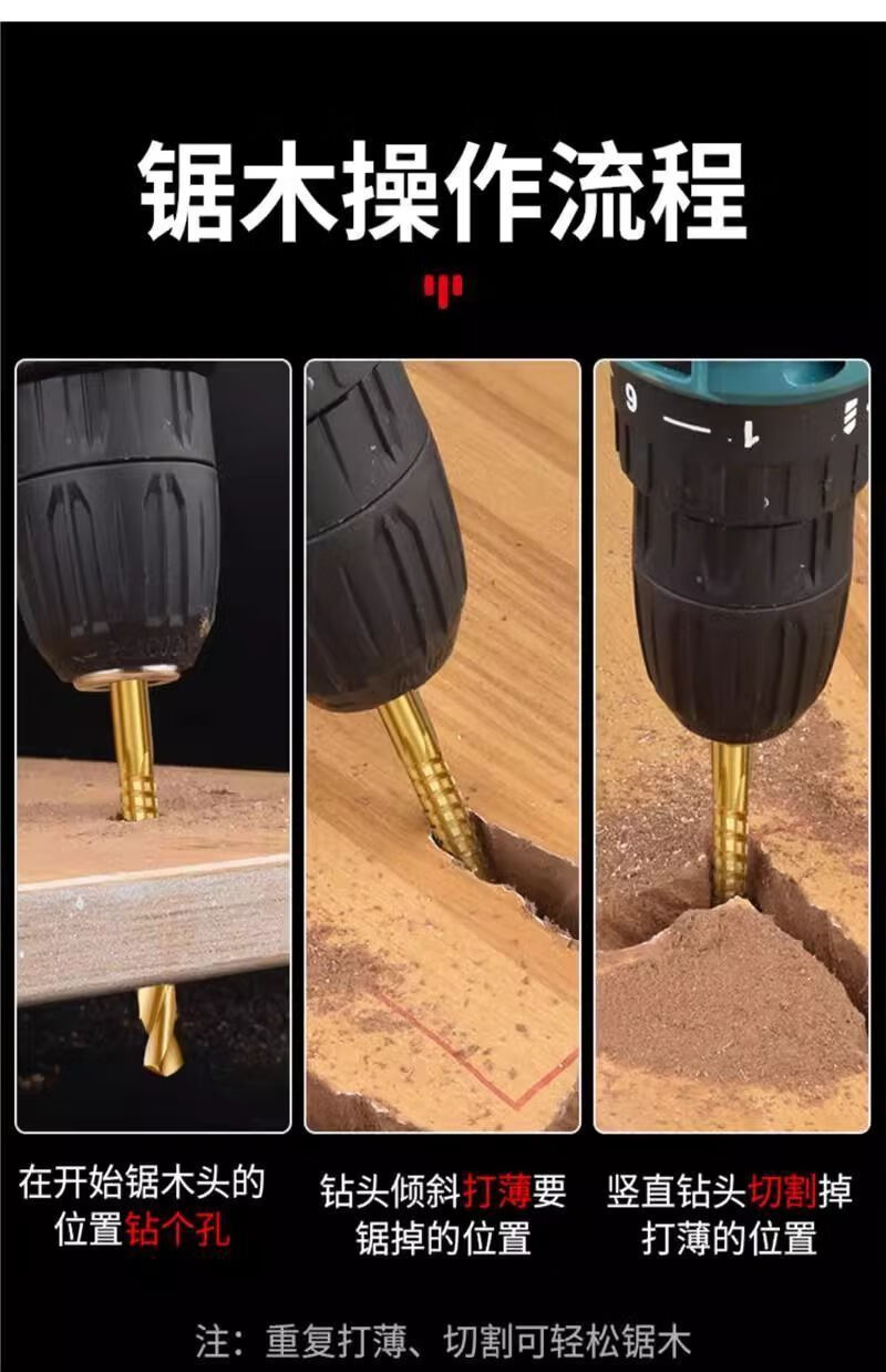 Sawtooth drill bit hand electric drill model multi-functional slotting woodworking saw drill punching holes slotting wood tile cutting hexagonal handle slotting drill 3+6+8mm 3-piece set No specifications