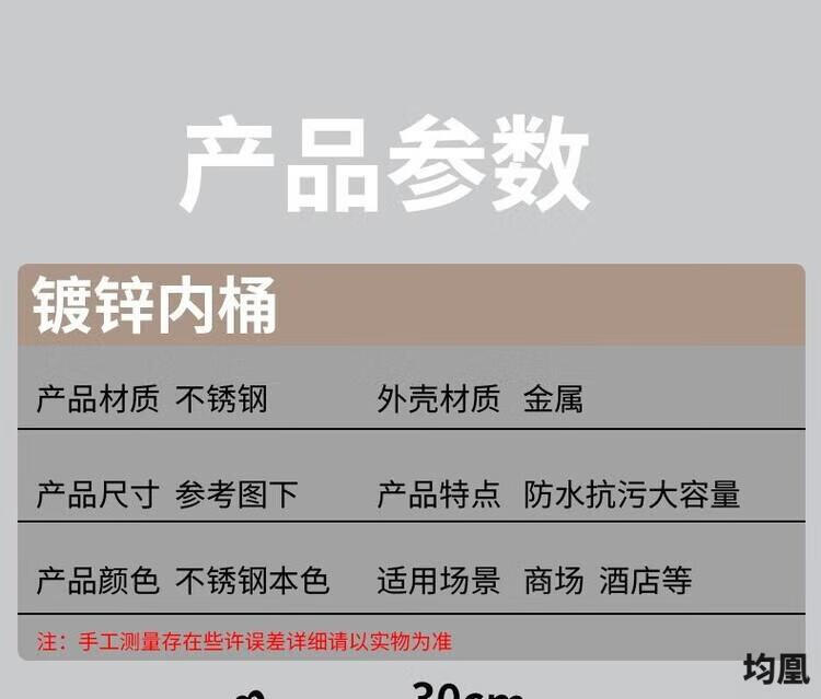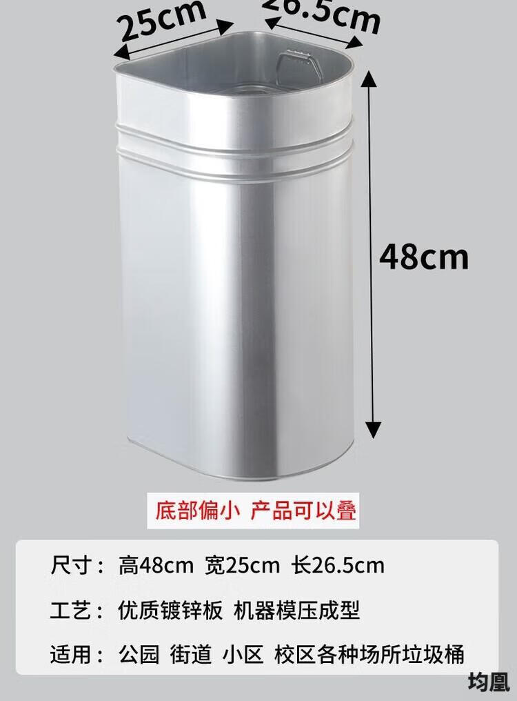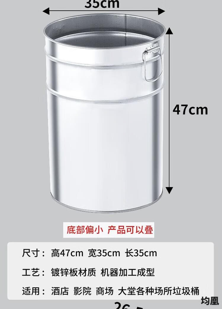 Trash can liner customized iron sheet stainless steel indoor outdoor large capacity trash can liner peel box galvanized round square special-shaped inner barrel galvanized round liner 22X22X32CM