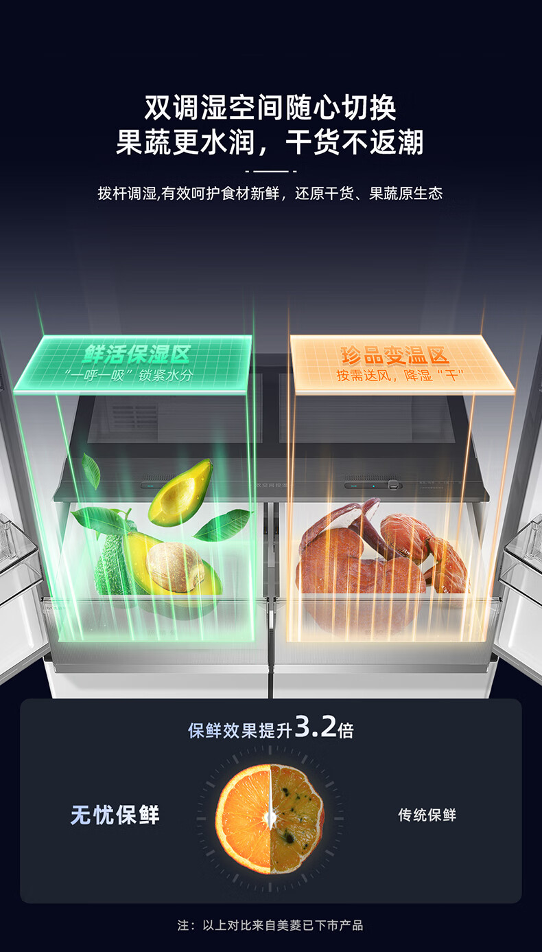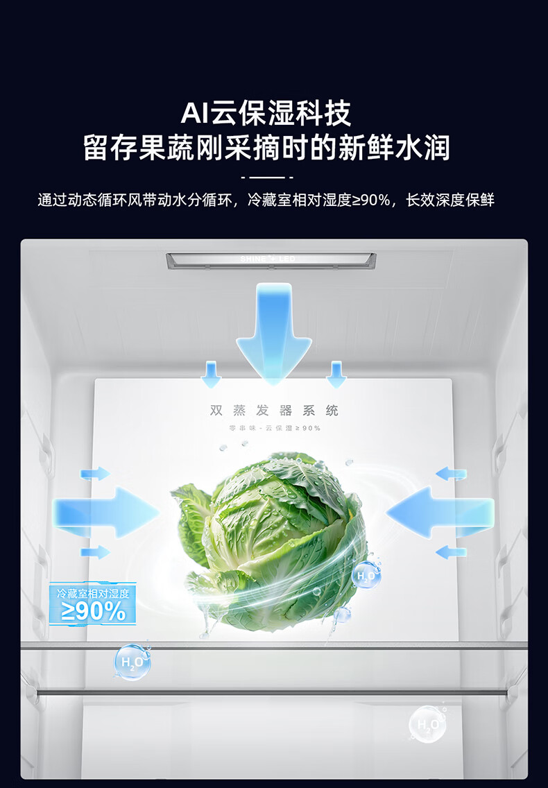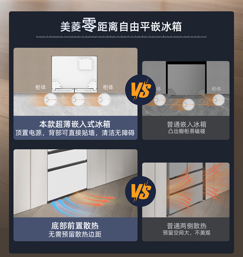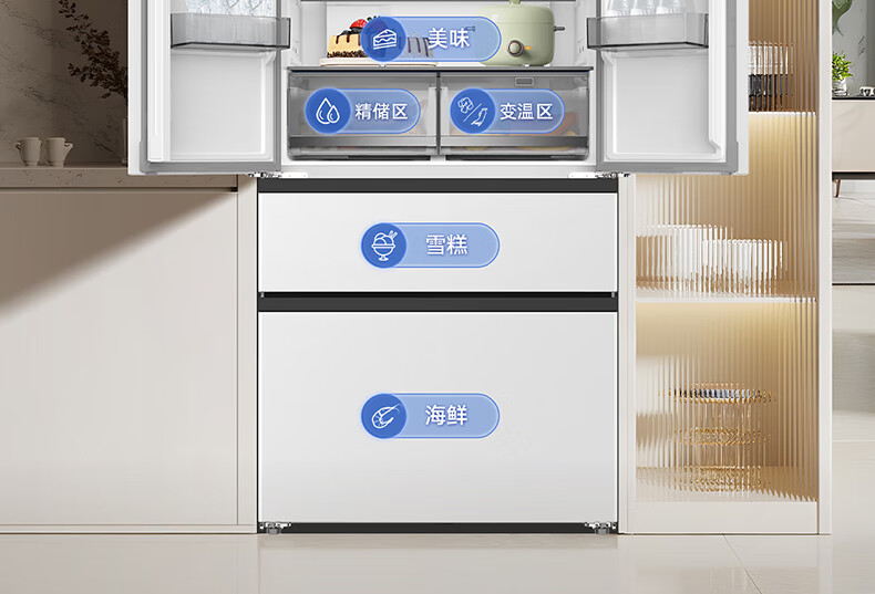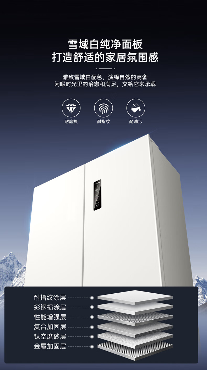 Meiling MNC+ odor upgrade, active sterilization 511L dual system, small footprint, zero built-in refrigerator, French home subsidy BCD-511WFP9CZX511L Snowy White
