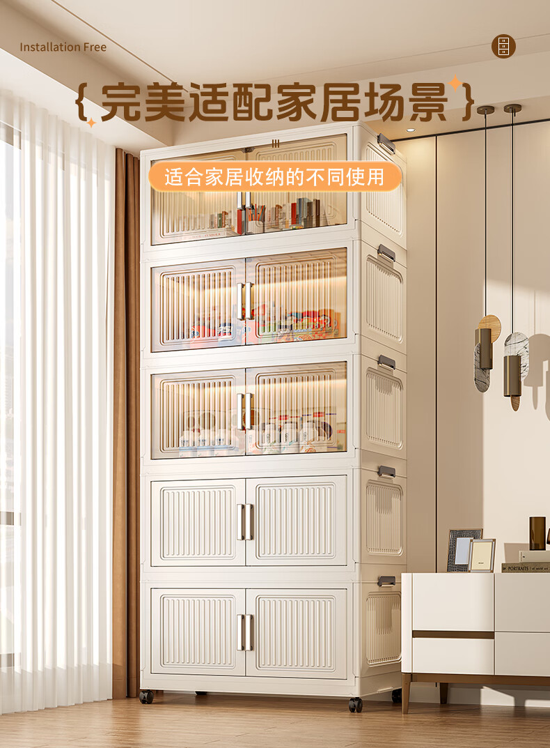 Thickened storage cabinet multi-layer sundry storage cabinet simple baby wardrobe home baby clothes plastic storage box thickened 60cm width - mixed color 6 layers 3 transparent + 3 solid color