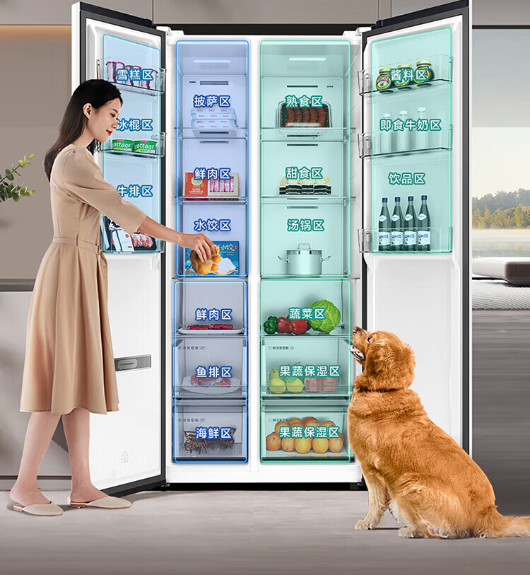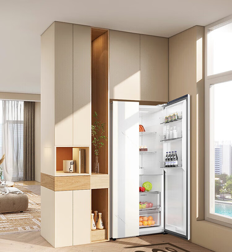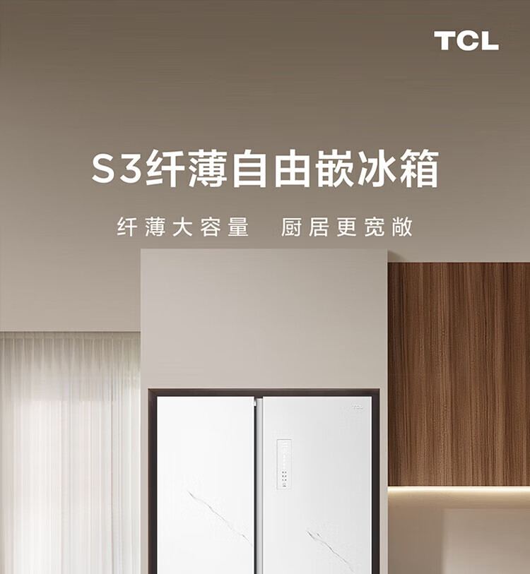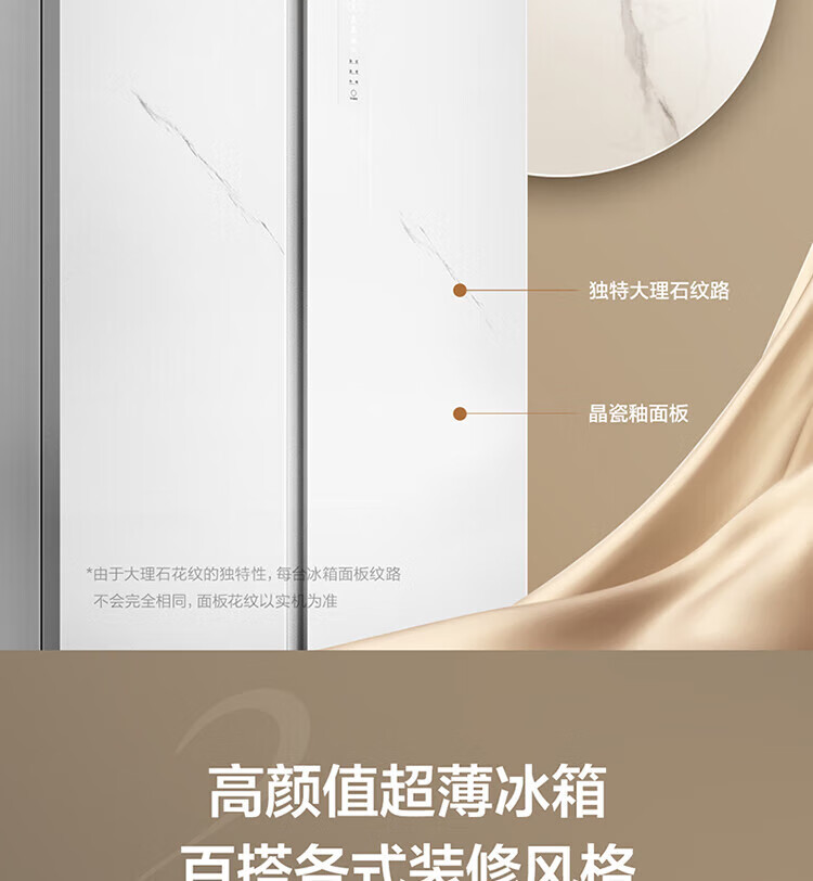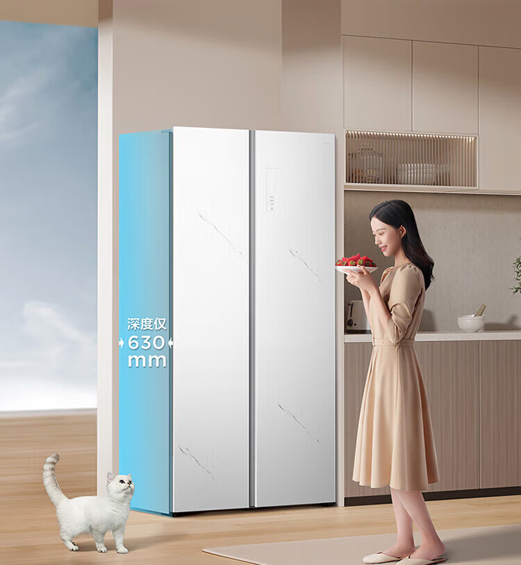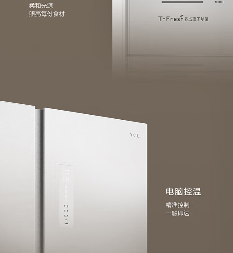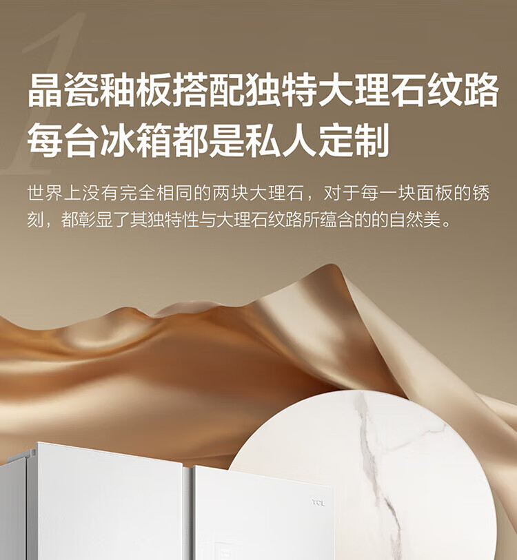 TCL 556-liter double-door side-by-side large-capacity refrigerator crystal enamel panel, first-class energy efficiency dual frequency conversion, ion sterilization, deep-freezing quick-freezing household fresh-keeping refrigerator