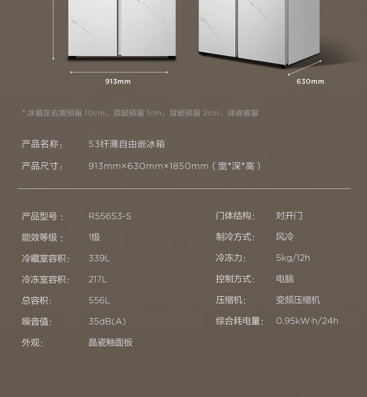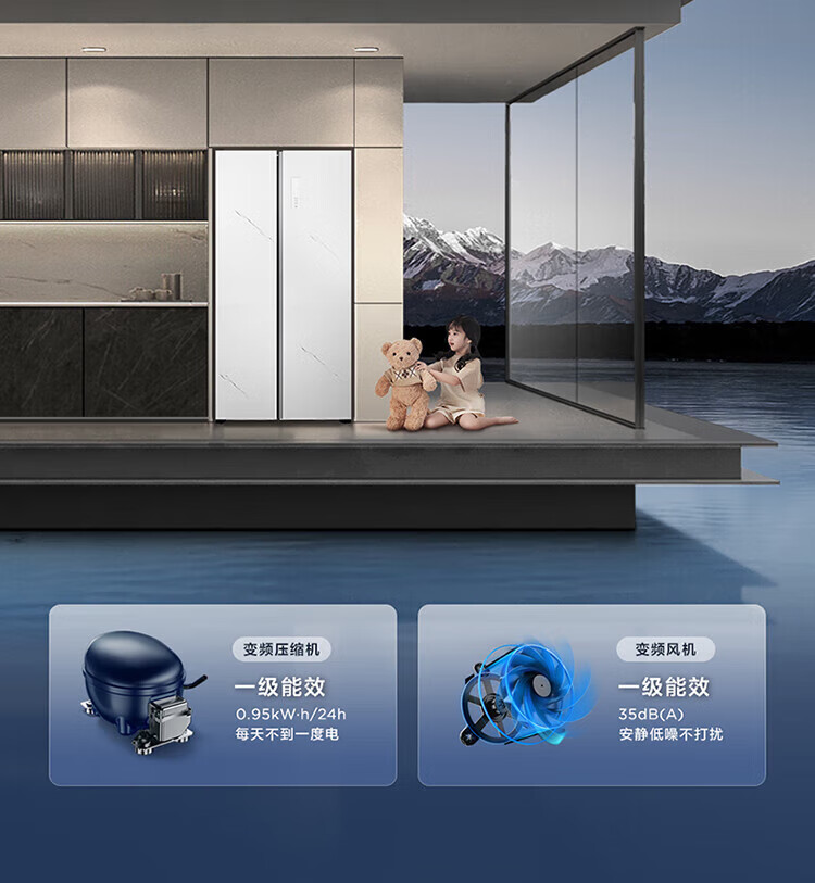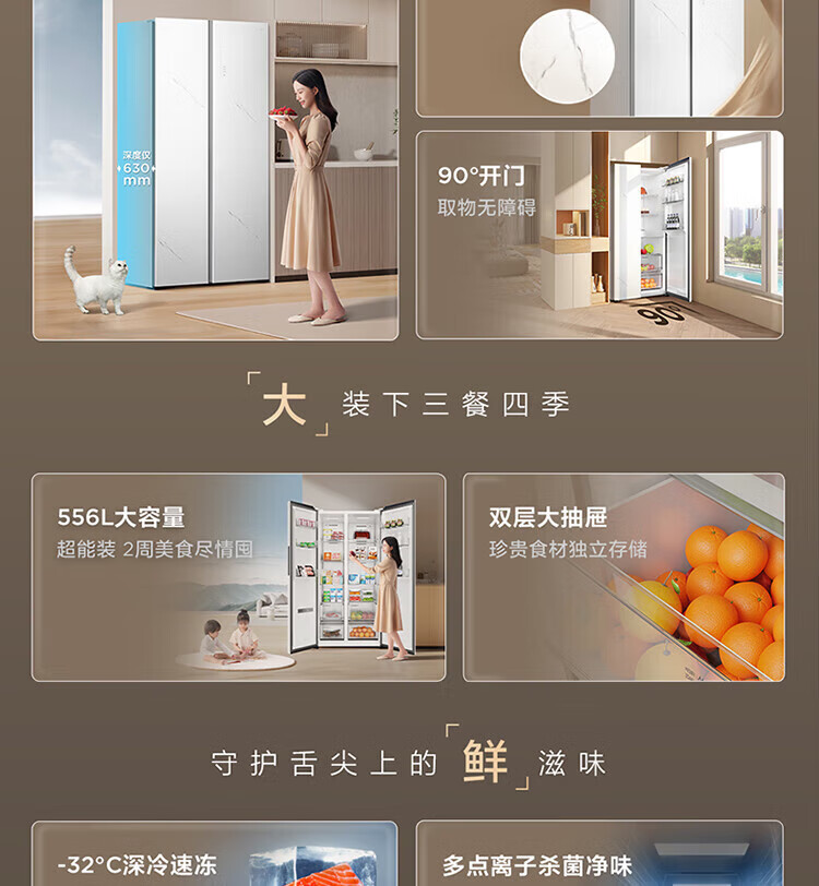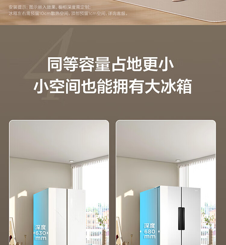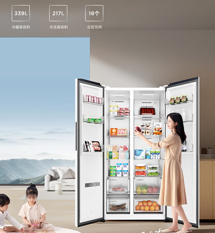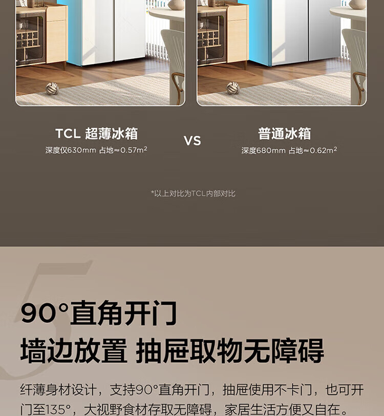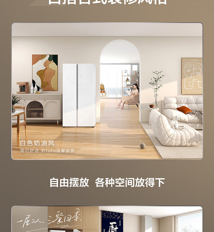 TCL 556-liter double-door side-by-side large-capacity refrigerator crystal enamel panel, first-class energy efficiency dual frequency conversion, ion sterilization, deep-freezing quick-freezing household fresh-keeping refrigerator