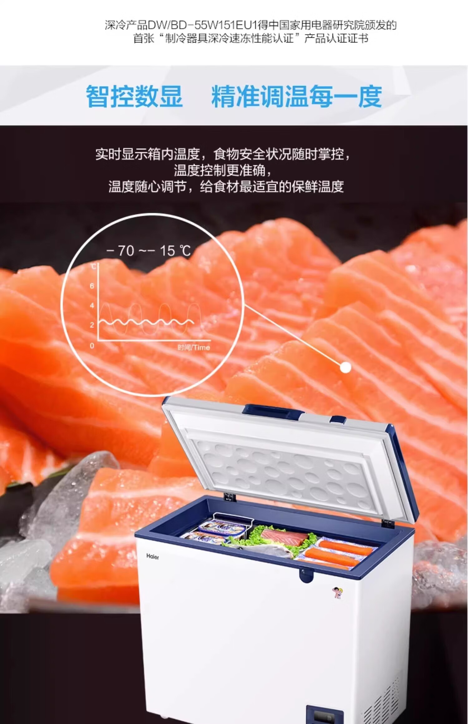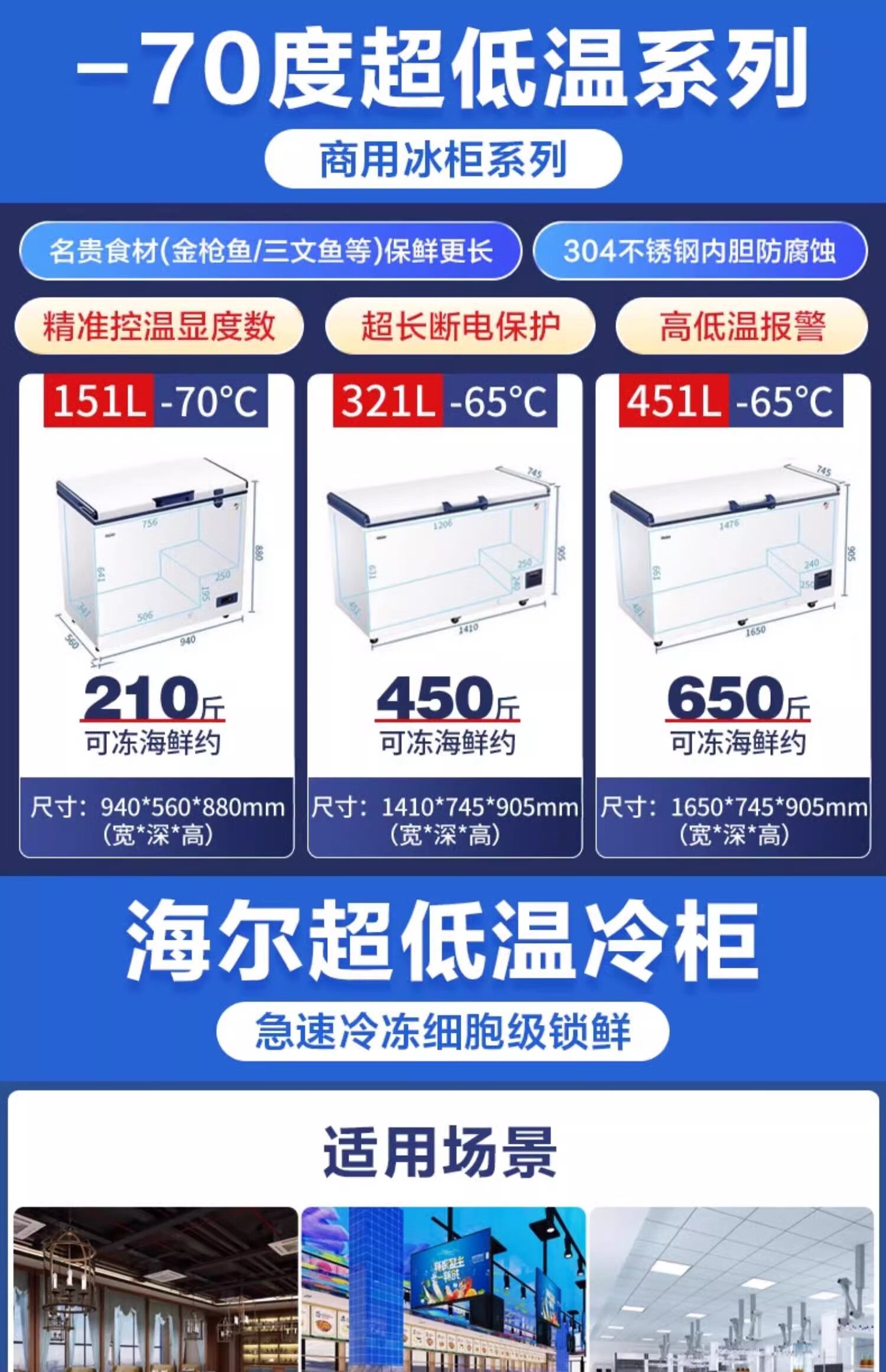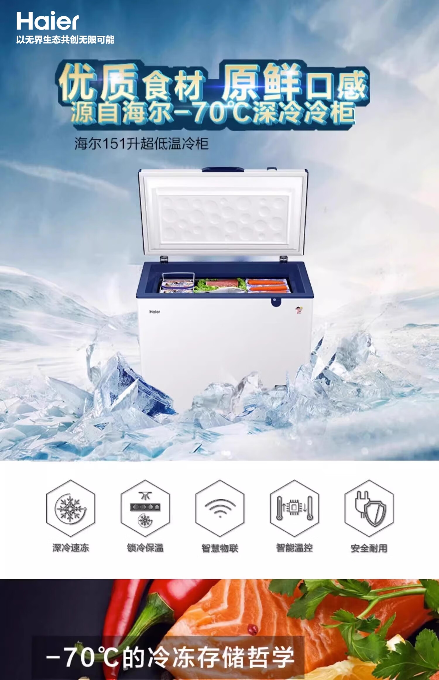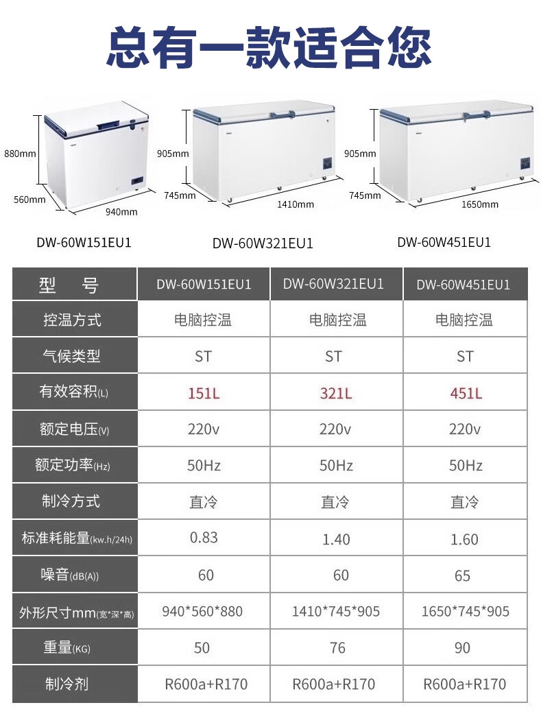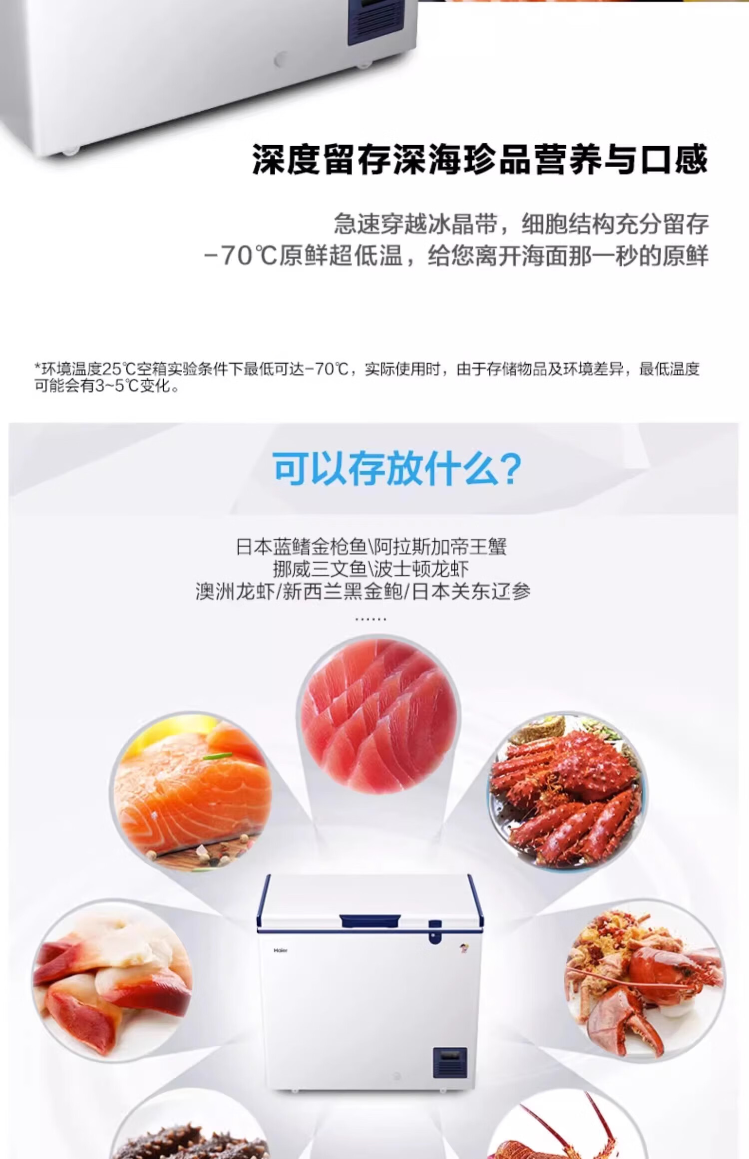 Haier ultra-low temperature sub-zero -60 degree freezer freezer horizontal commercial deep-frozen seafood low temperature cabinet 719 liters -38 degrees 1.86 meters long electronic thermostat 0x0x0mm