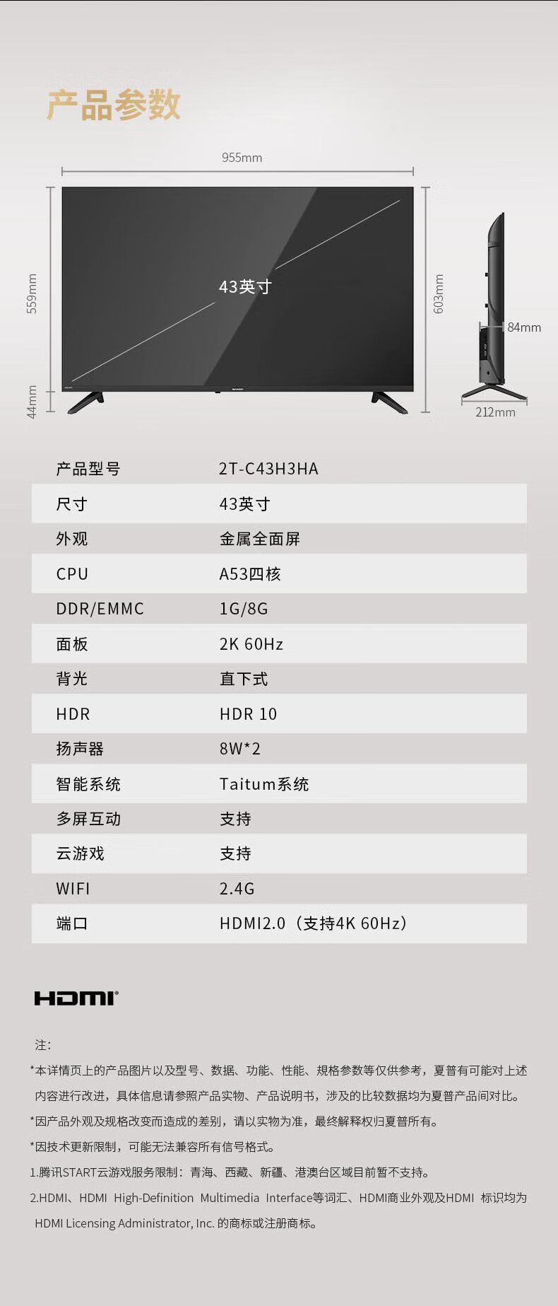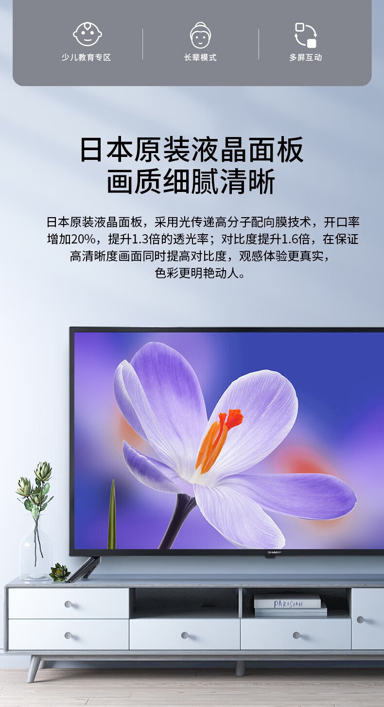 SHARP 42-inch high-definition panel imported from Japan with Dolby sound effect 64-bit CPU 1+8G smart network LCD flat-panel TV 42-inch panel imported from Japan Installation service Door-to-door installation (seat installation/ordinary hanging installation/fixed hanger included)