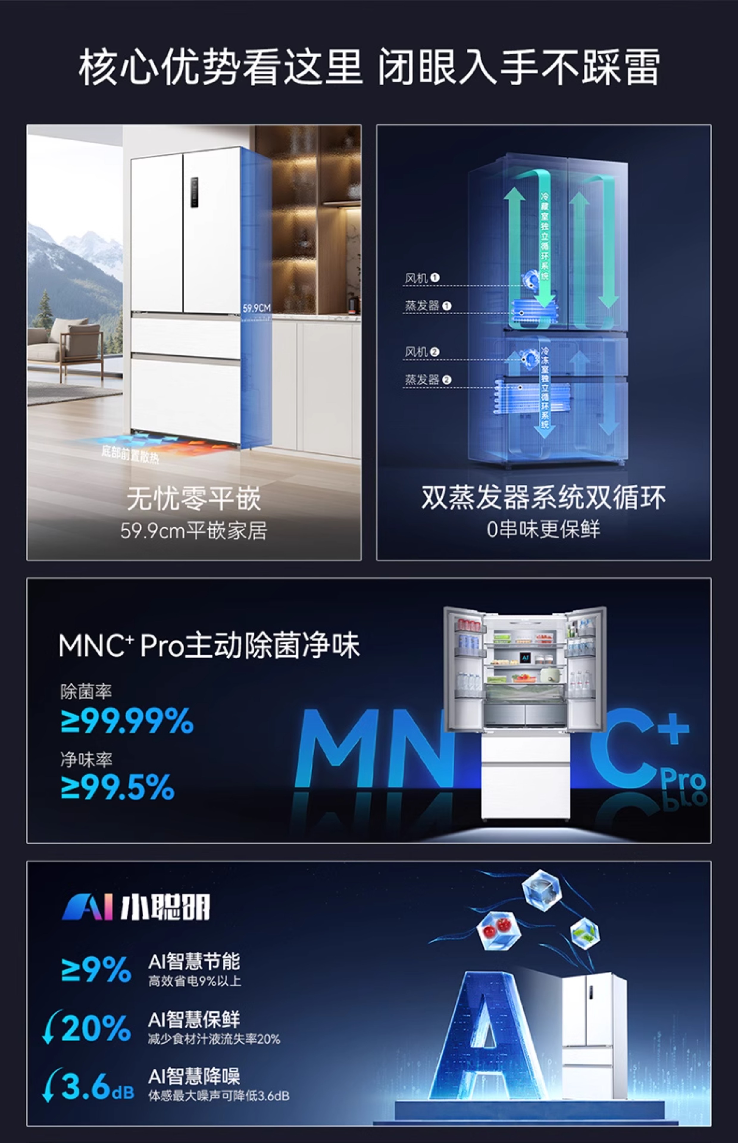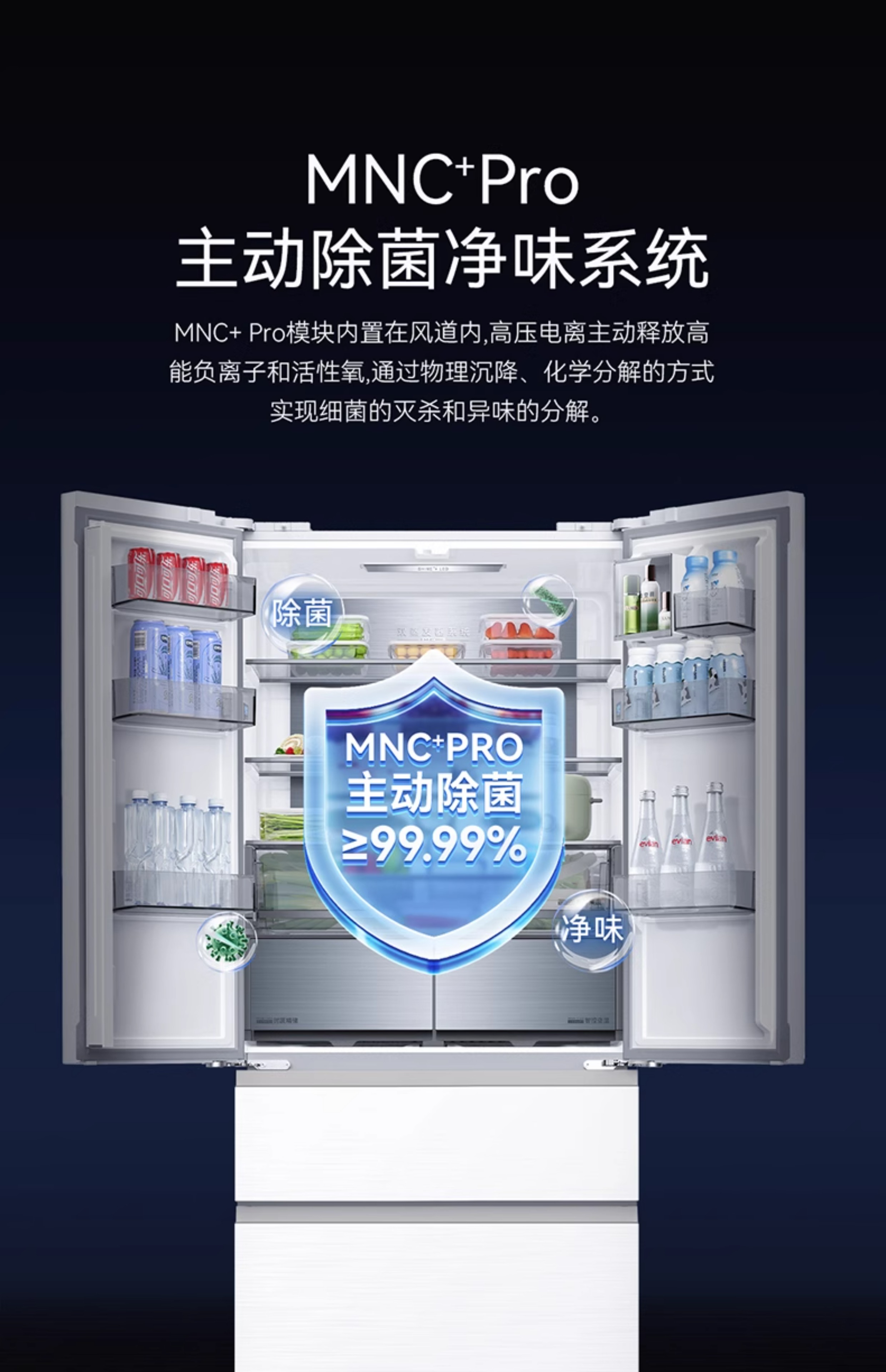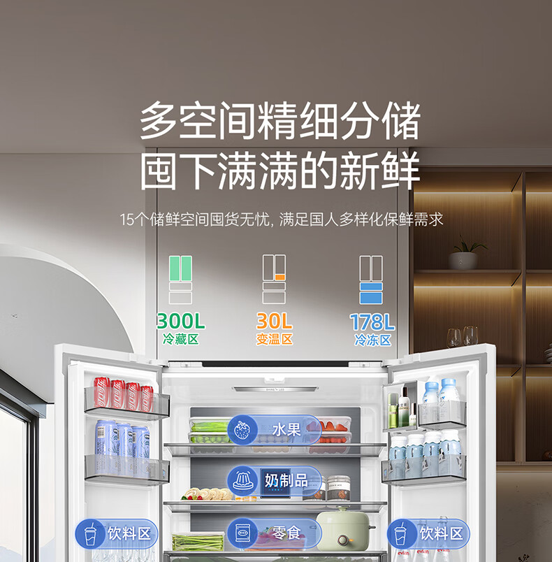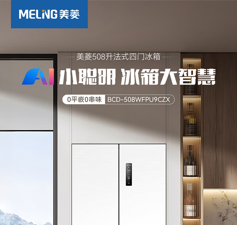 Meiling MNC+ odor upgrade 508L active sterilization dual system zero embedded no odor household first-class French refrigerator BCD-508WFPU9CZX508L ceramic white