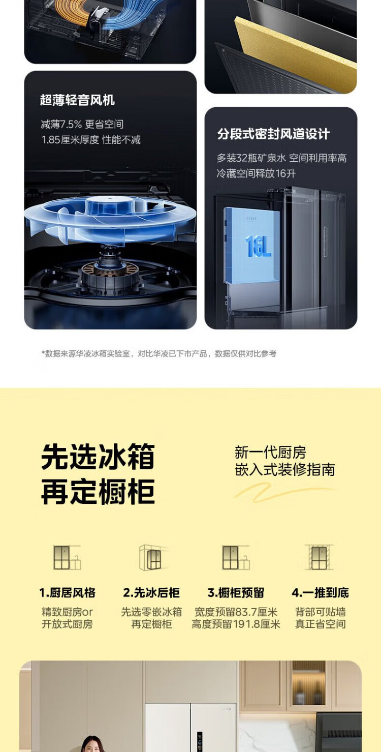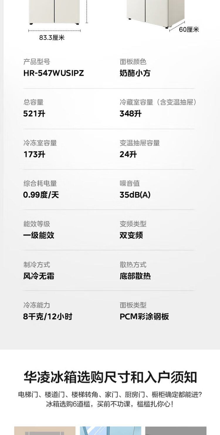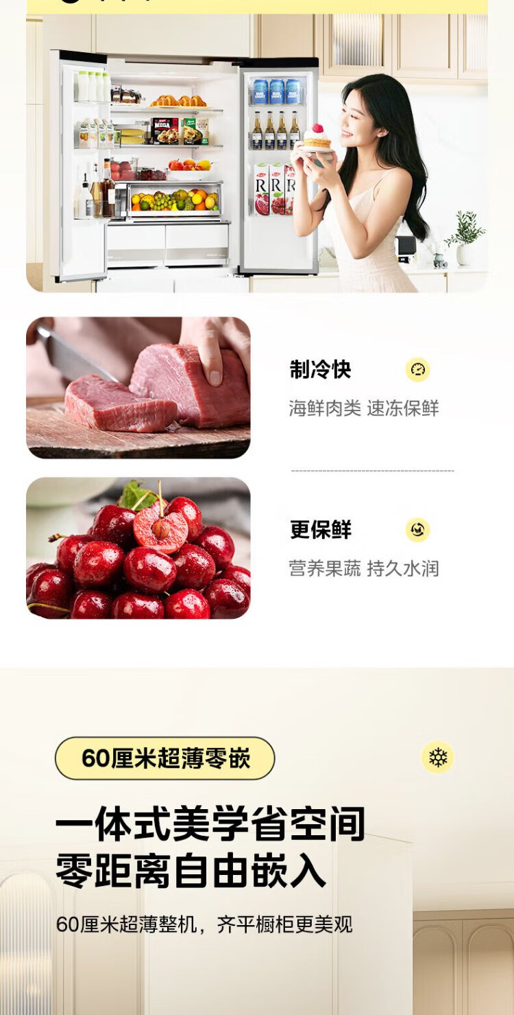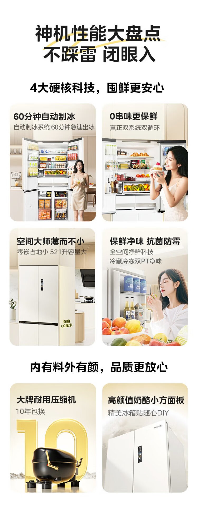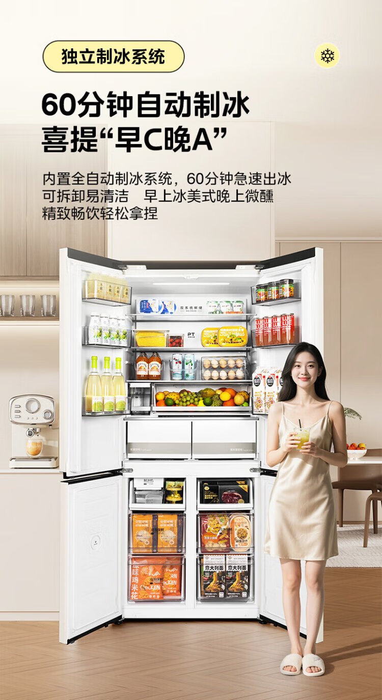 Hualing refrigerator produced by Midea Shenji 547 automatic ice making dual system 60cm ultra-thin zero-embedded cross-door four-door refrigerator first-class energy efficiency HR-547WUSIPZ