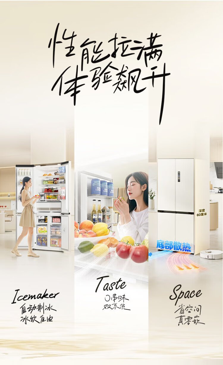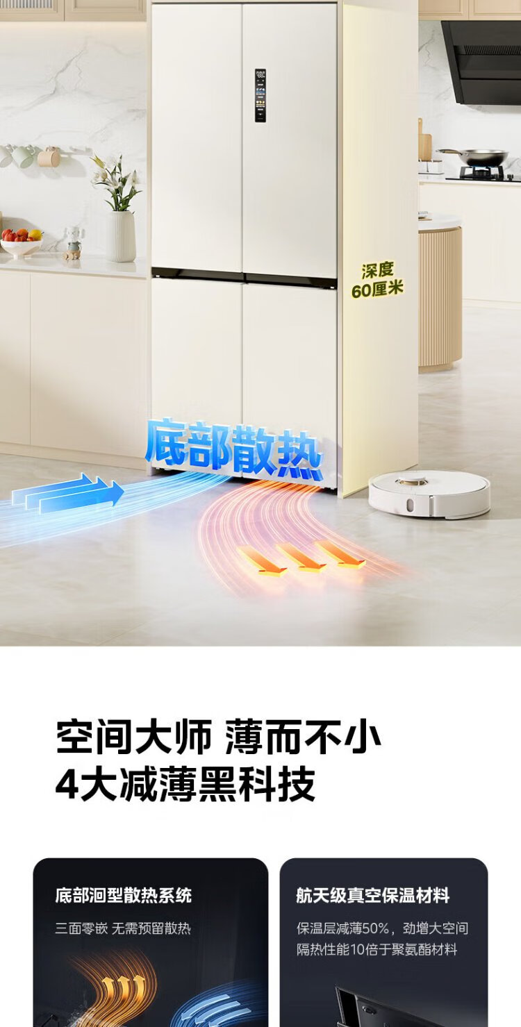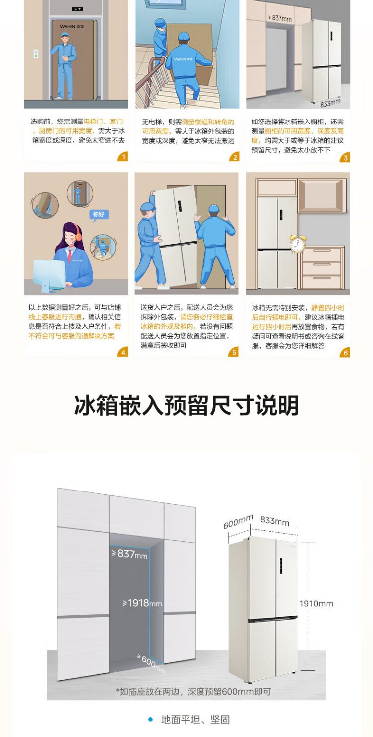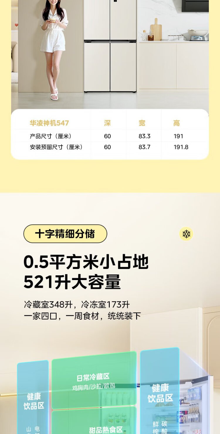 Hualing refrigerator produced by Midea Shenji 547 automatic ice making dual system 60cm ultra-thin zero-embedded cross-door four-door refrigerator first-class energy efficiency HR-547WUSIPZ