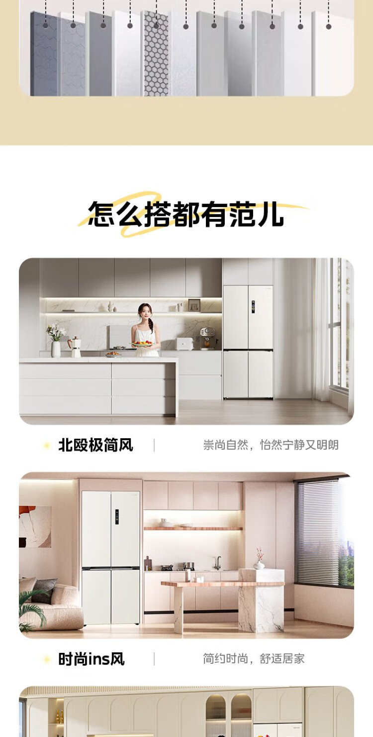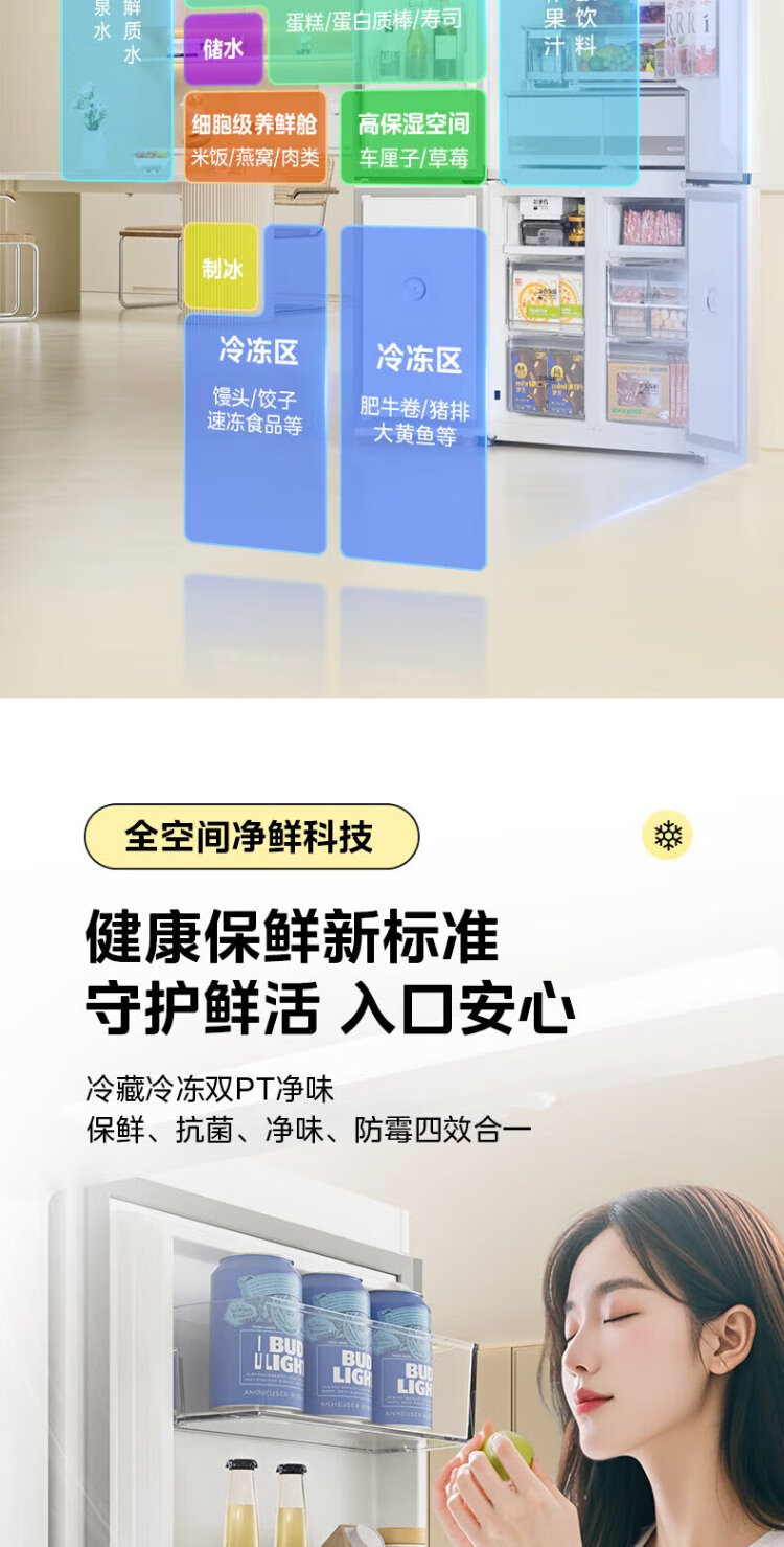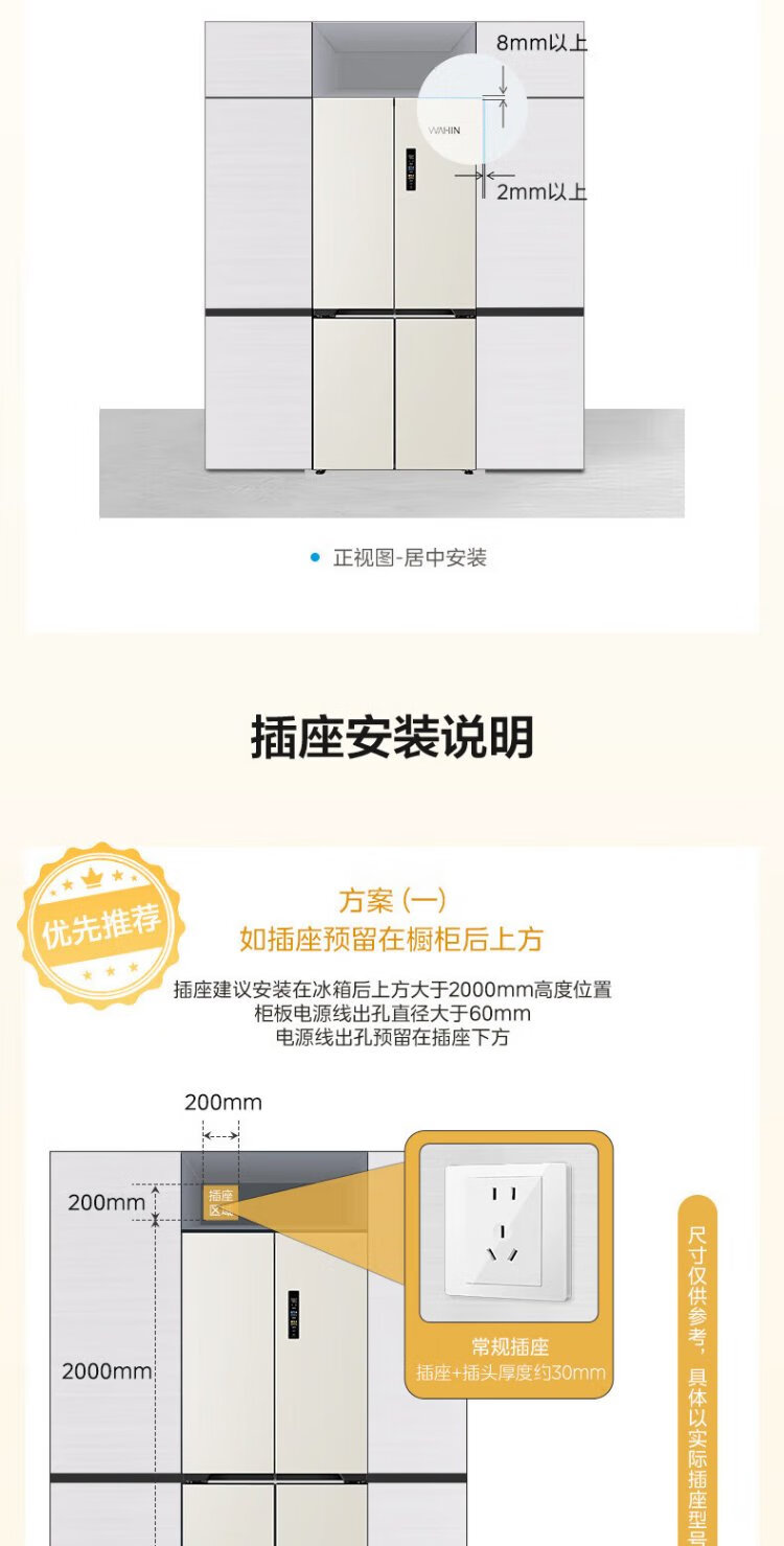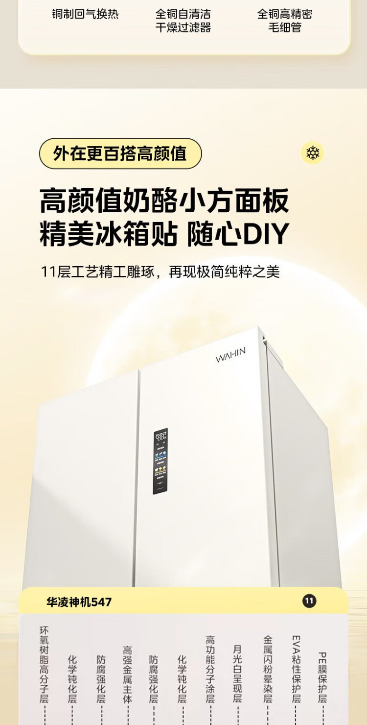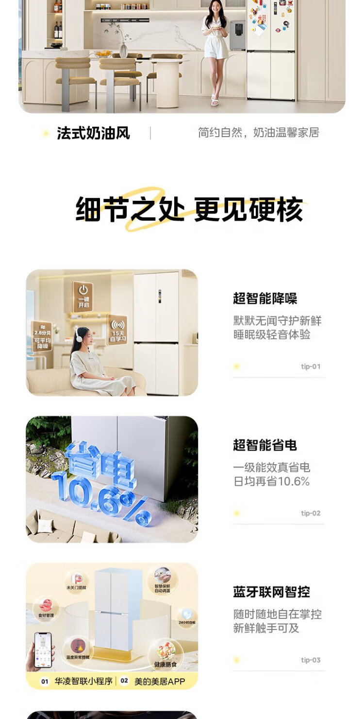 Hualing refrigerator produced by Midea Shenji 547 automatic ice making dual system 60cm ultra-thin zero-embedded cross-door four-door refrigerator first-class energy efficiency HR-547WUSIPZ