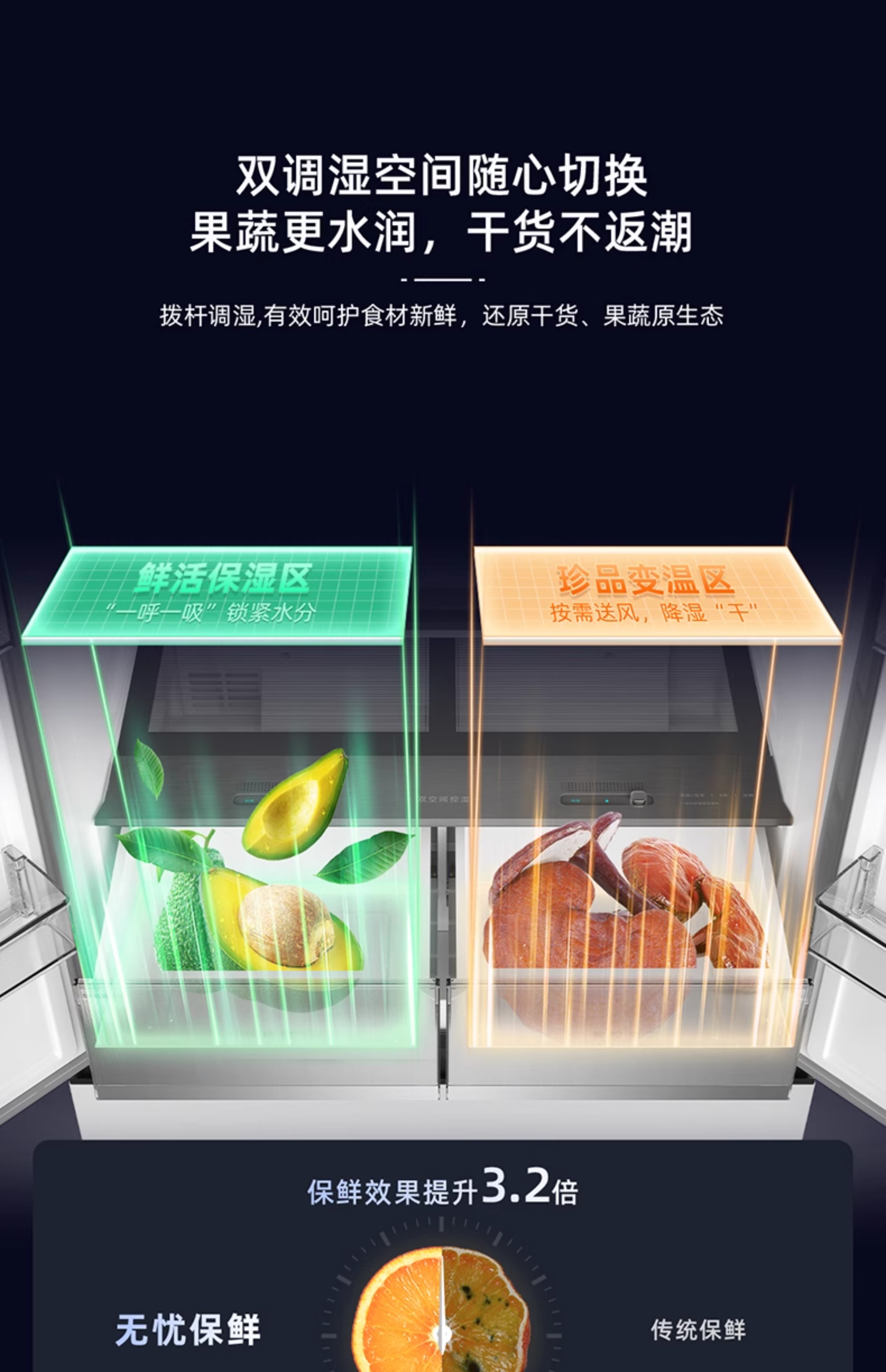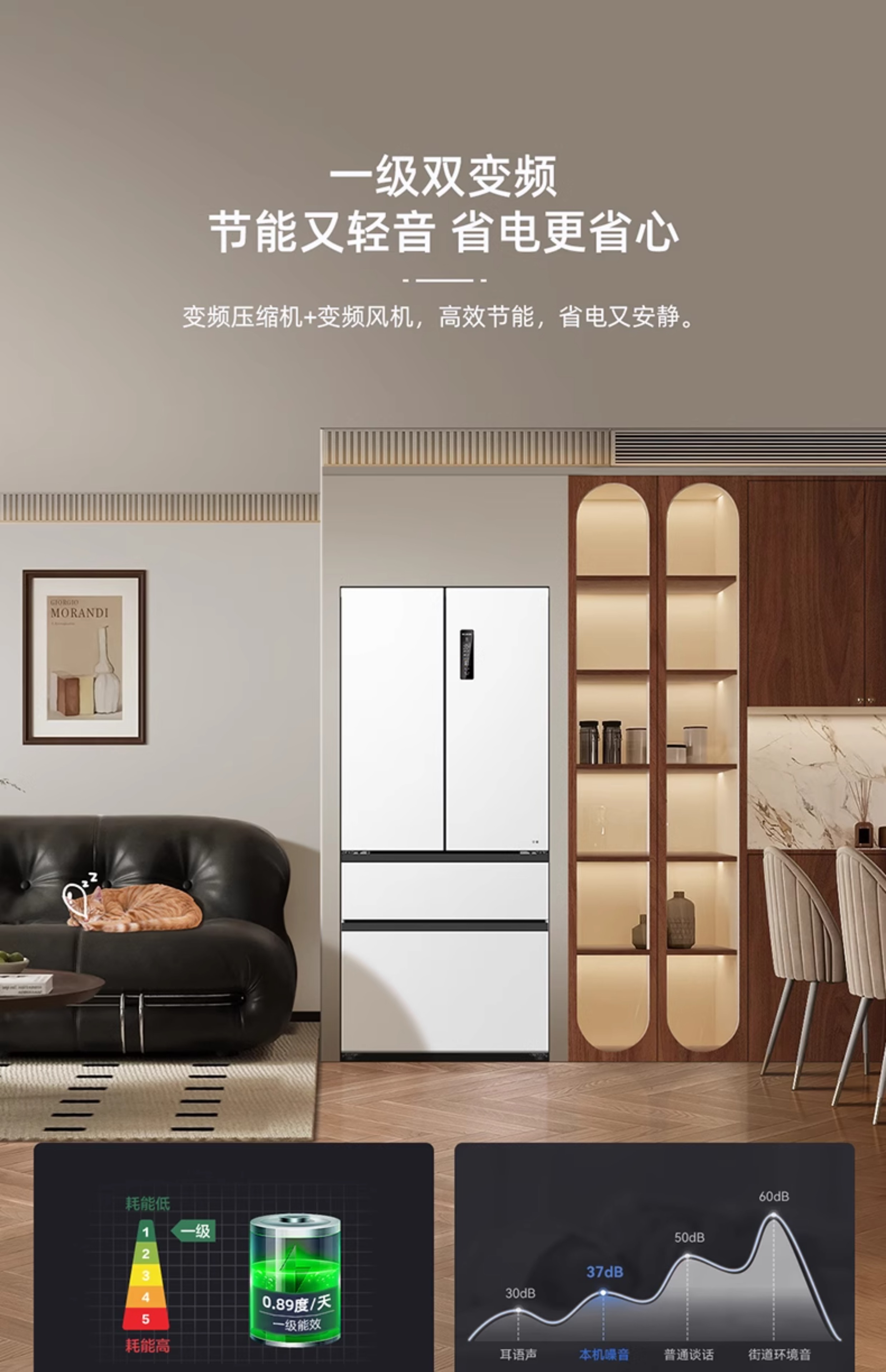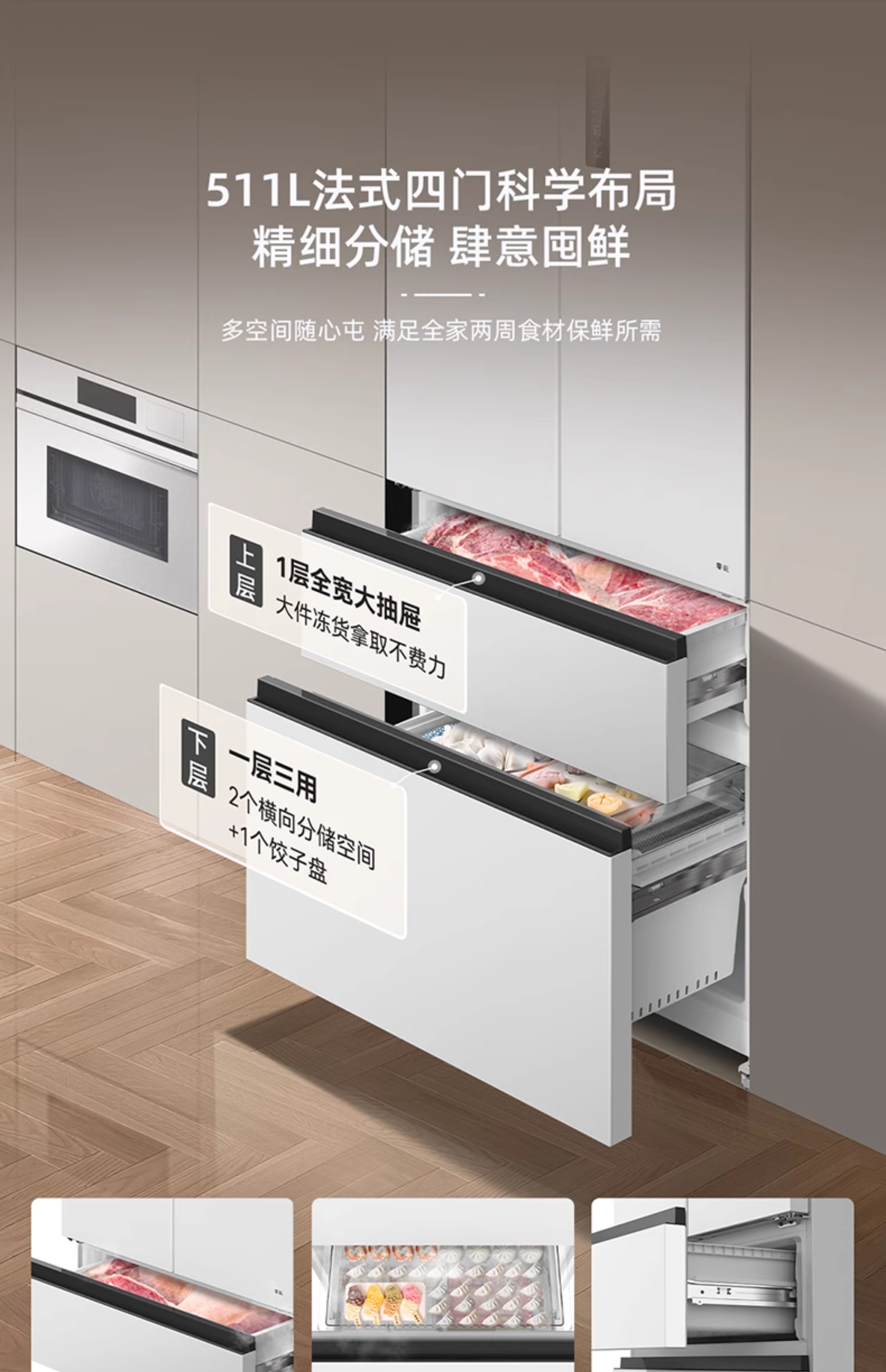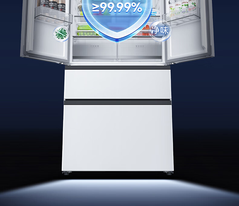 Meiling MNC+ Deodorization Upgraded 511L Active Sterilization Zero Insertion Silent French Small Household Multi-Door Dual System Refrigerator BCD-511WFP9CZX511L Snowy White