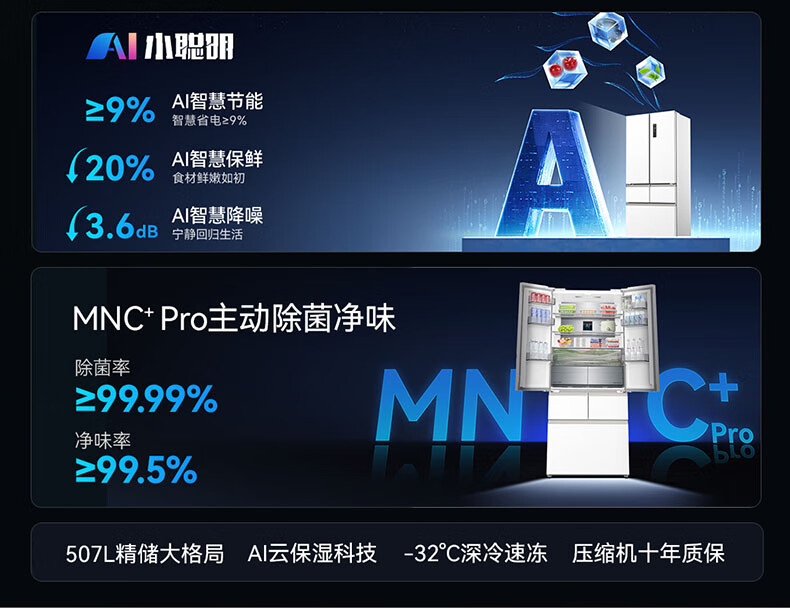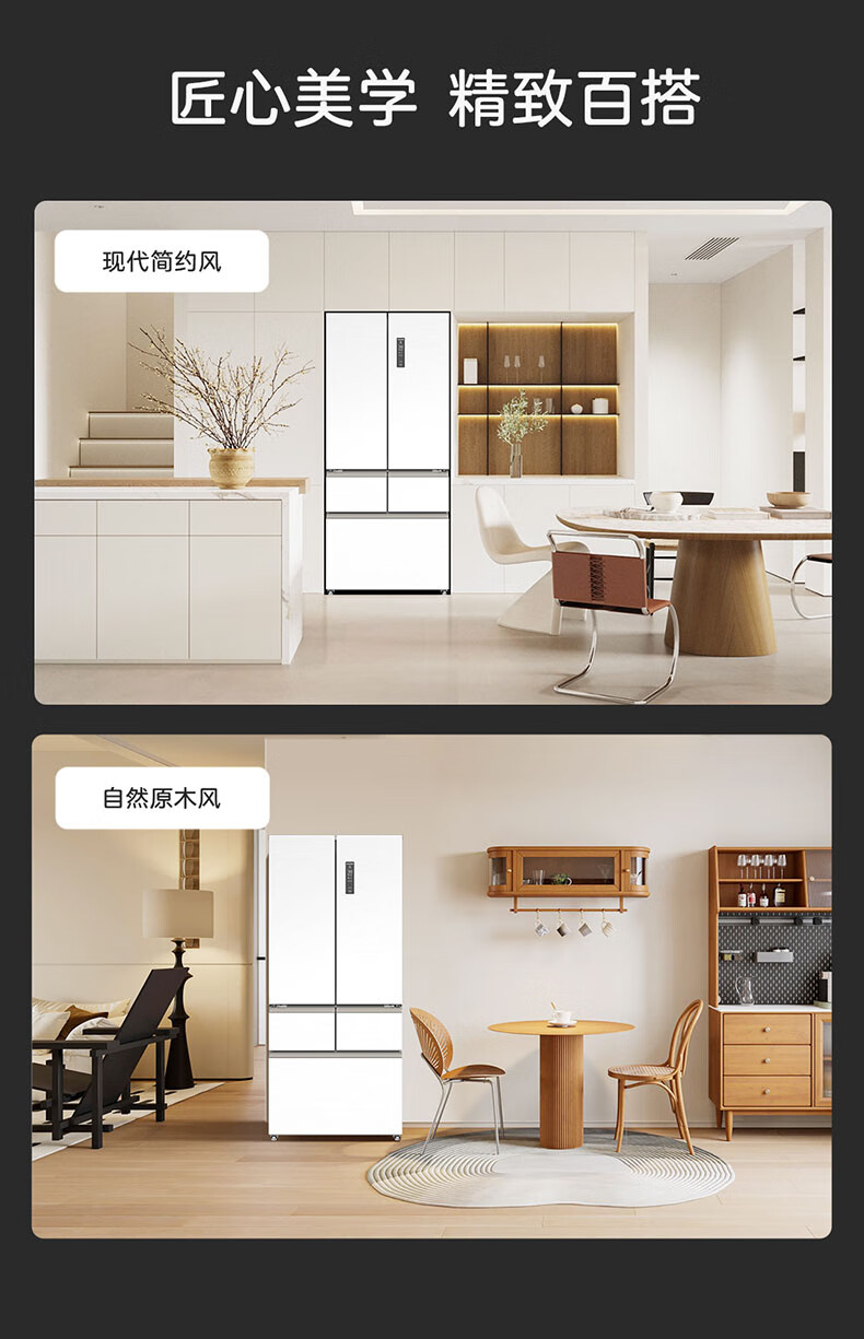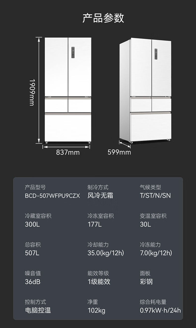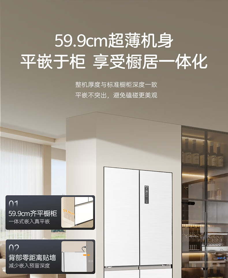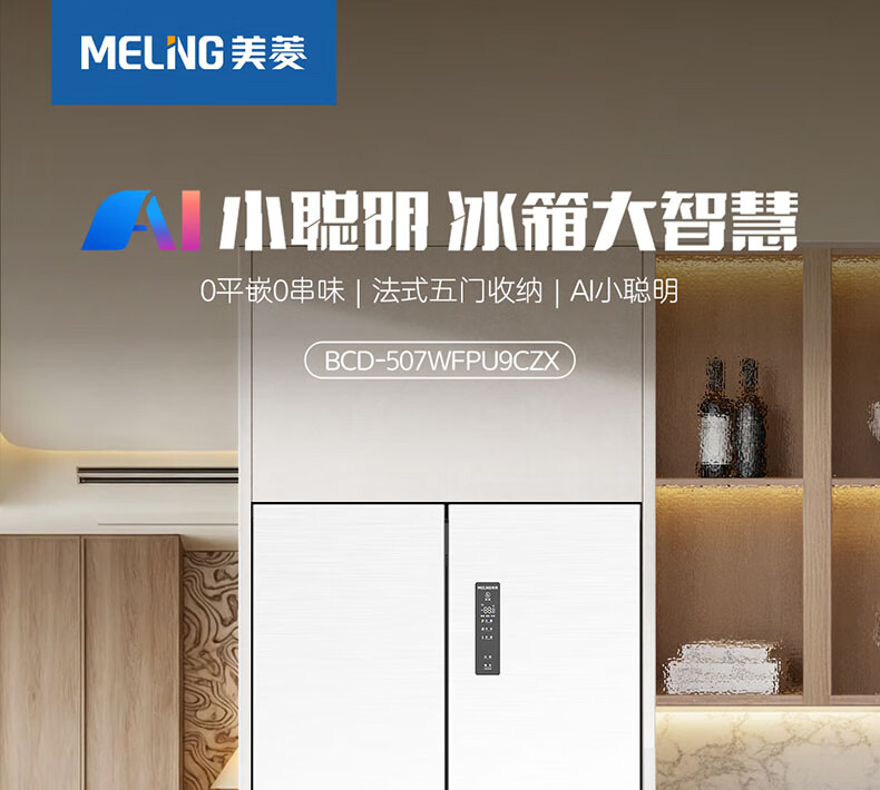 Meiling MNC+ purification upgrade 507L dual system zero-embedded silent household first-level active sterilization French refrigerator BCD-507WFPU9CZX507L ceramic white