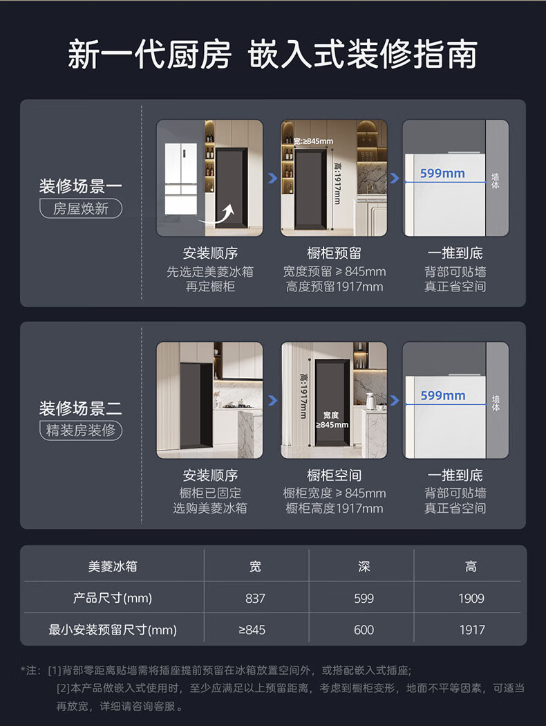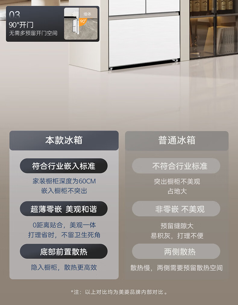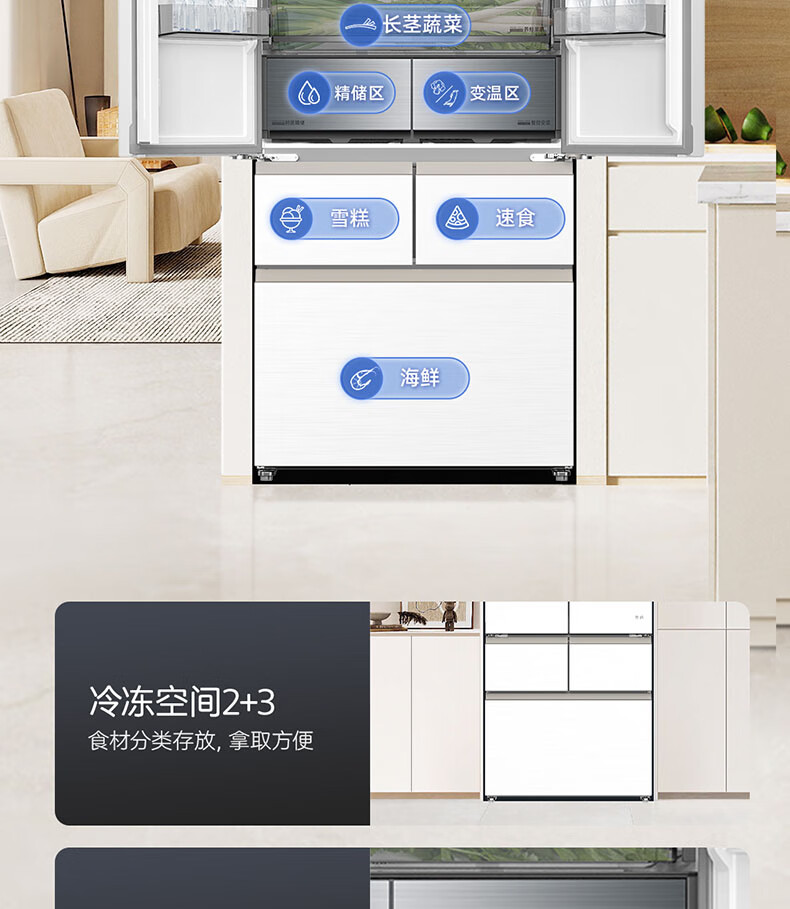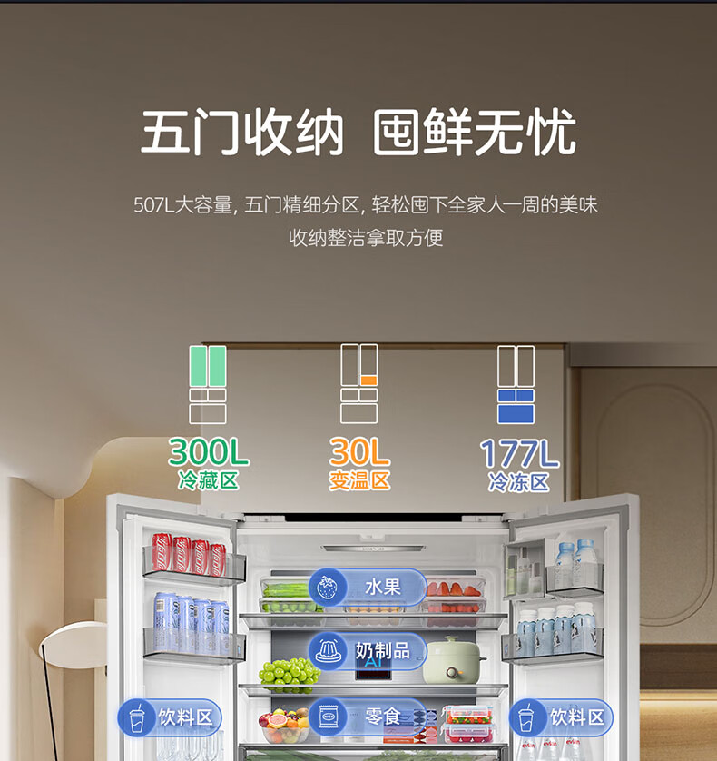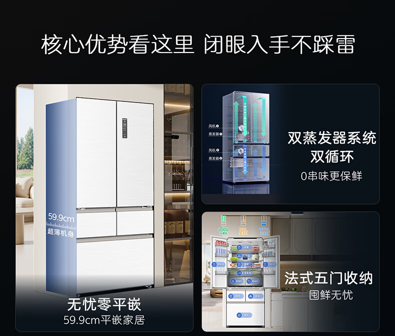Meiling MNC+ purification upgrade 507L dual system zero-embedded silent household first-level active sterilization French refrigerator BCD-507WFPU9CZX507L ceramic white