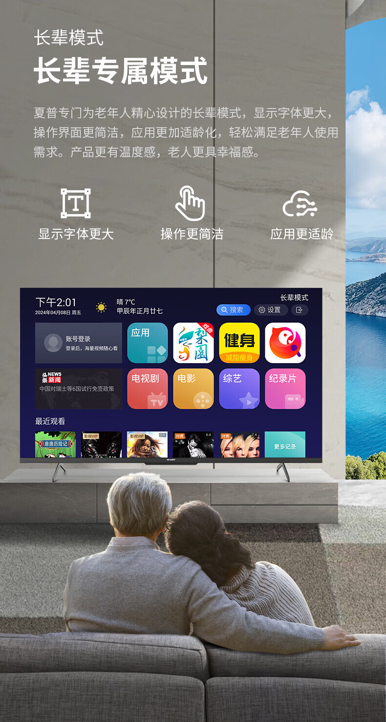 Sharp (SHARP) GM6000A new product 55/65/75/86 inches 120HZ high brush 4K high-definition full screen 3+64G intelligent voice network eye protection LCD TV 65 inches 4T-C65GM6000A new level 2 energy efficiency installation service door-to-door installation (seat installation/ordinary hanging installation/fixed rack included)