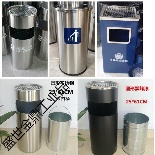 Cigarette butt trash can floor-standing ashtray vertical outdoor cigarette butt outdoor cigarette butt extinguisher ash column cigarette butt collector K74-sand steel round 25*61