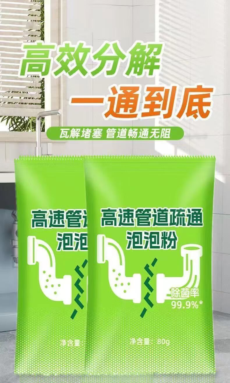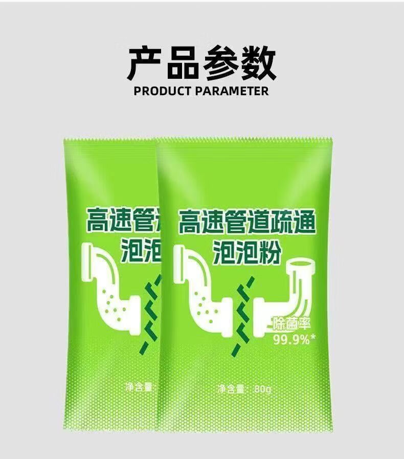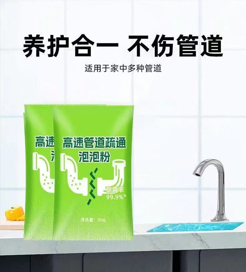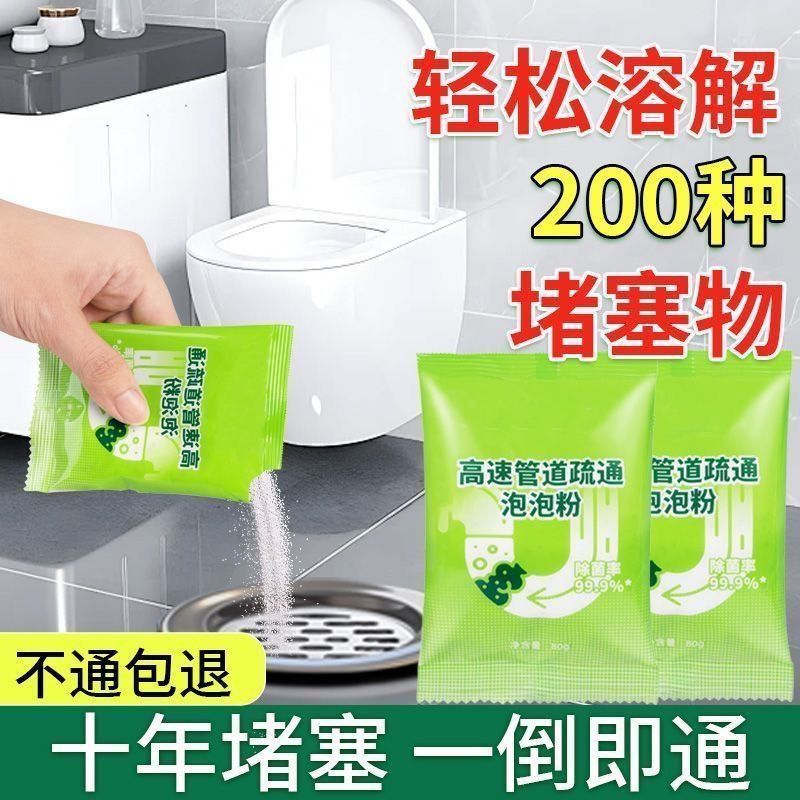 Pipe dredging agent, dredging liquid, powerful solution for kitchen pipe oil stain powder, toilet blockage, floor drain, deodorizing and flying insect cleaning + deodorizing + speed clearing 10 packages 800g