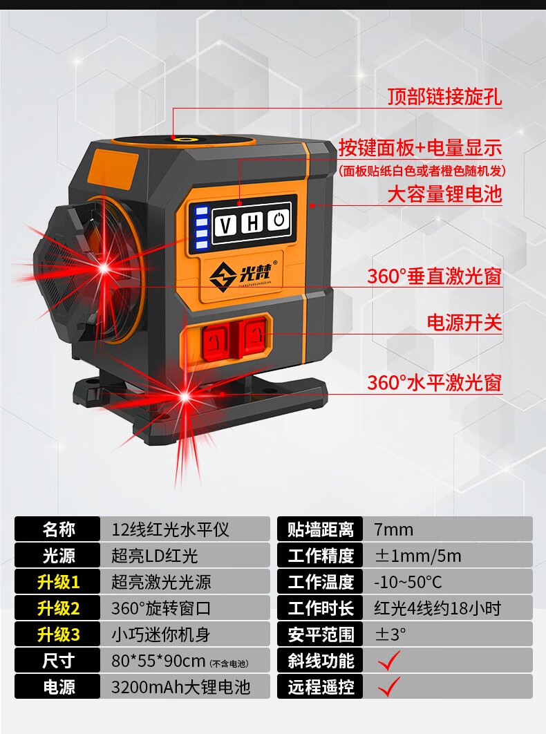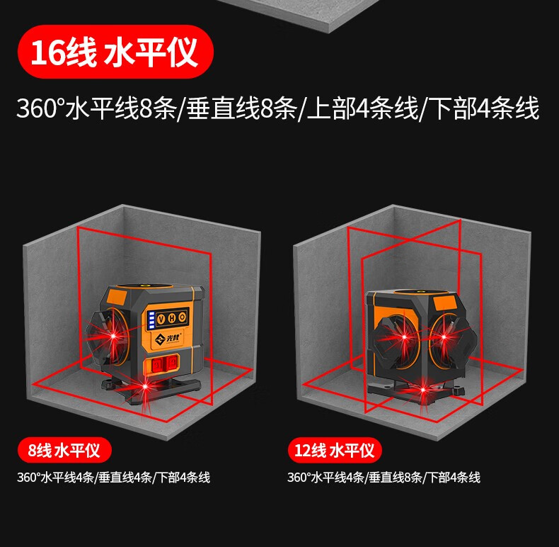12-line mini level meter fan small laser high-precision strong light thin line 3D red light level meter customized new technology red light rotating mini 16-line