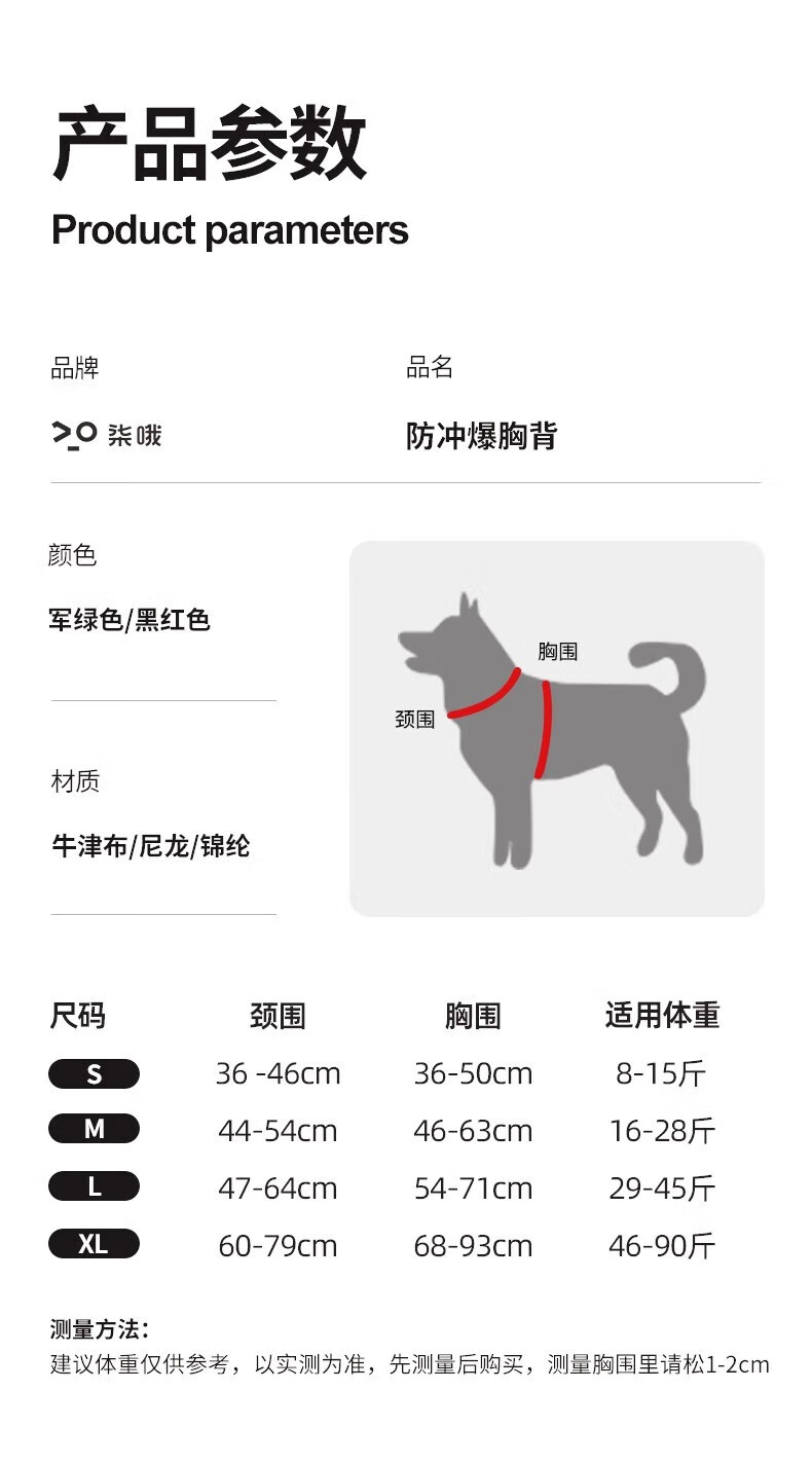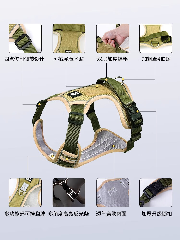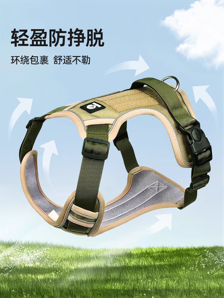 Qi Oh Dog Leash Large Dog Harness Golden Retriever Labrador Vest Type Explosion-proof Dog Walking Rope Medium-sized Dog Military Green Single Harness Without Rope S (Recommended Weight 8-15 Jin)