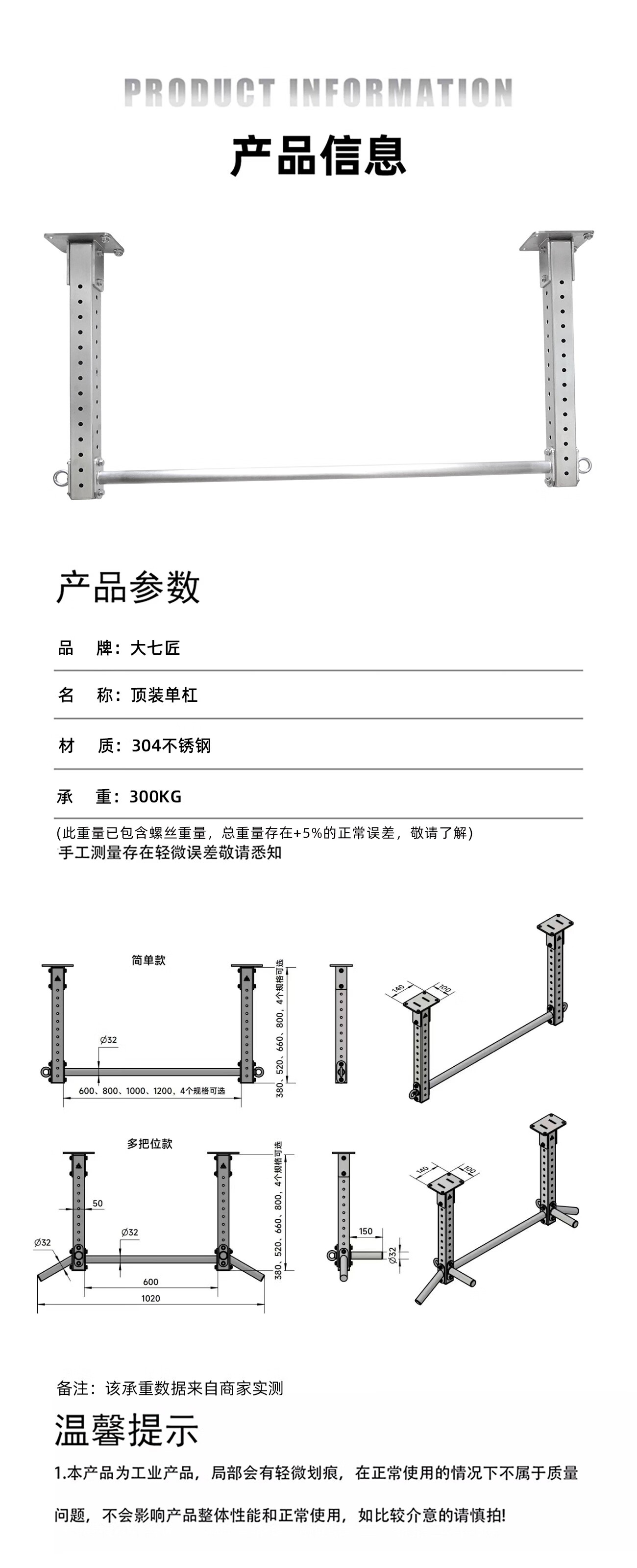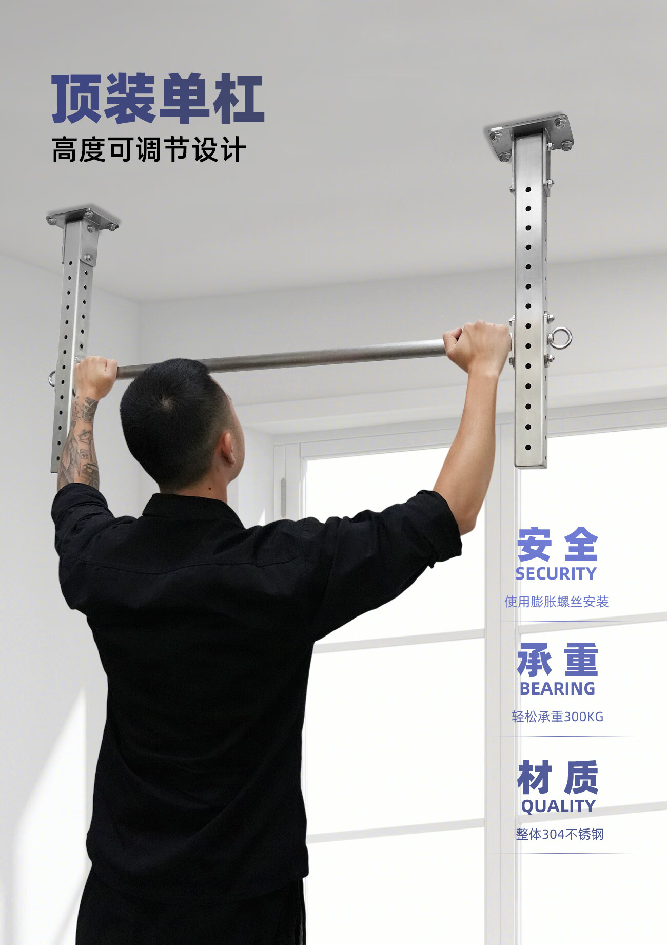 Daqijiang Daqi stainless steel indoor horizontal bar fitness top-mounted ceiling horizontal bar pull-up home wall-mounted horizontal bar top-mounted F style pole length 1200mm column height 660mm