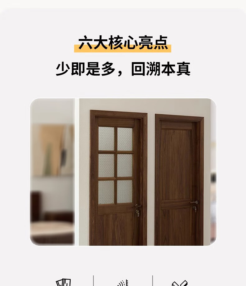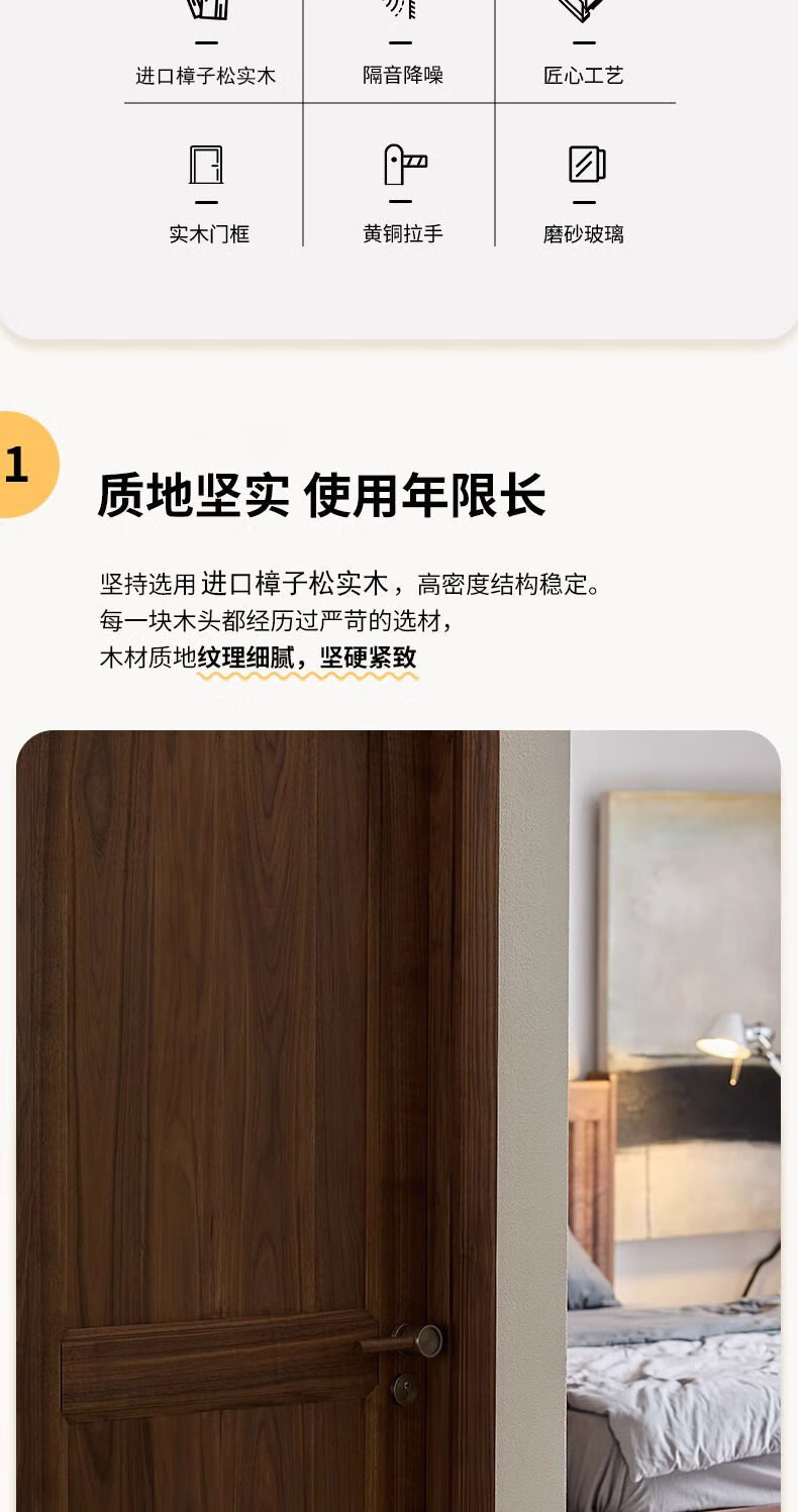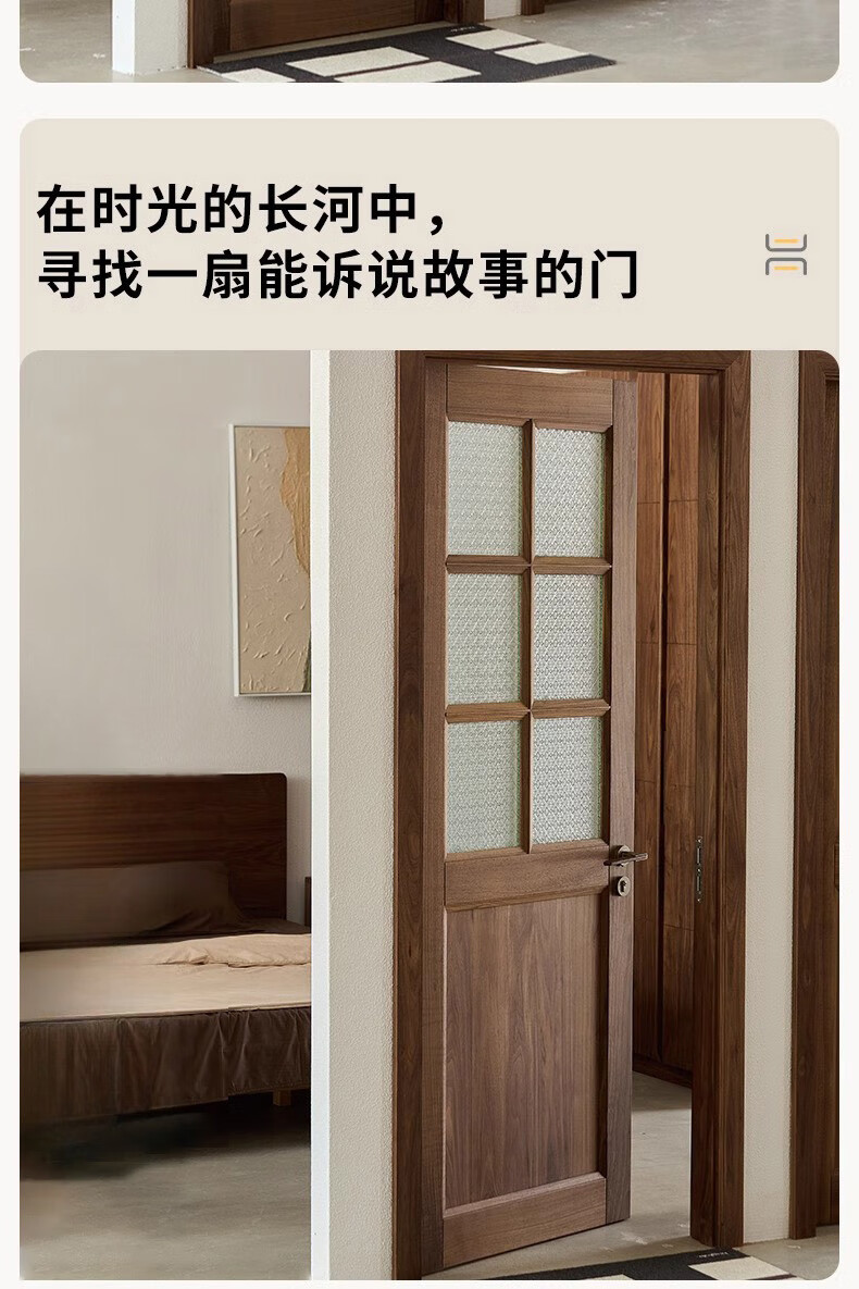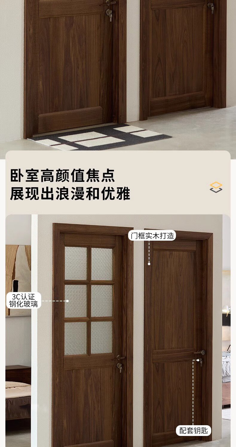 Customized solid wood bedroom door Customized medieval style interior door Walnut color glass door Composite paint door Retro solid wood door Deposit