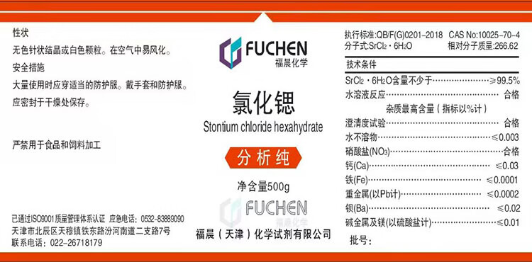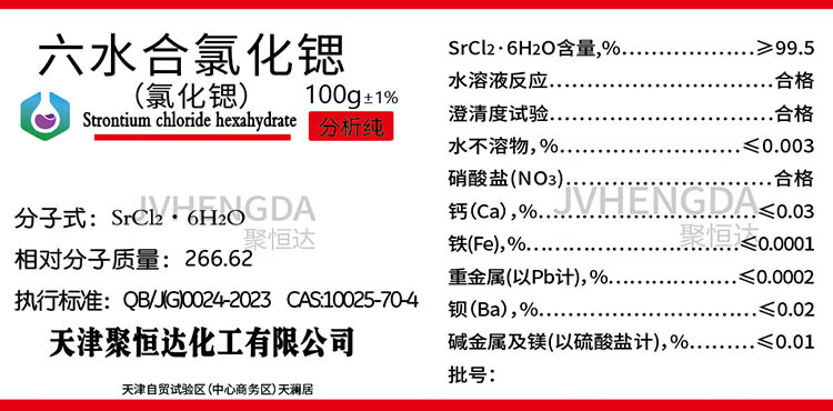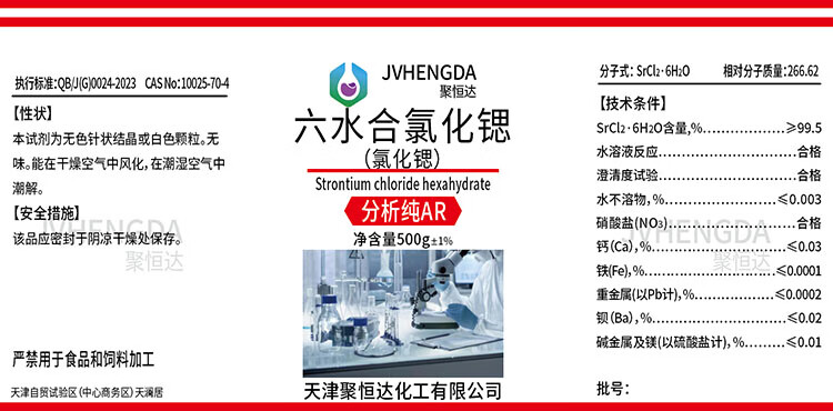 Strontium chloride AR500g hexahydrate 100g analytically pure SrCl2 chemical reagent chemical raw materials experimental supplies Juhengda AR100g/bottle