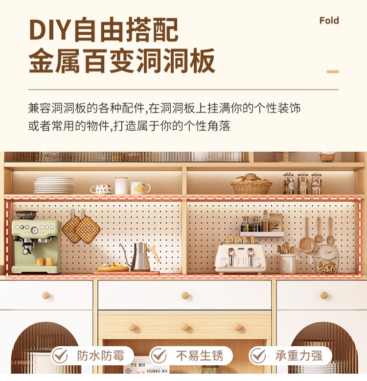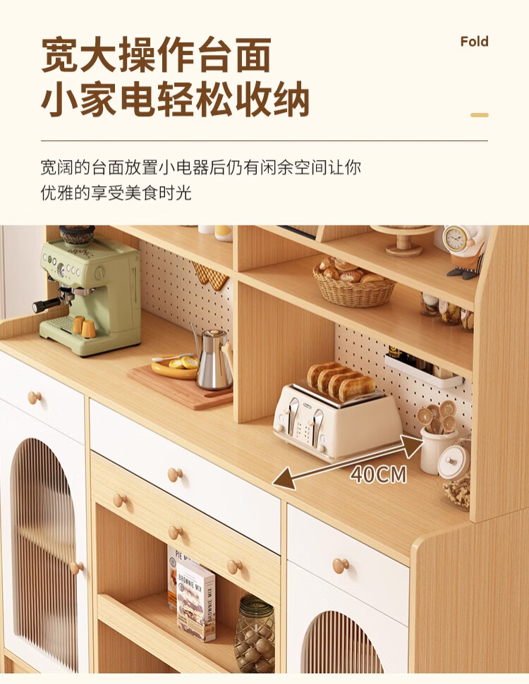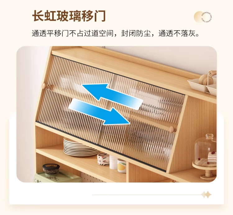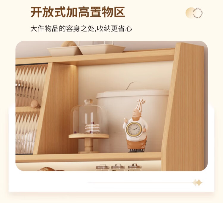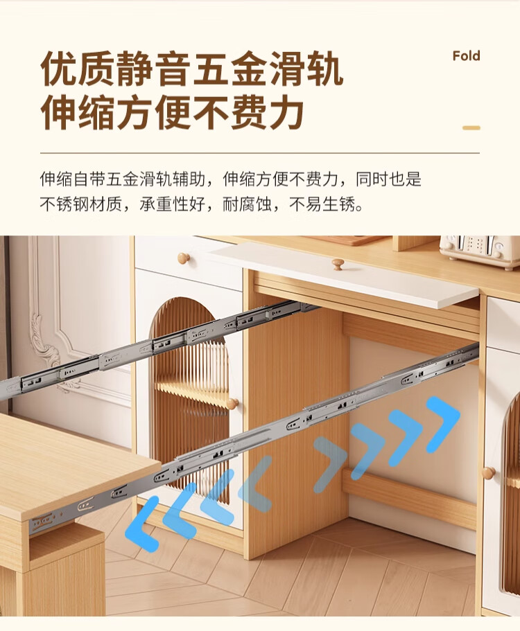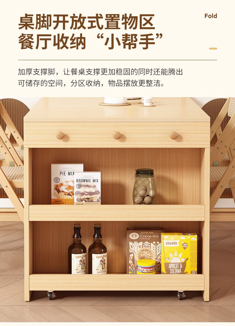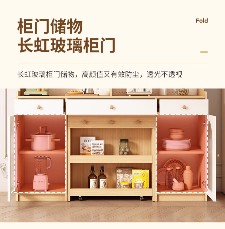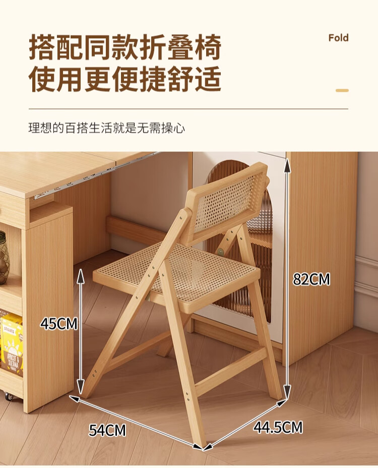 Maixiu solid wood sideboard and dining table integrated retractable and foldable small apartment living room home wall wine cabinet storage rack solid wood sideboard 120CM + retractable dining table-log cream color