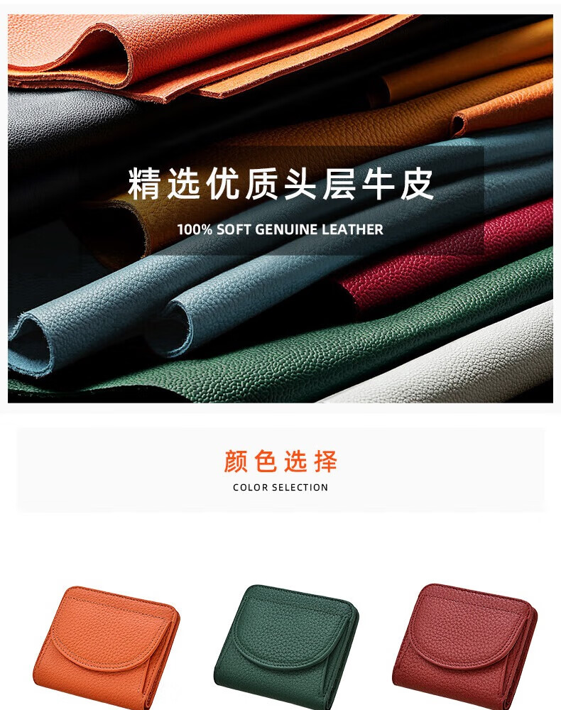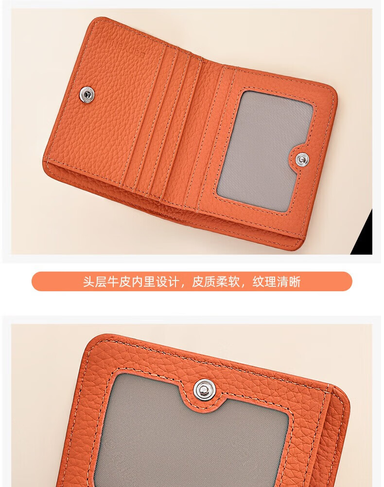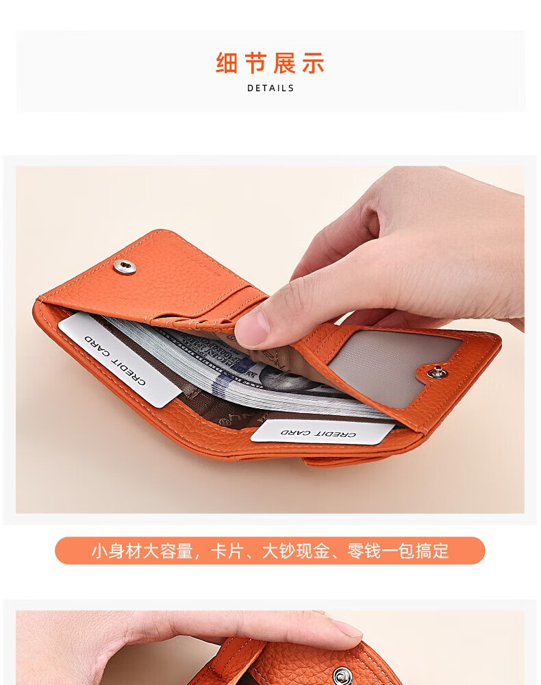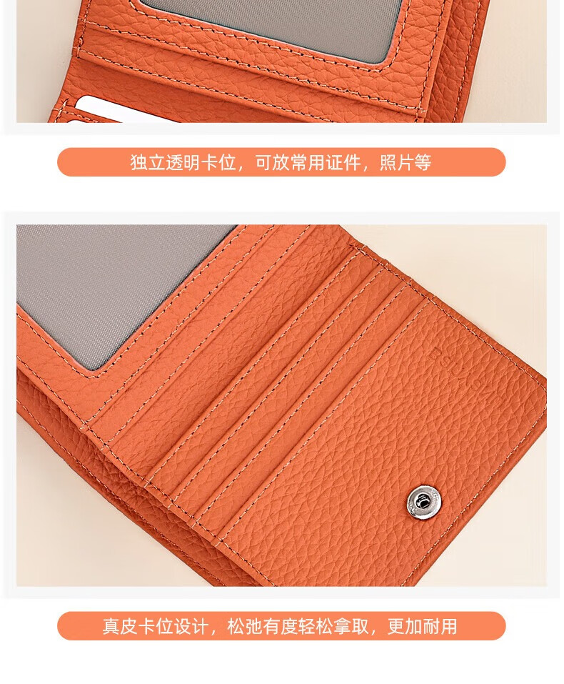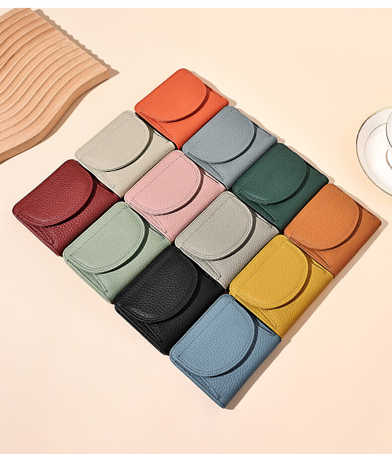 Banyano Genuine Leather First Layer Cowhide Short Wallet Women's Fashion Trend Compact Inside and Outside Cowhide Leather Wallet Men's Small Coin Purse Women Gray (First Layer Cowhide Inside and Outside - Anti-Theft Brush)