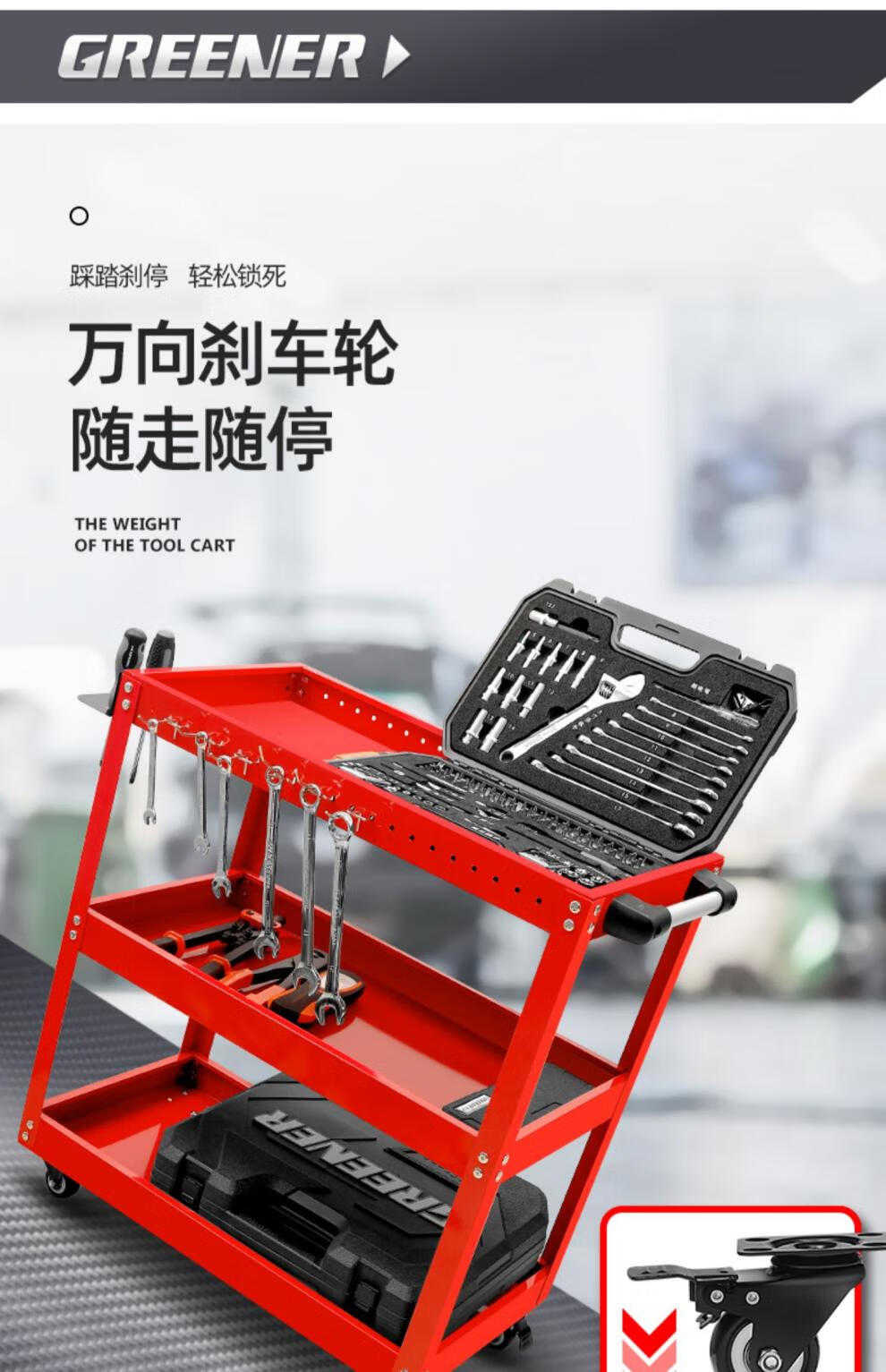 GREENER mobile tool cart, trolley, tool box, trolley, cabinet storage shelf, mobile auto repair tools for workshop, silent brake wheel heightening version, free hook blue