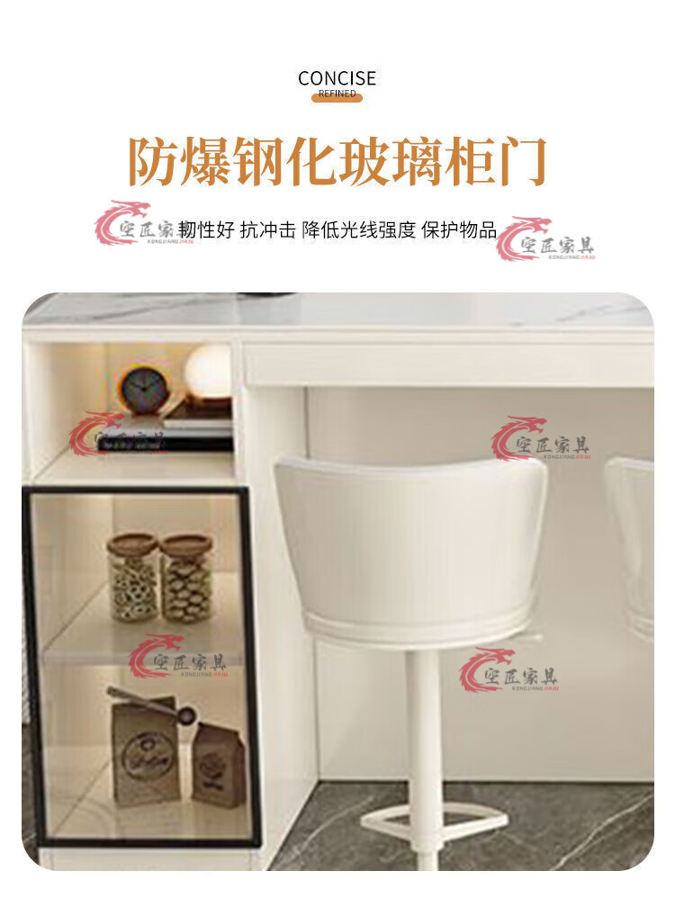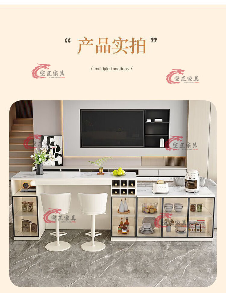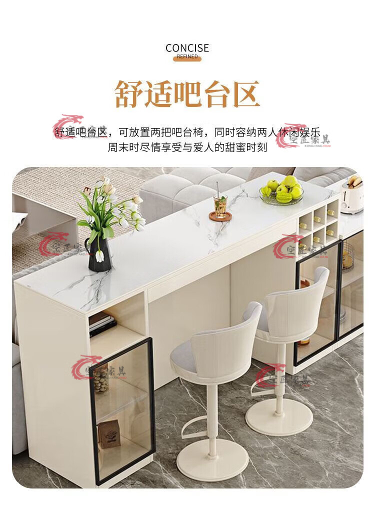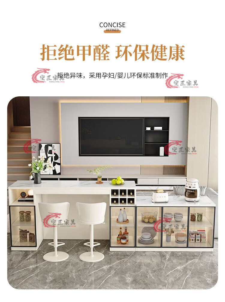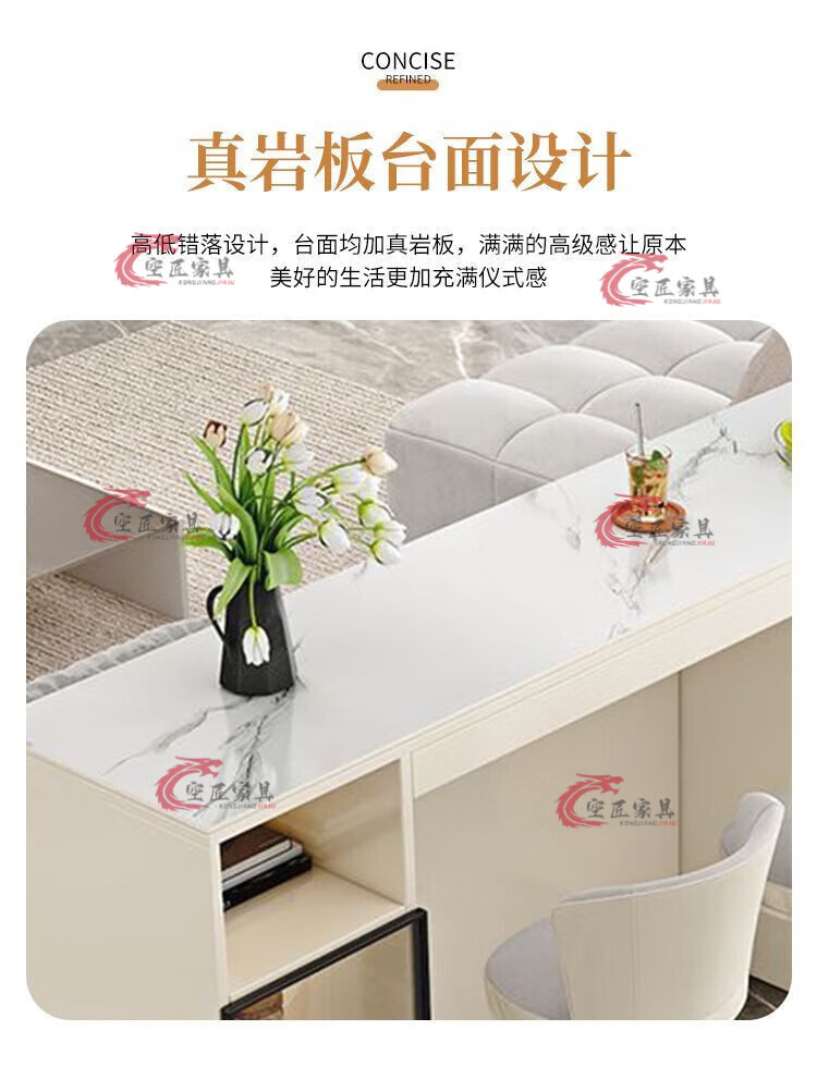 Bar table behind Kongjiang sofa, modern minimalist style living room partition cabinet, multi-functional island dining table, integrated slate sideboard, 2-meter bar table + 0.4-meter side cabinet combination, customizable and complete