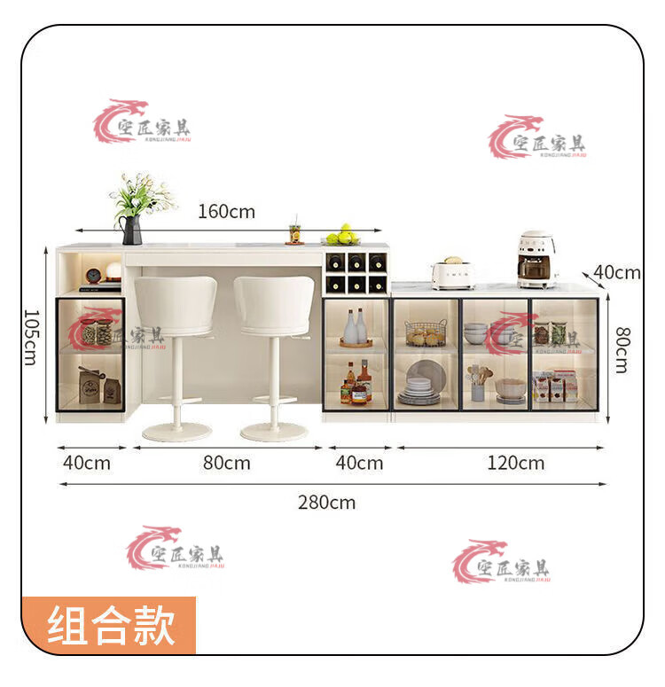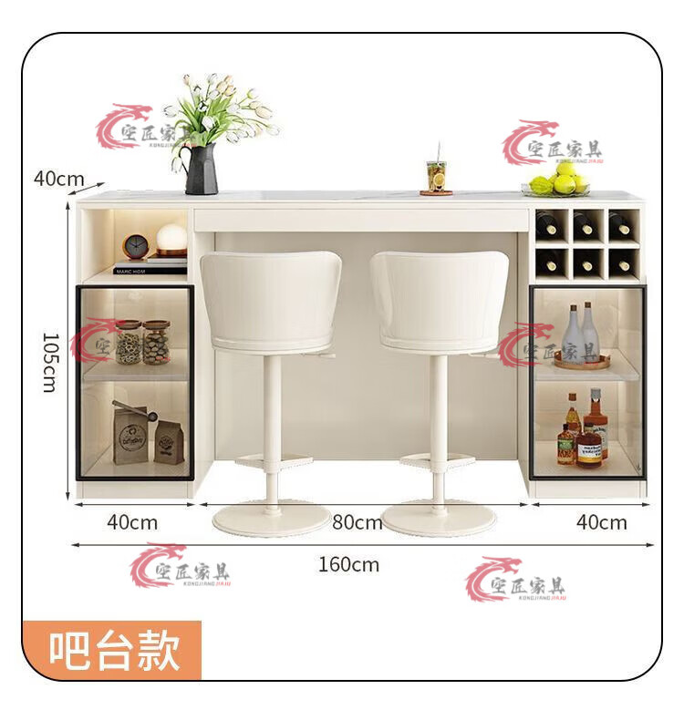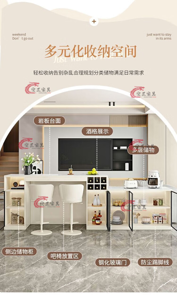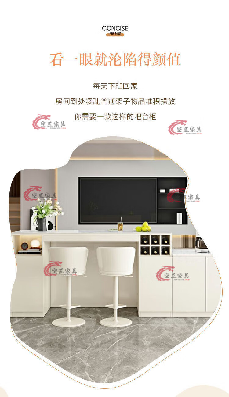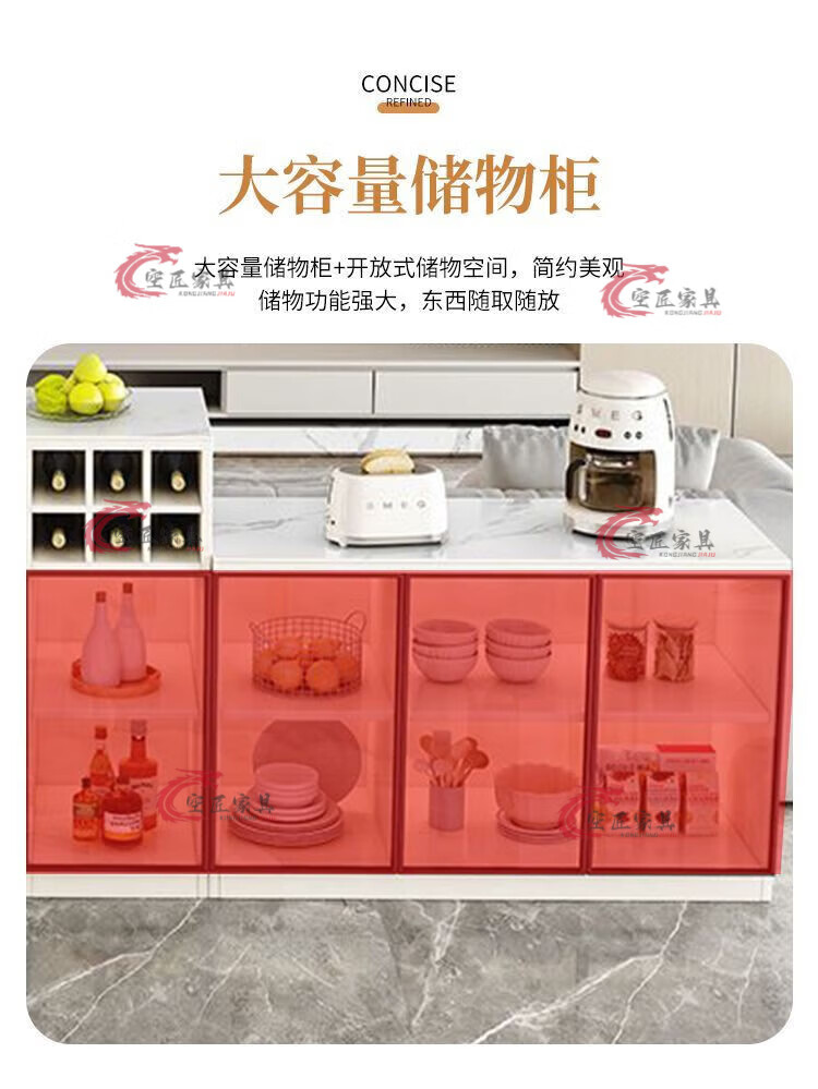Bar table behind Kongjiang sofa, modern minimalist style living room partition cabinet, multi-functional island dining table, integrated slate sideboard, 2-meter bar table + 0.4-meter side cabinet combination, customizable and complete