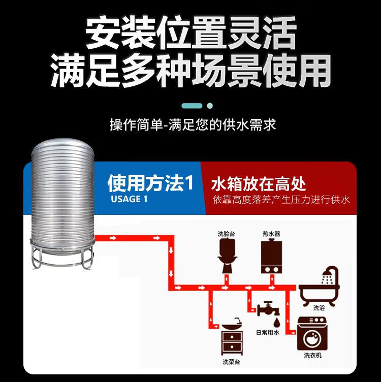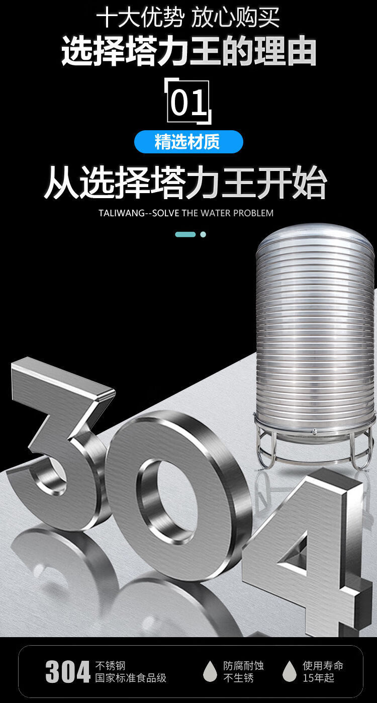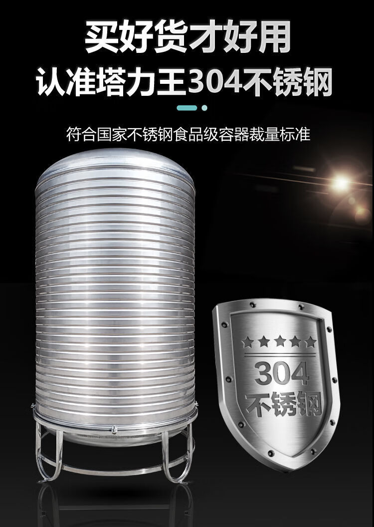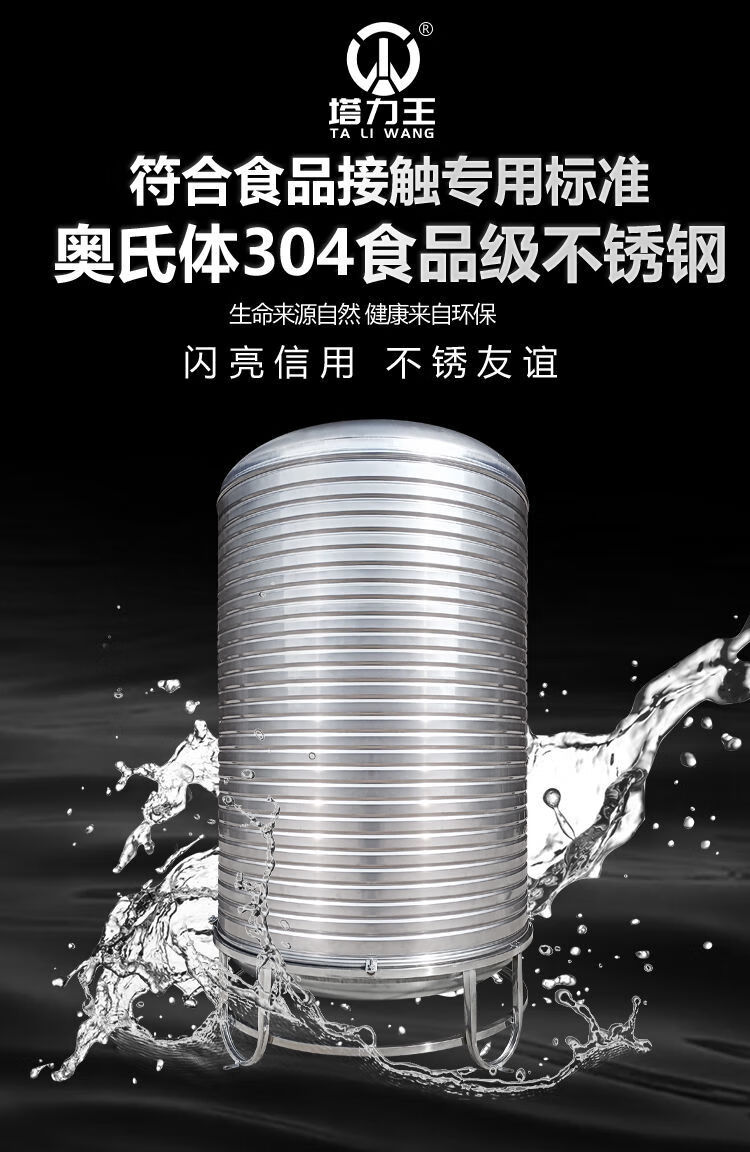 Taliwang 304 stainless steel water tank household vertical thickened solar roof kitchen water storage tank wine tank water storage barrel thickened 0.75 tons (80*160) with tripod