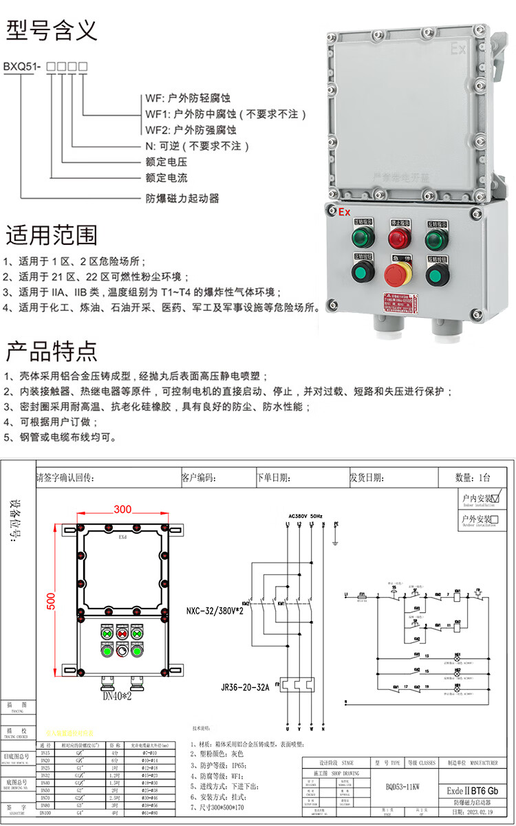Explosion-proof forward and reverse fan control box magnetic starter step-down starter cabinet explosion-proof junction box 300*500*150