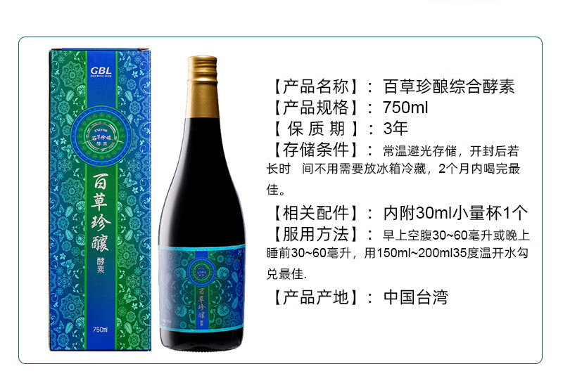 Fireworks gas imported from Taiwan Baicao Zhenjiang enzyme probiotic fasting and grain-proofing enzyme stock solution Baicao Zhenjiang (slightly acidic version) 750ml*1 bottle