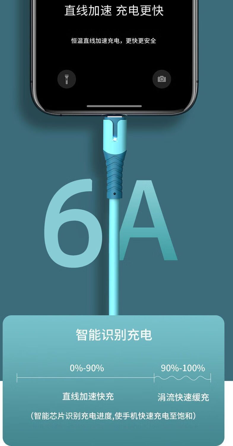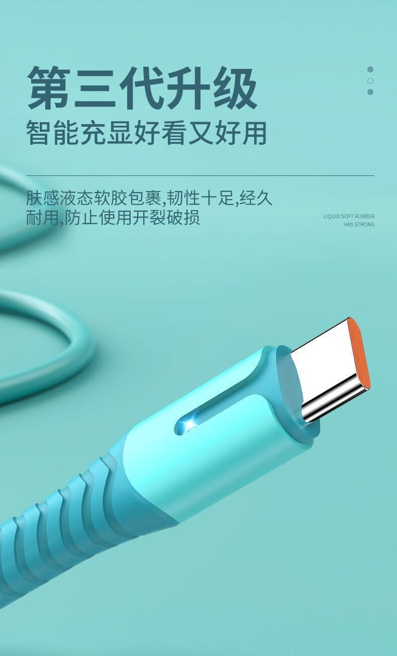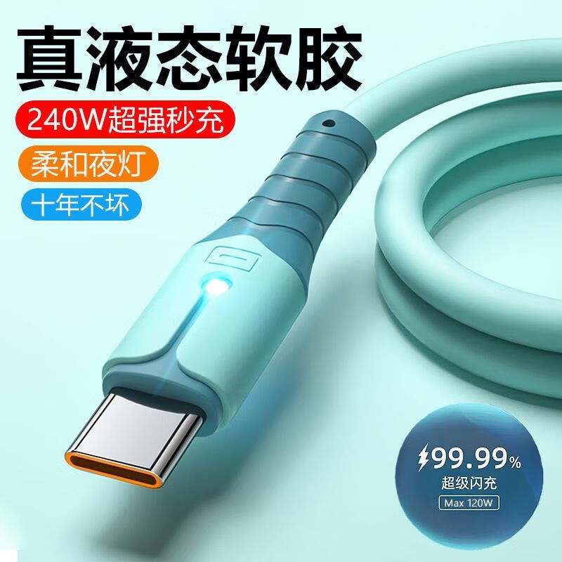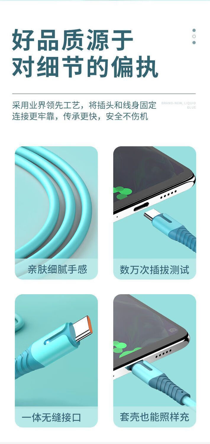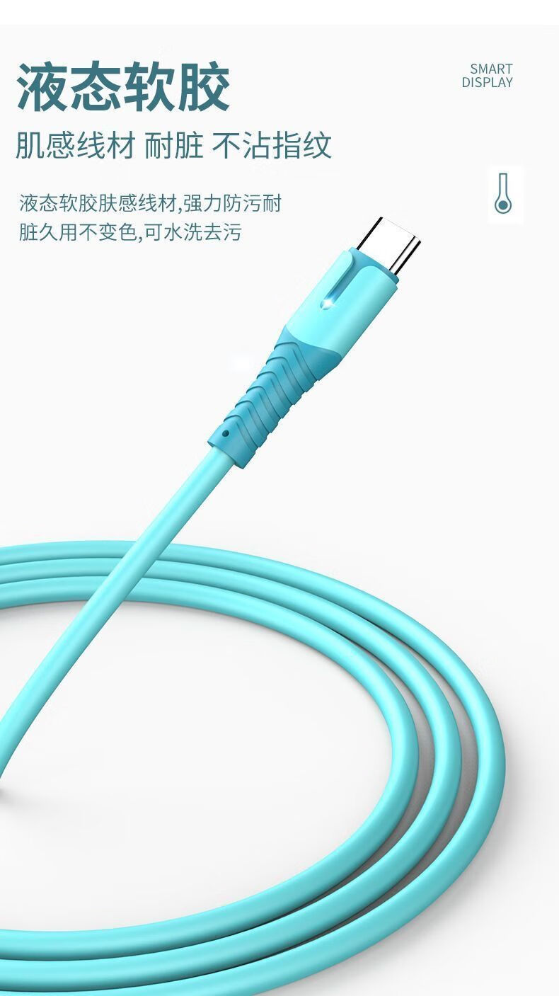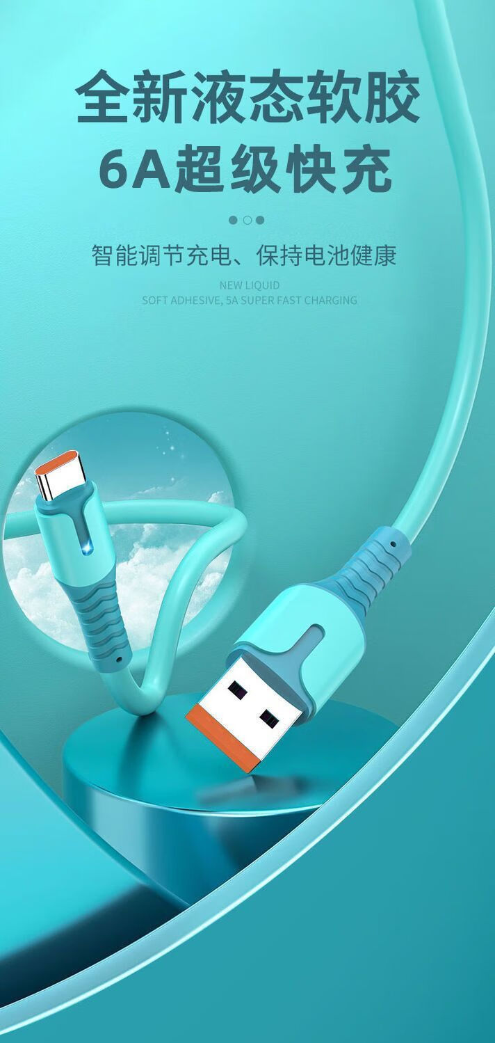 Liquid soft glue typec fast charging data cable 6A fast charging cable flash charging cable suitable for Huawei Honor Android various styles TYPEC interface flash charger cable skin-sensitive cable blue TYPEC--1.5M (two pieces)