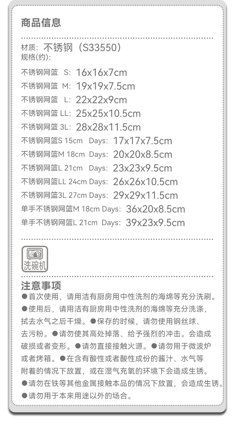 NITORI Yideli Home Kitchen Drainage Basket Standing Stainless Steel Mesh Basket Stainless Steel Mesh Basket L