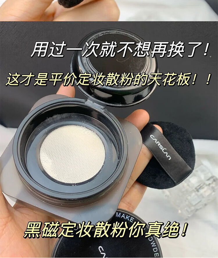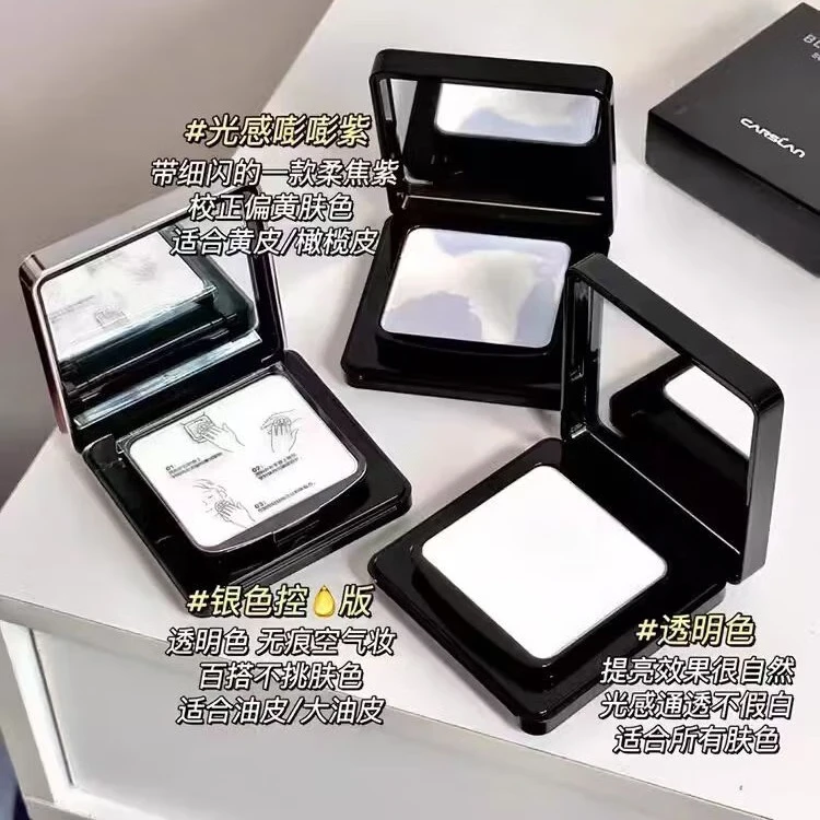 Carslan Black Magnetic Powder Cake Loose Powder Setting Powder Long-lasting Oil Control Waterproof and Sweatproof Not Easy to Remove Makeup Invisible Pores Genuine Loose Powder for Girls 01 Regular Version = Bang Bang Purple