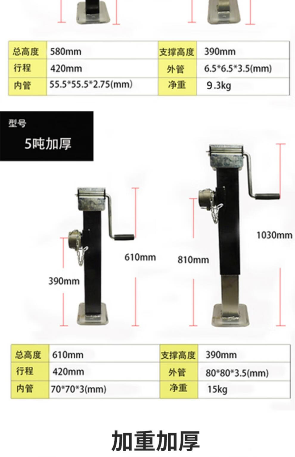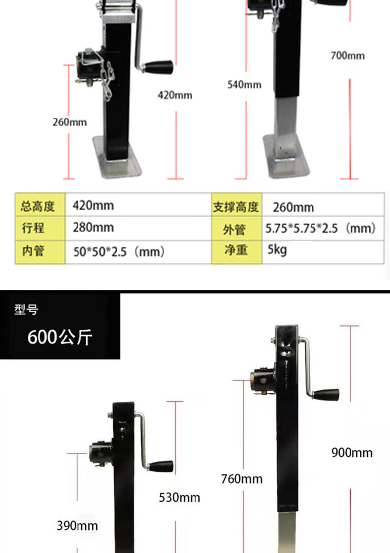 Shantou Lincun hand trailer jack hydraulic vertical trailer mechanical screw lifting bracket crane body support leg 25 tons 400 kg thickened