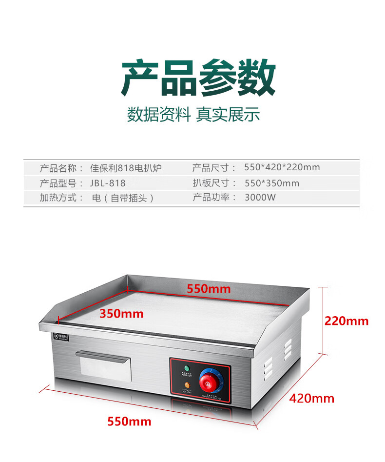 Jiabaoli hand cake machine commercial electric griddle gas teppanyaki equipment gas grilled cold noodle machine commercial stall electric 4.4KW 820 griddle | griddle plate 73*401