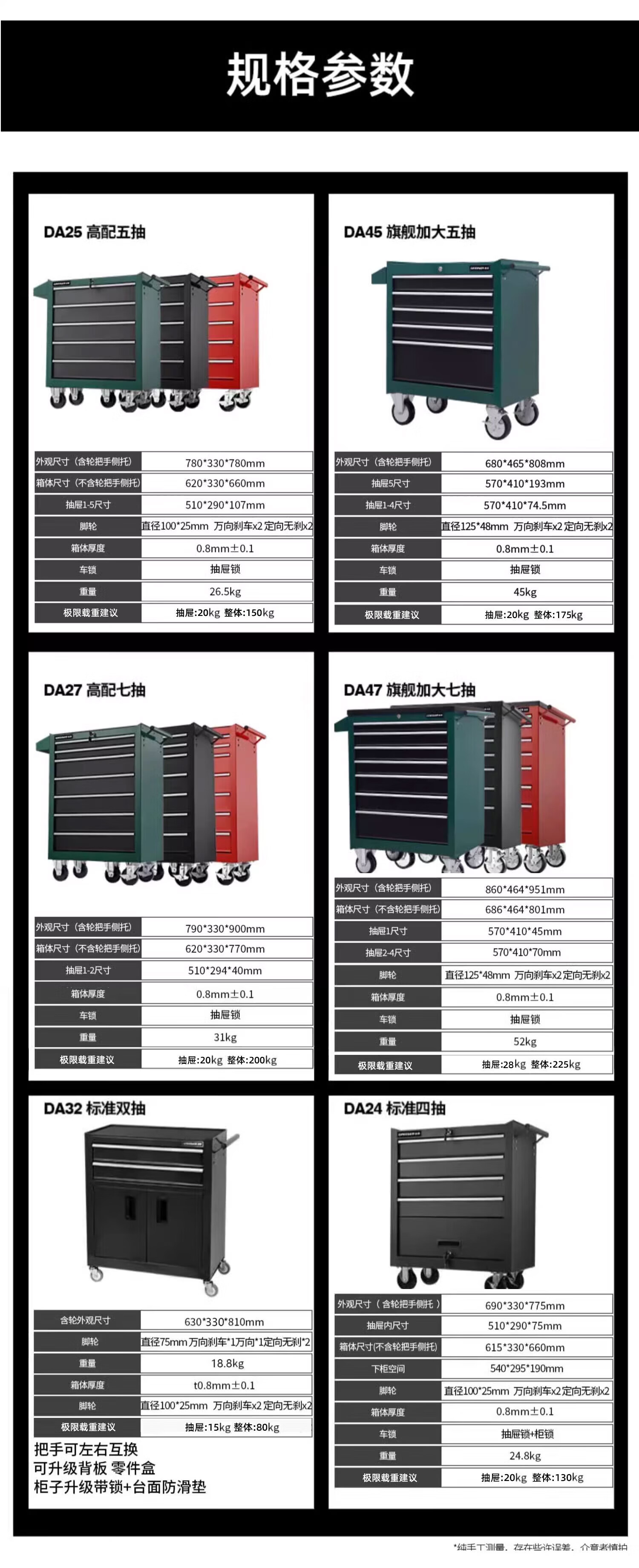Green Forest Auto Repair Tool Cart Drawer Hardware Repair Small Push Box Multifunctional Mobile Heavy Tool Cabinet Workshop Use DA25 Red Five Drawer Tool Cart