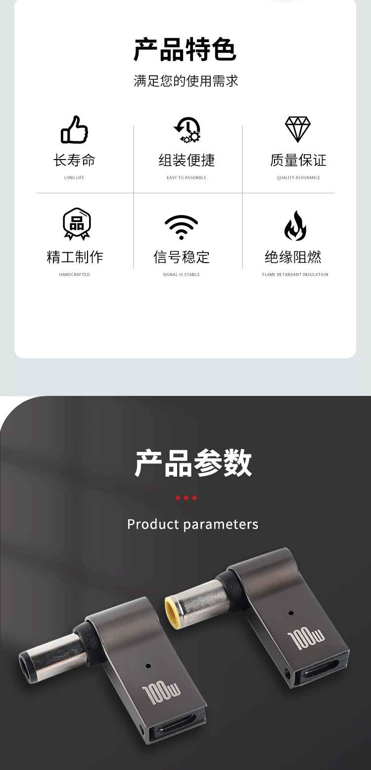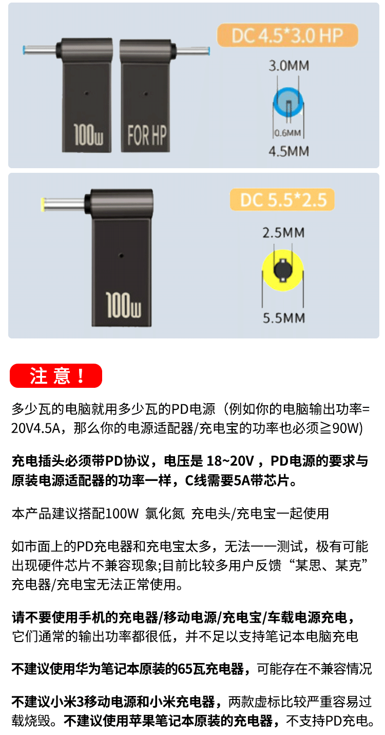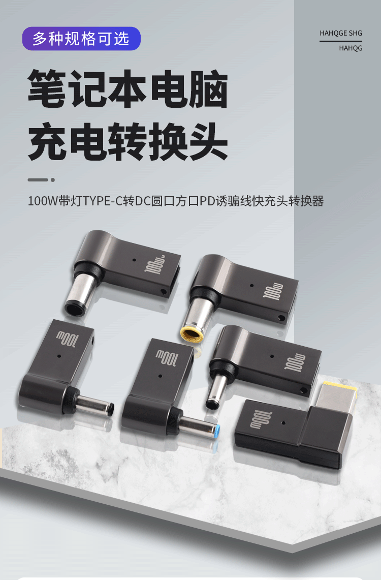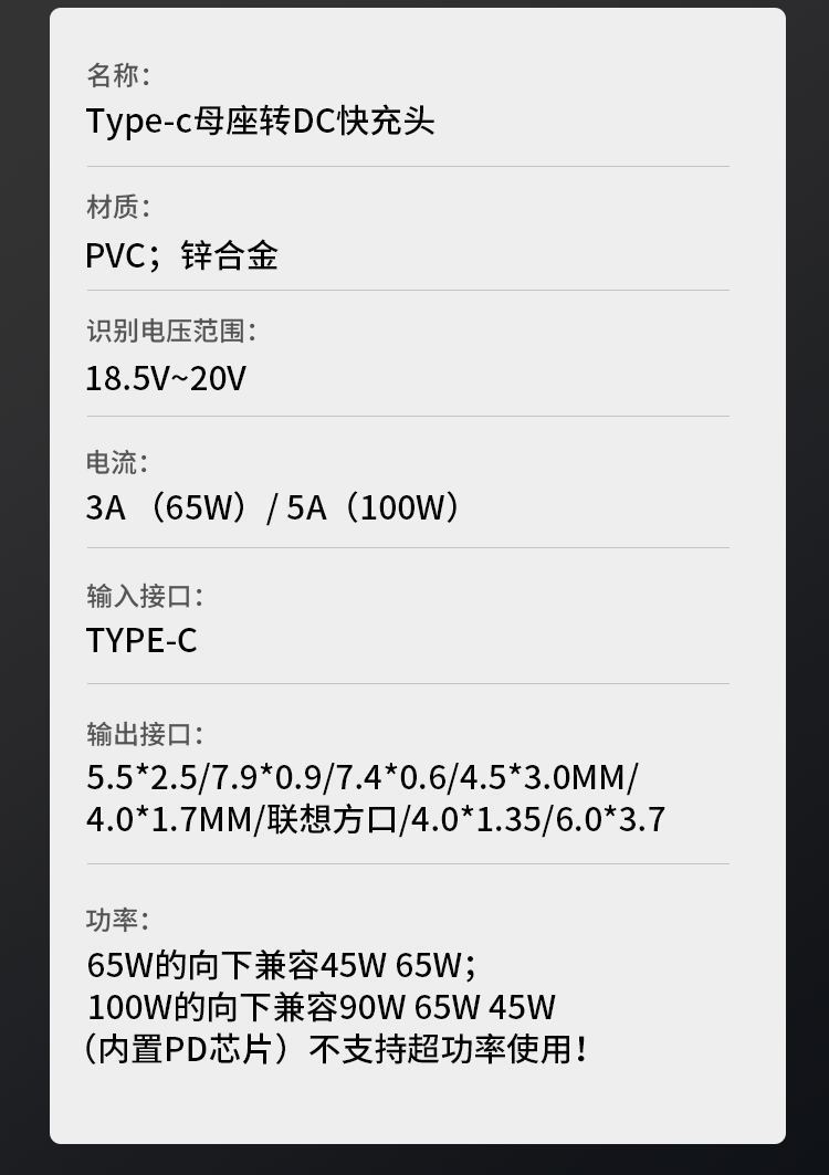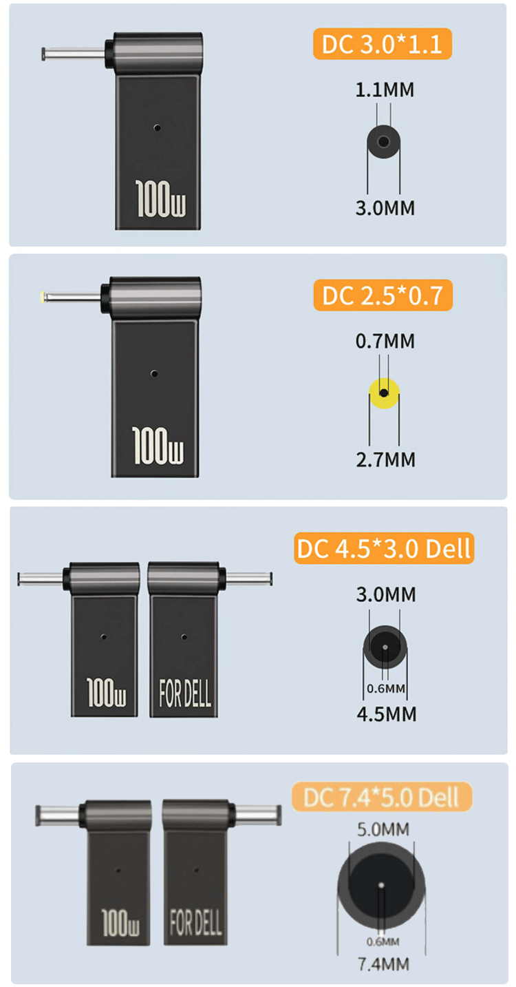 Laptop charging adapter 100wType-C to DC round port square port PD decoy line fast charging adapter conversion TYPE-C female to 5.5*2.5 third generation upgrade + with light no specifications