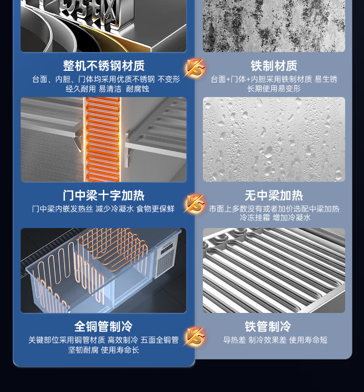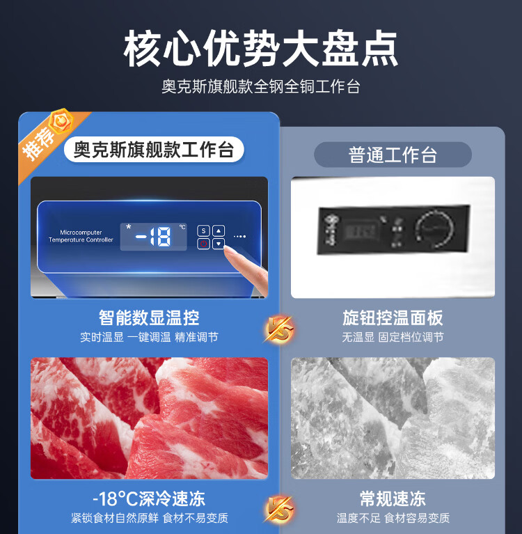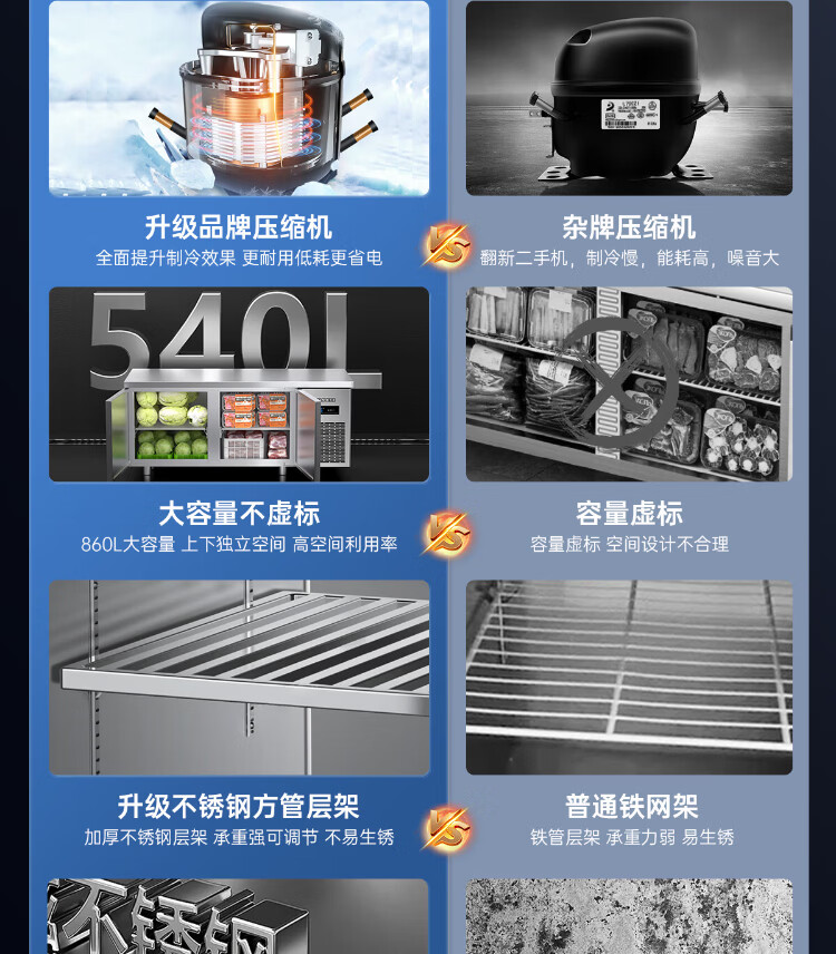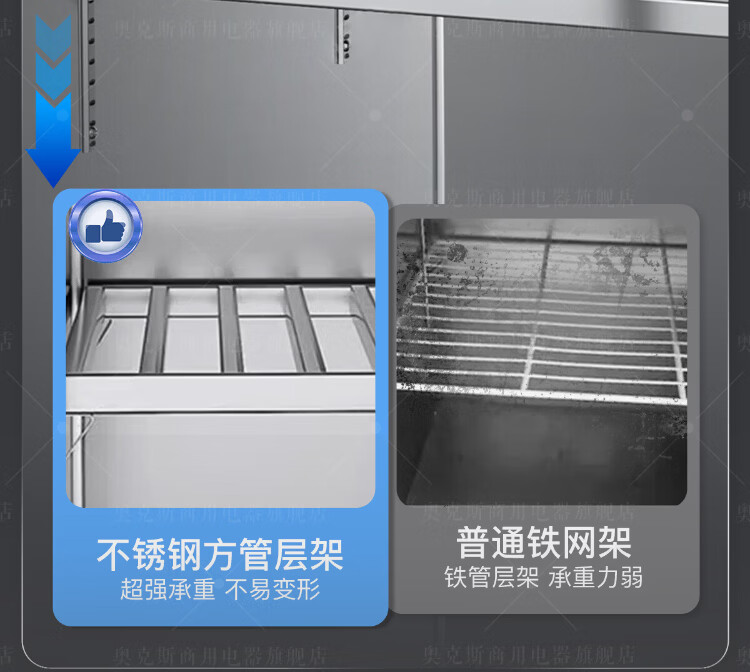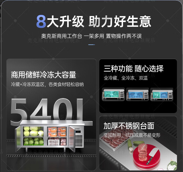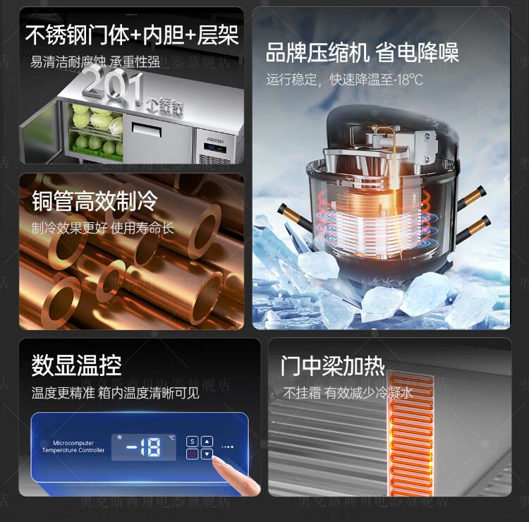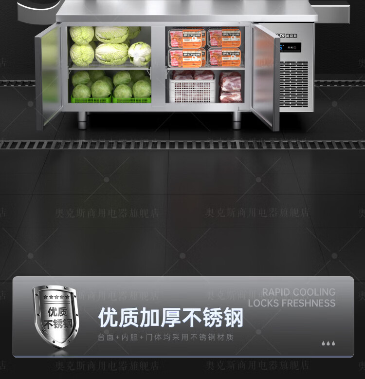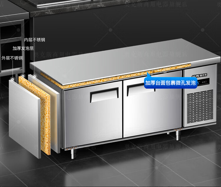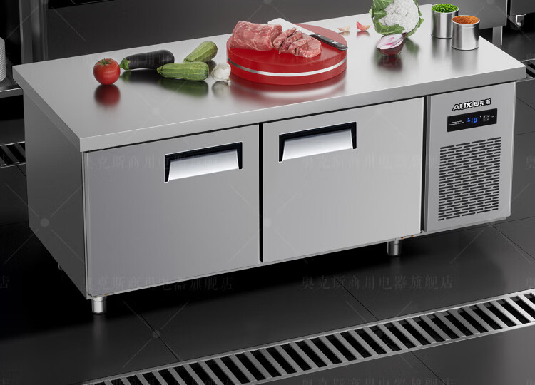AUX refrigerated workbench commercial freezer kitchen horizontal freezer refrigerator dual-temperature large-capacity refrigerated fresh cabinet milk tea shop freezer flat-cooled air-cooled stainless steel operating table freezer dual-temperature 1.8*0.8*0.8 meters | power-saving copper tube
