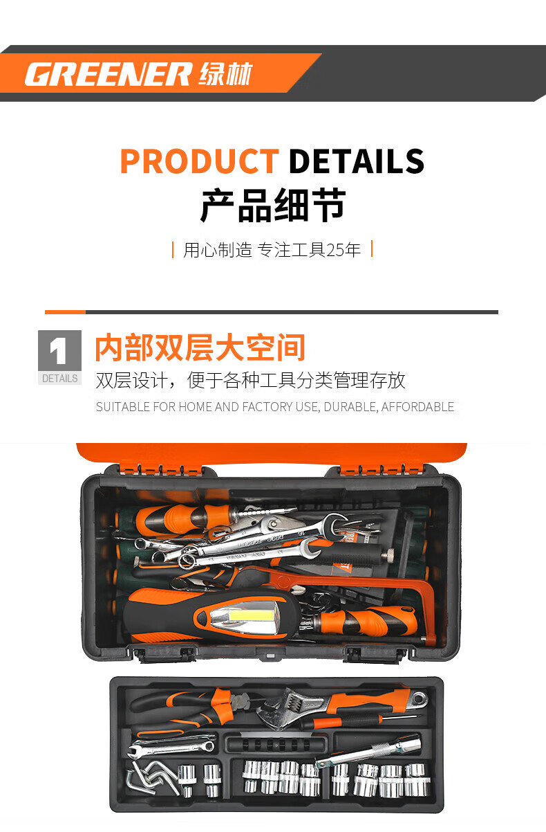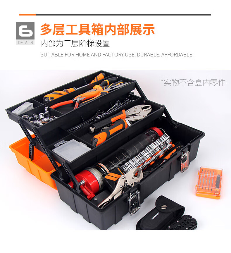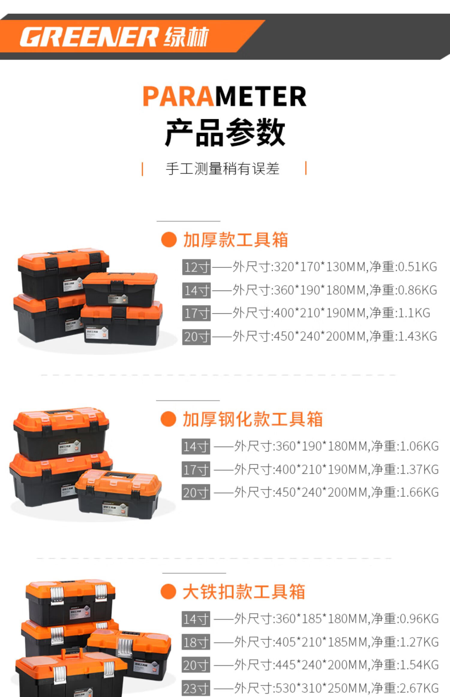 GREENER tool box household storage box hardware parts box stainless steel car multi-layer plastic portable iron box storage box special 7-inch single-layer tool box