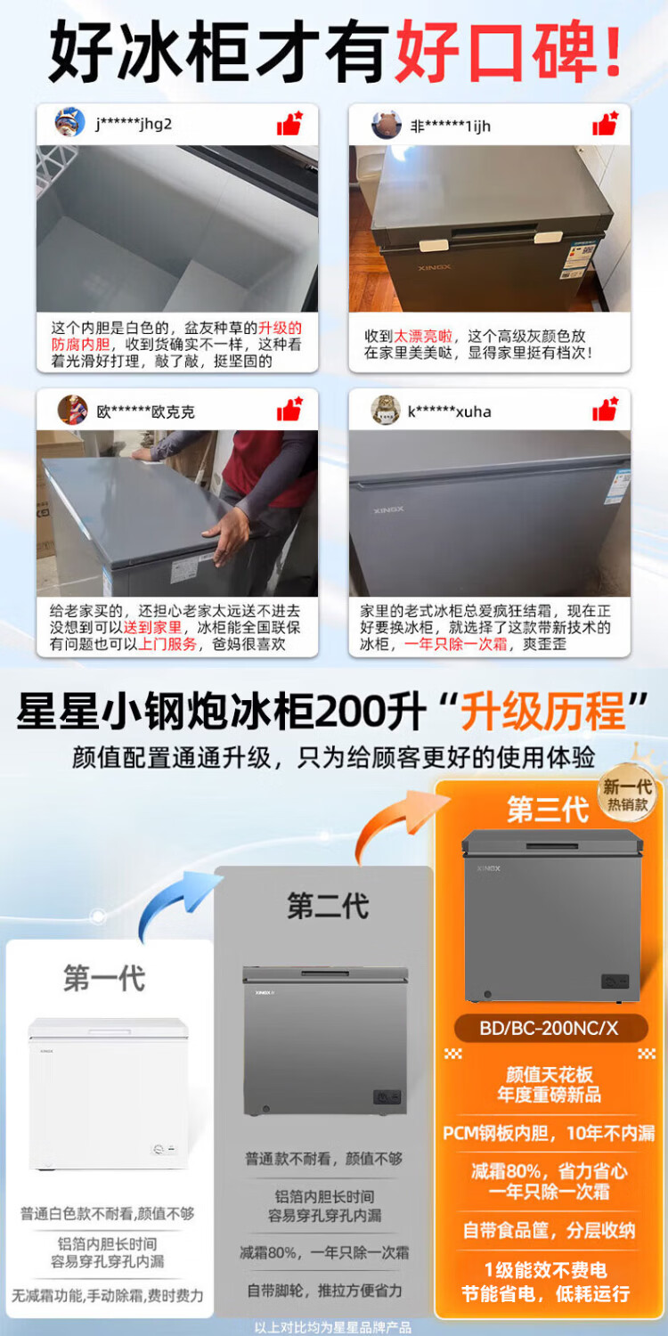 Star small freezer household refrigeration and freezing conversion freezer large capacity frost-reducing and deodorizing energy-saving top-opening refrigerator freezer tea cabinet 150L -30 degrees deep cooling upgraded PCM liner